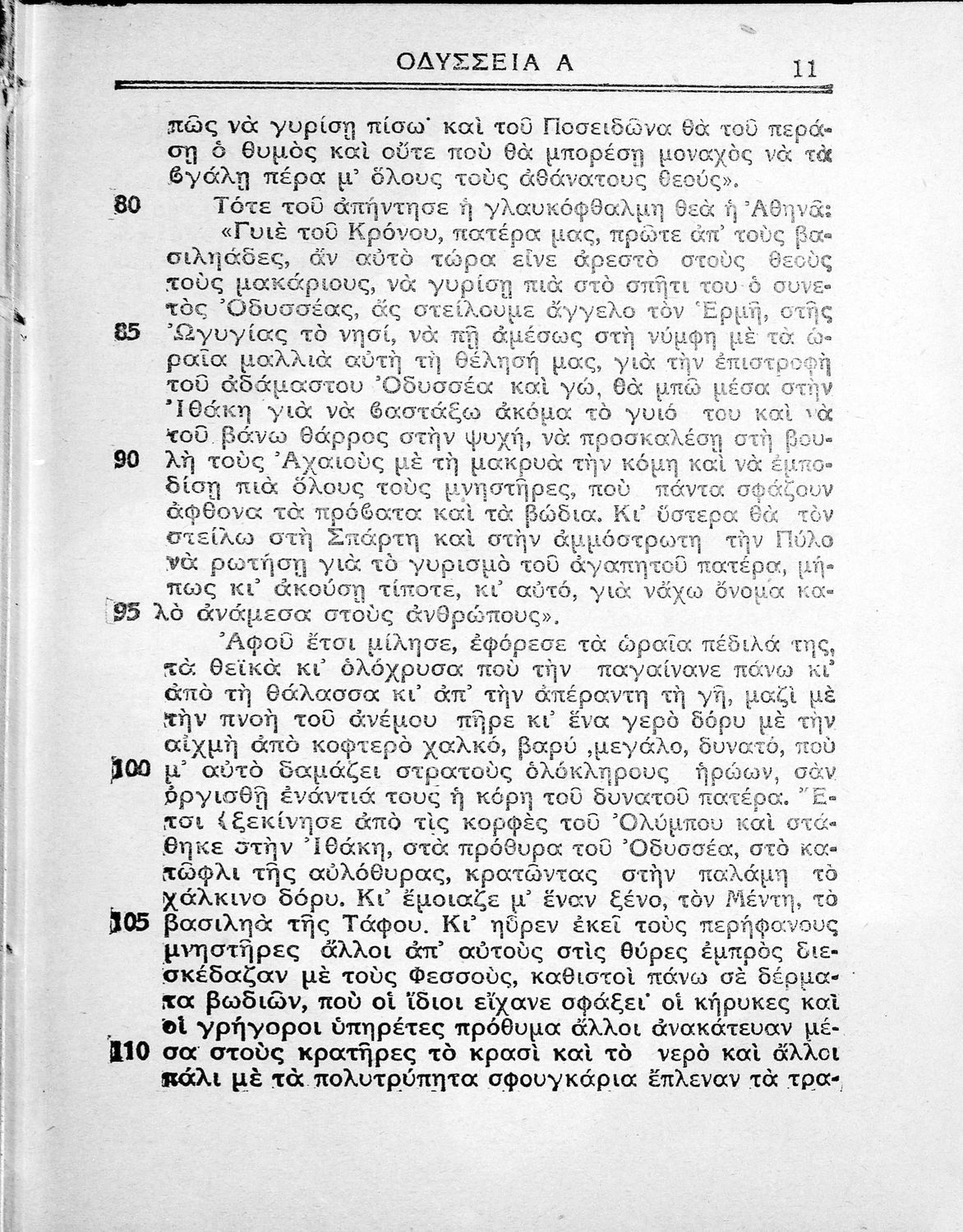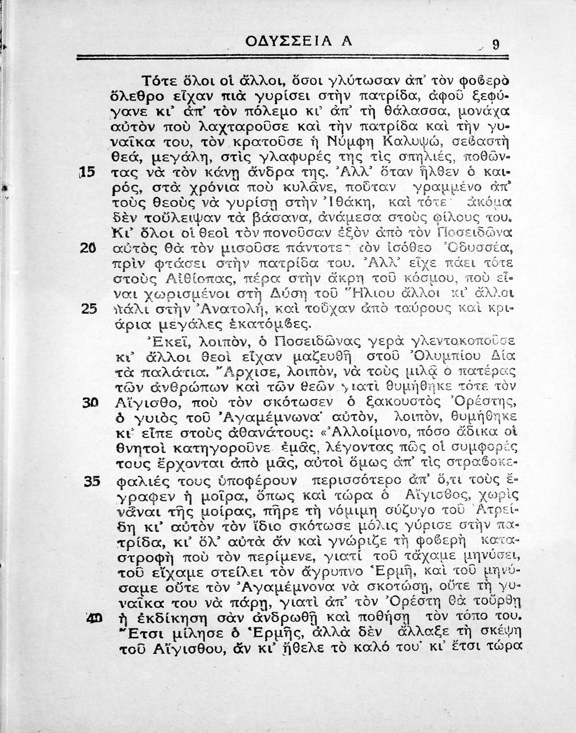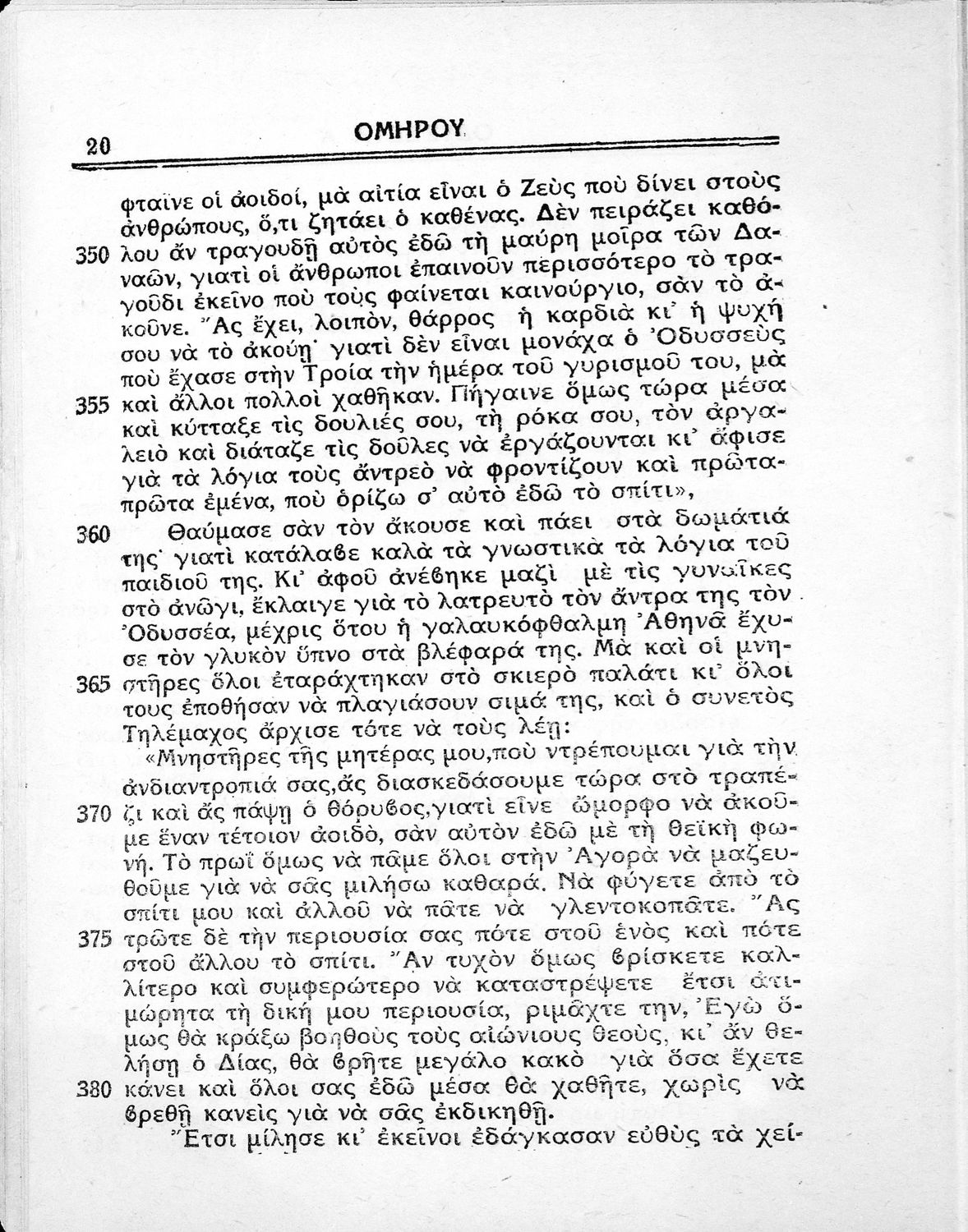Σχολικό εγχειρίδιο Αρχαίων Ελληνικών Γυμνασίου που περιλαμβάνει μετάφραση της Οδύσσειας και λεξιλόγιο.