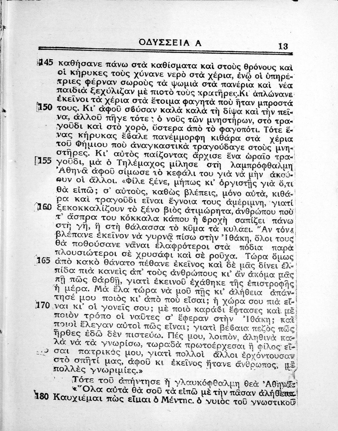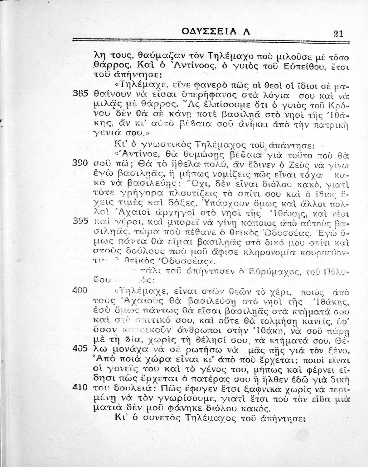 Σχολικό εγχειρίδιο του Γυμνασίου για το μάθημα των Αρχαίων Ελληνικών. Πρόκειται για το κείμενο της Οδύσσειας μεταφρασμένο στο τέλος περιλαμβάνει λεξιλόγιο.
