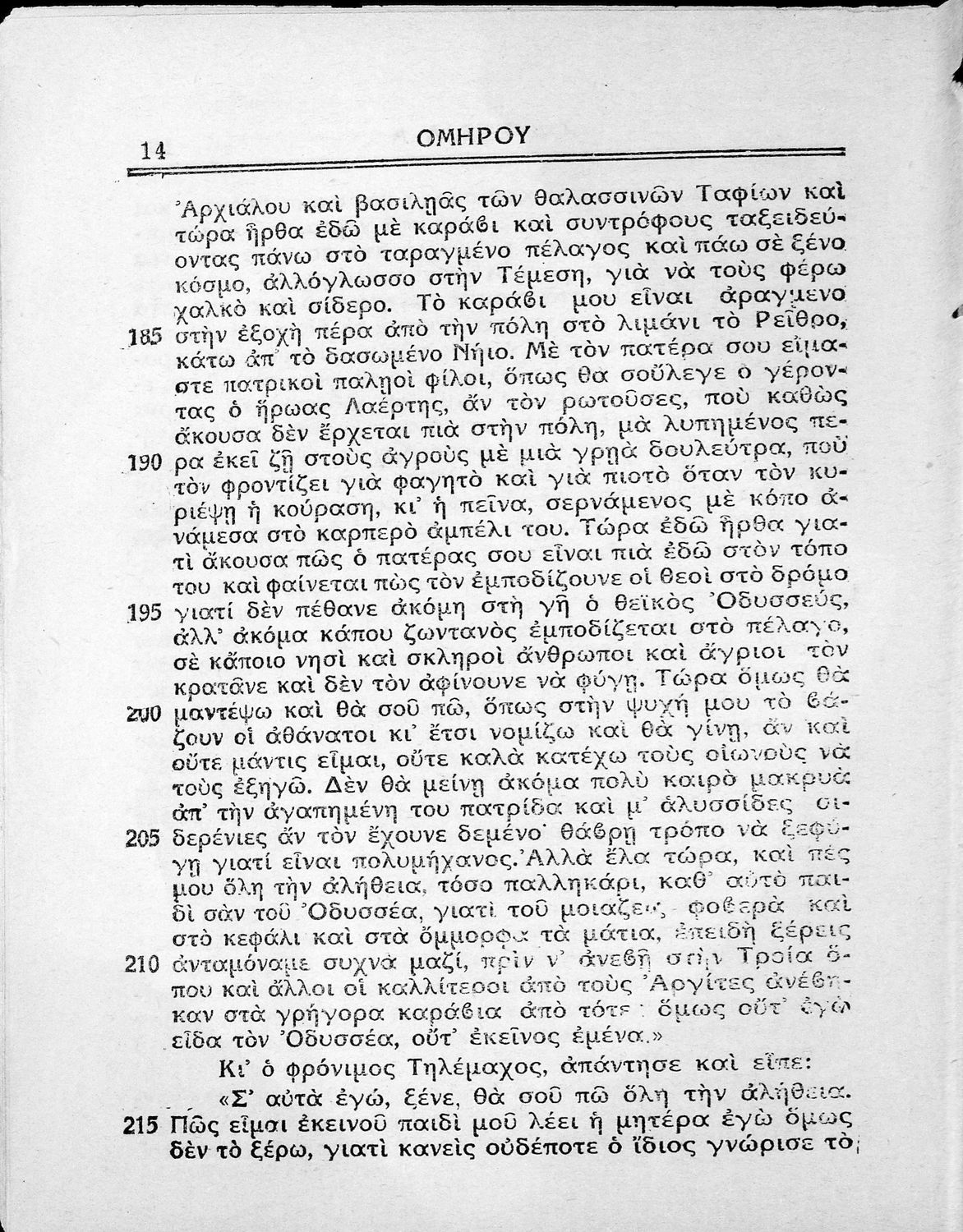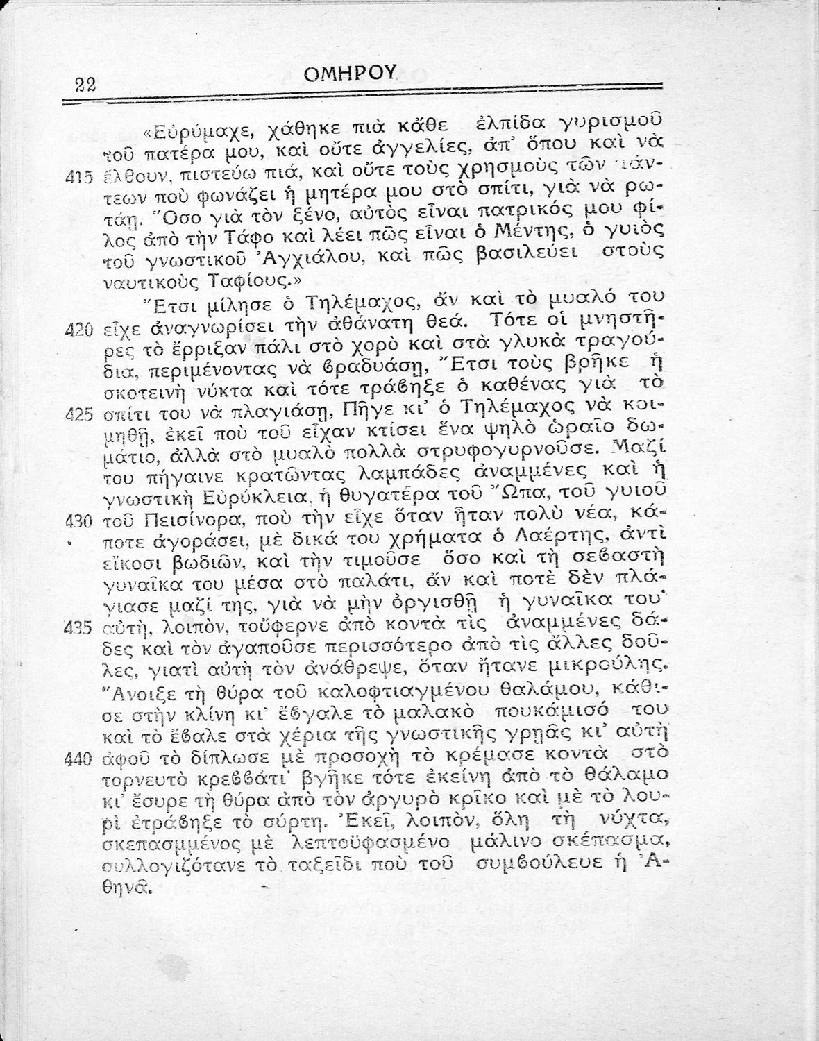 Παιδαγωγικό βοήθημα Αρχαίων Ελληνικών που περιλαμβάνει μετάφραση των ραψωδιών Ν-Ω της Οδύσσειας.