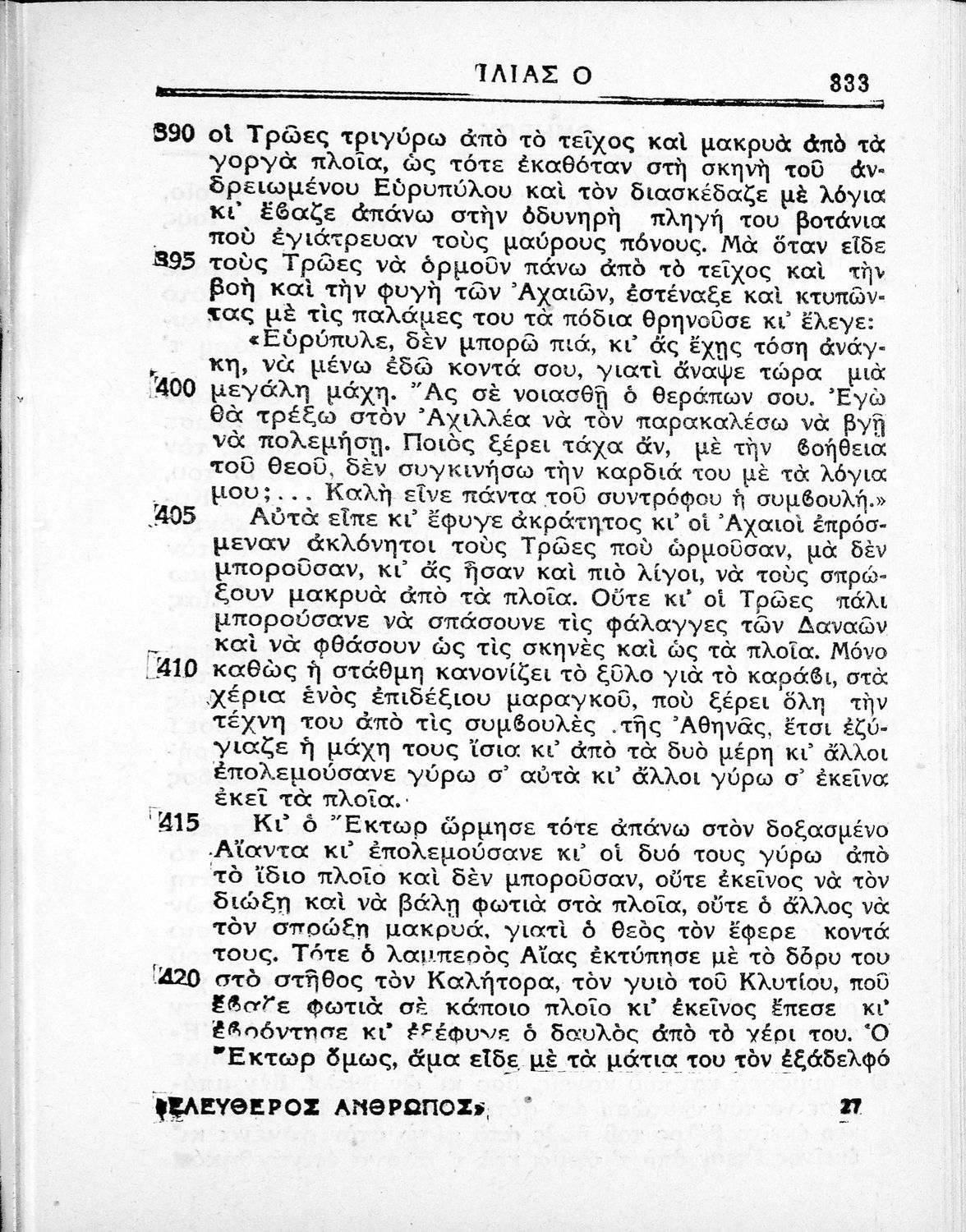Παιδαγωγικό βοήθημα. Περιλαμβάνει τη μετάφραση της Ιλιάδας σε απόδοση του συγγραφέα. Είχε εκδοθεί από την εφημερίδα ελεύθερος άνθρωπος, η οποία κυκλοφορούσε τη δεκαετία του 1930 και χαρακτηριζόταν ως δημοκρατική.