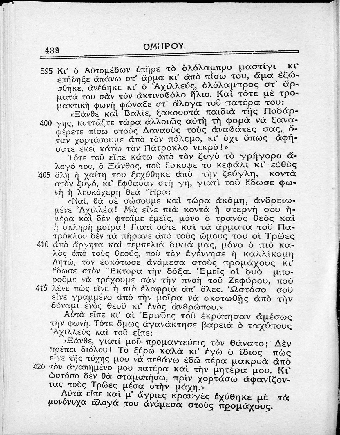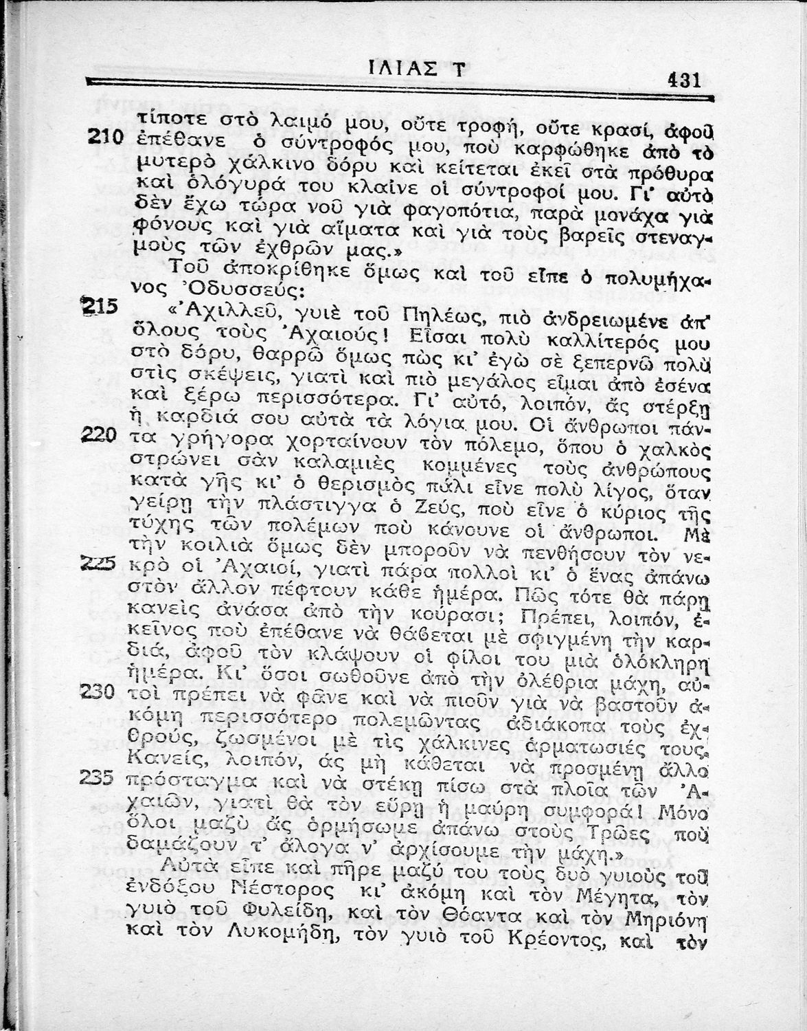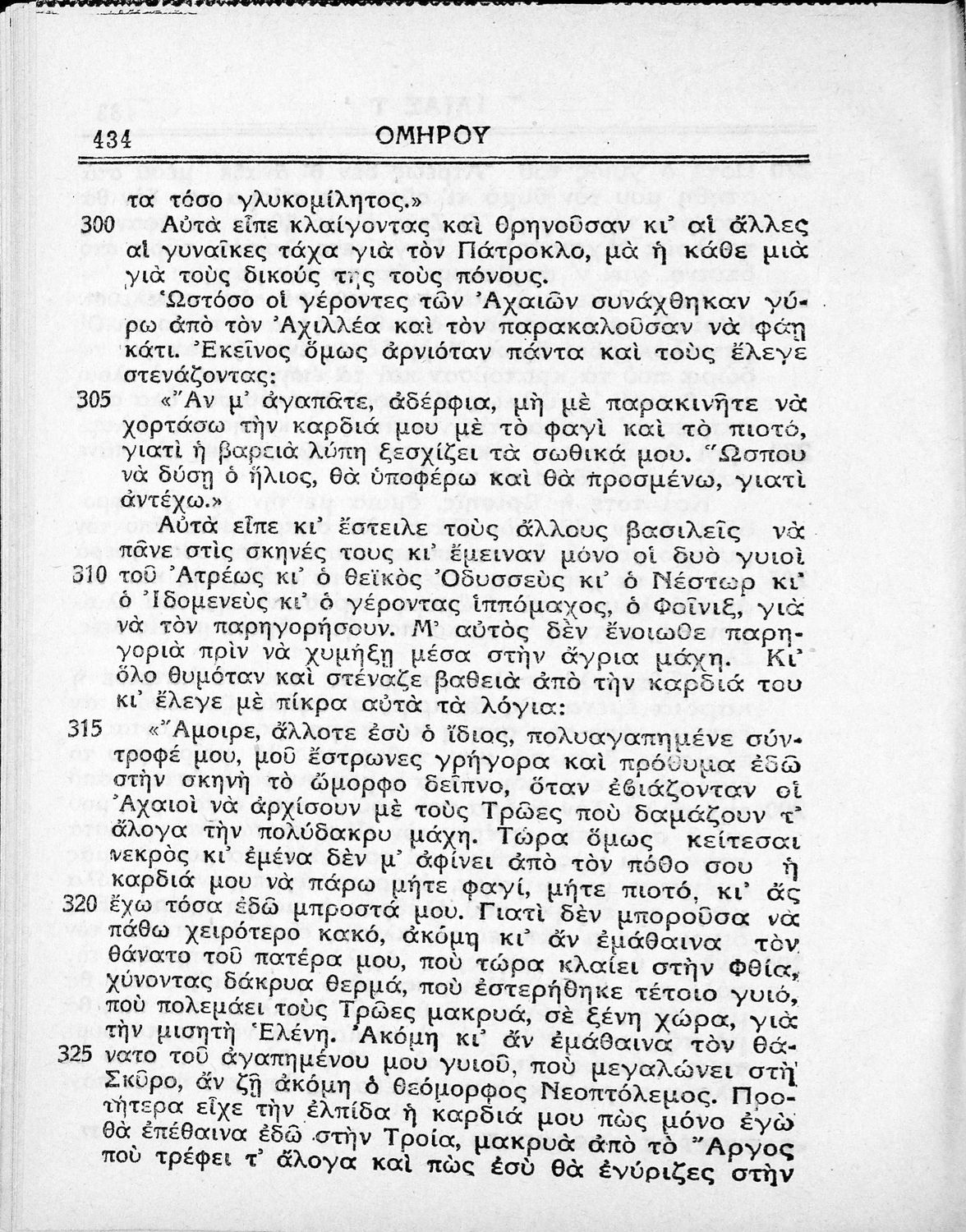 Σχολικό εγχειρίδιο της Δευτεροβάθμιας Εκπαίδευσης για το μάθημα των Αρχαίων Ελληνικών. Πρόκειται για το κείμενο της Ιλιάδας μεταφρασμένο, με πραγματολογικές παρατηρήσεις. Στο τέλος περιλαμβάνει λεξιλόγιο.