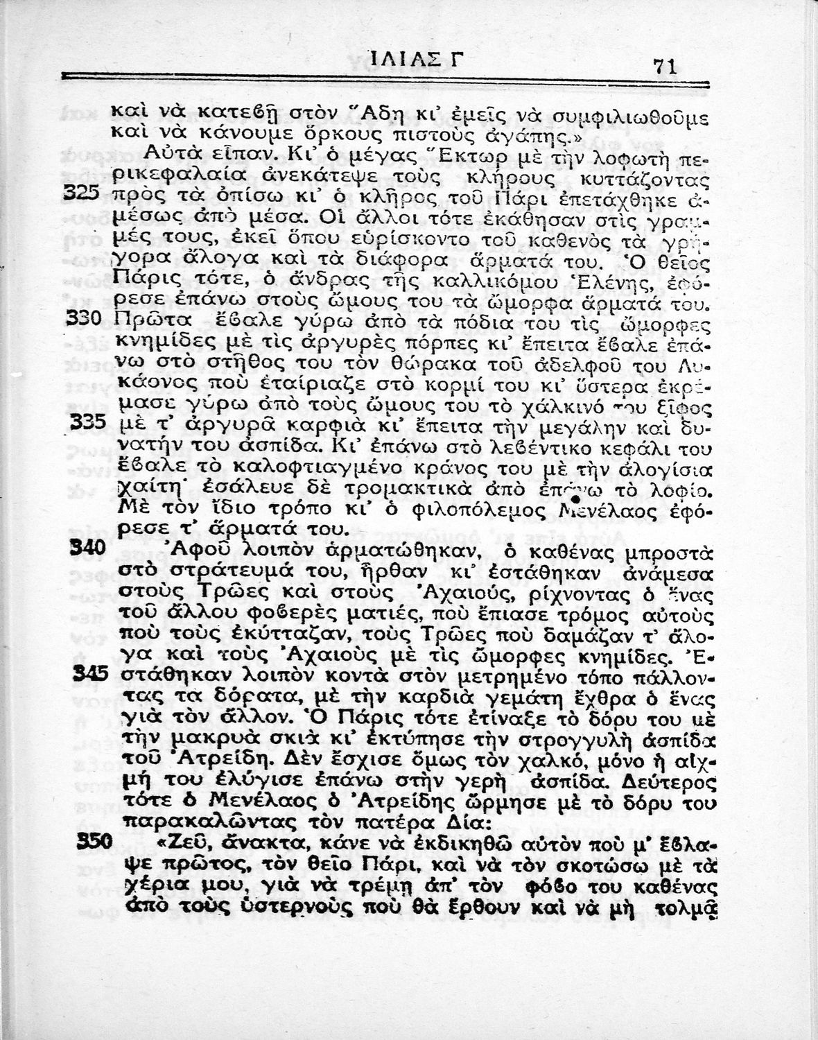 Σχολικό εγχειρίδιο της Δευτεροβάθμιας Εκπαίδευσης για το μάθημα των Αρχαίων Ελληνικών. Πρόκειται για το κείμενο της Ιλιάδας μεταφρασμένο, με πραγματολογικές παρατηρήσεις. Στο τέλος περιλαμβάνει λεξιλόγιο.