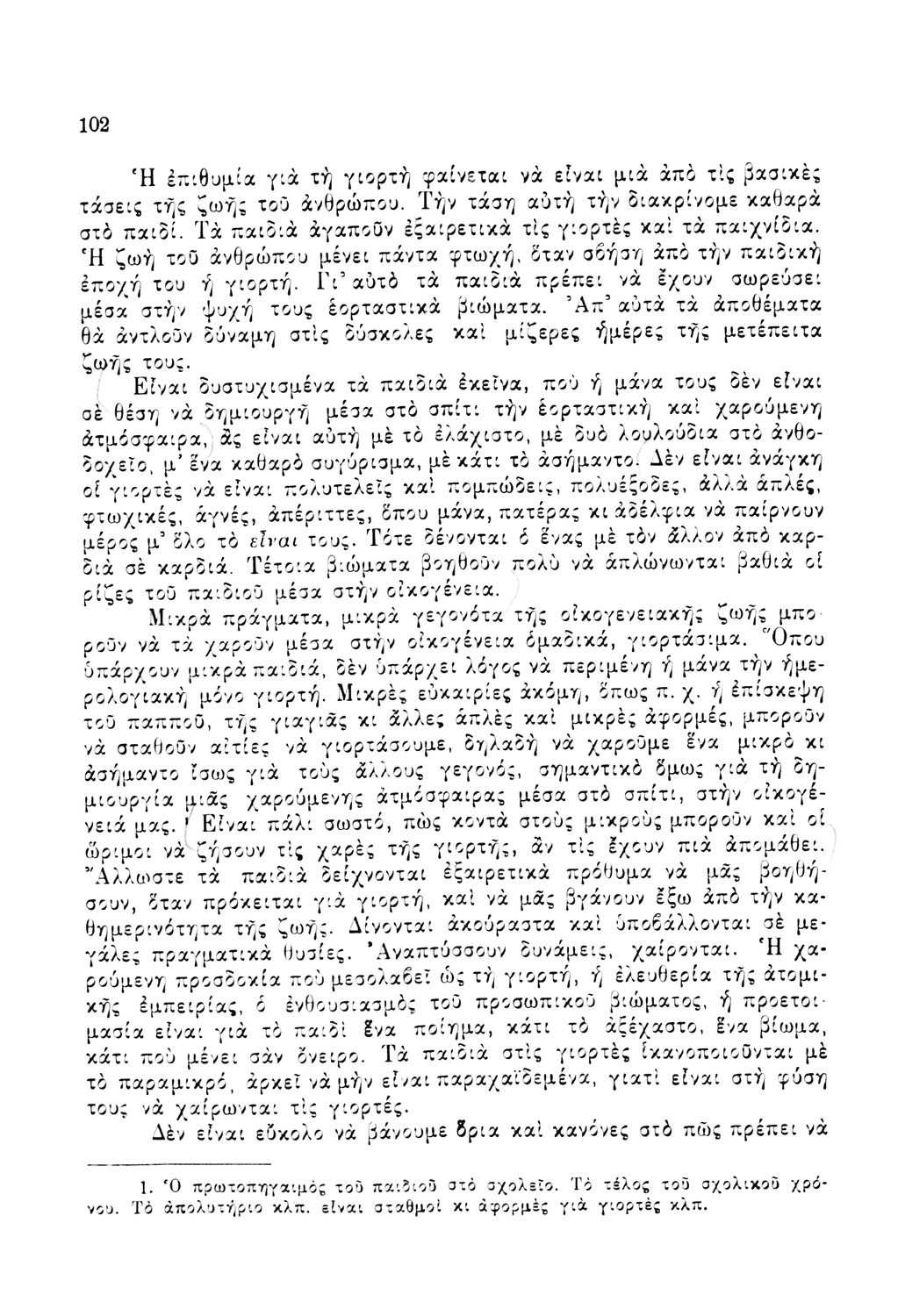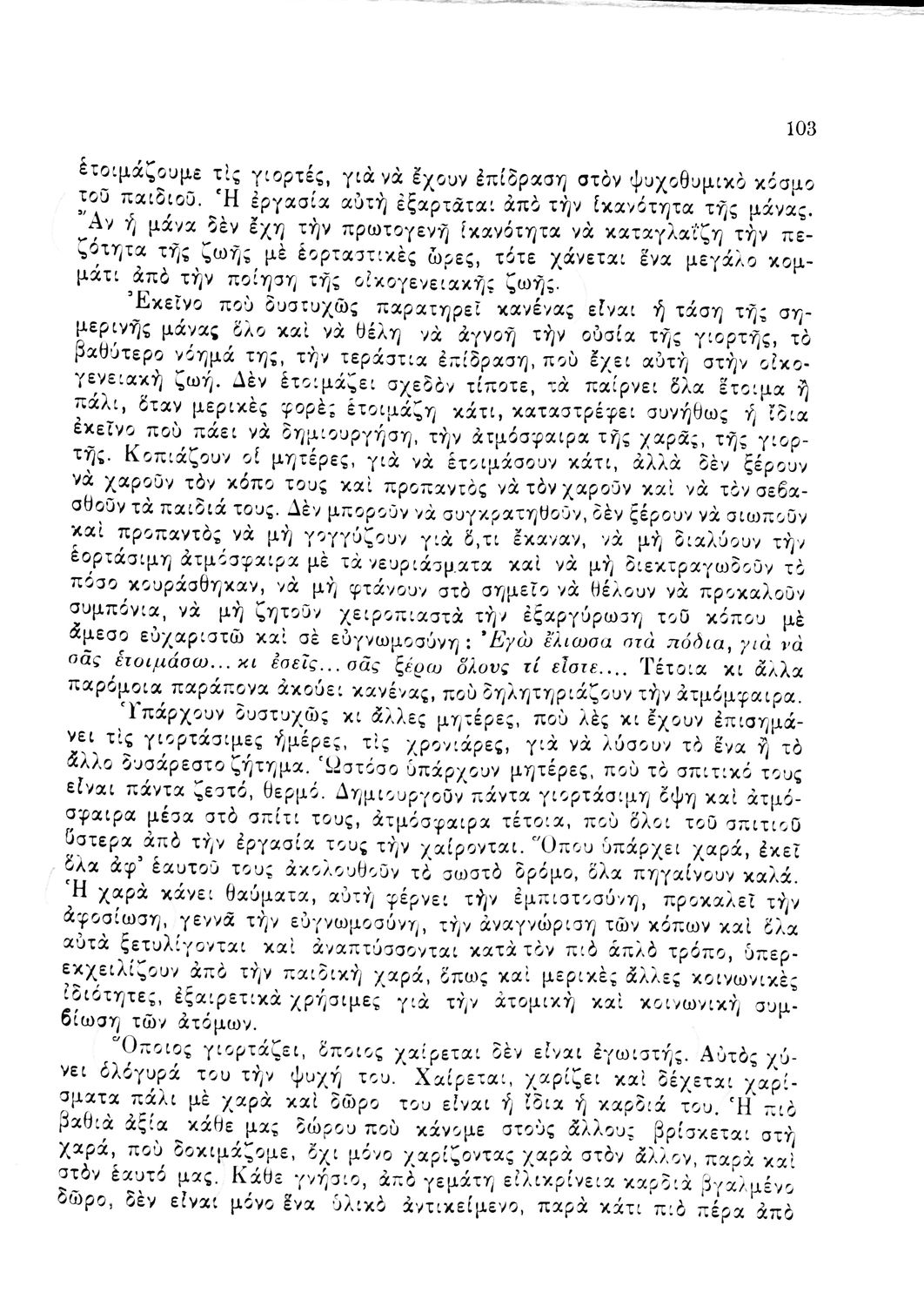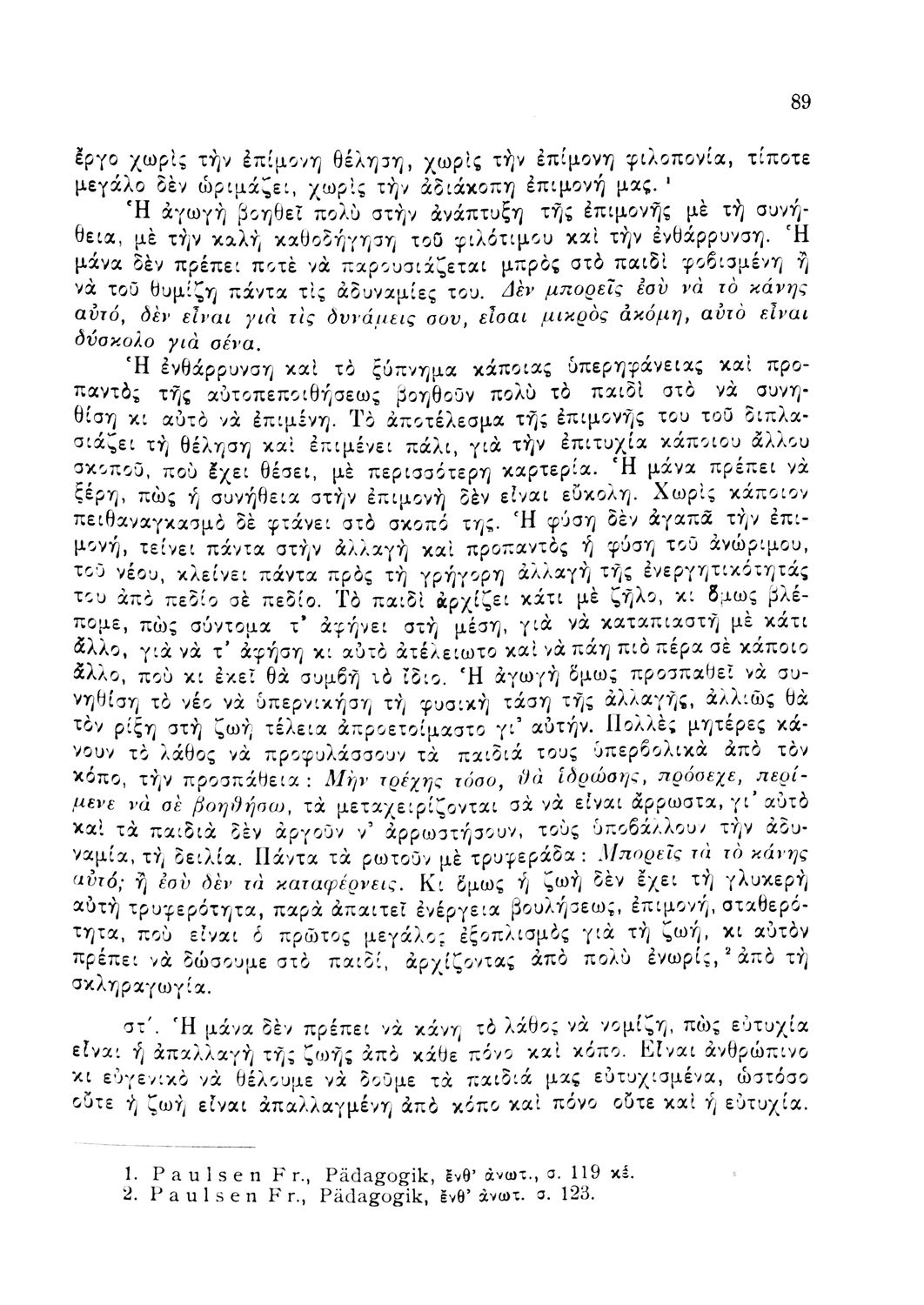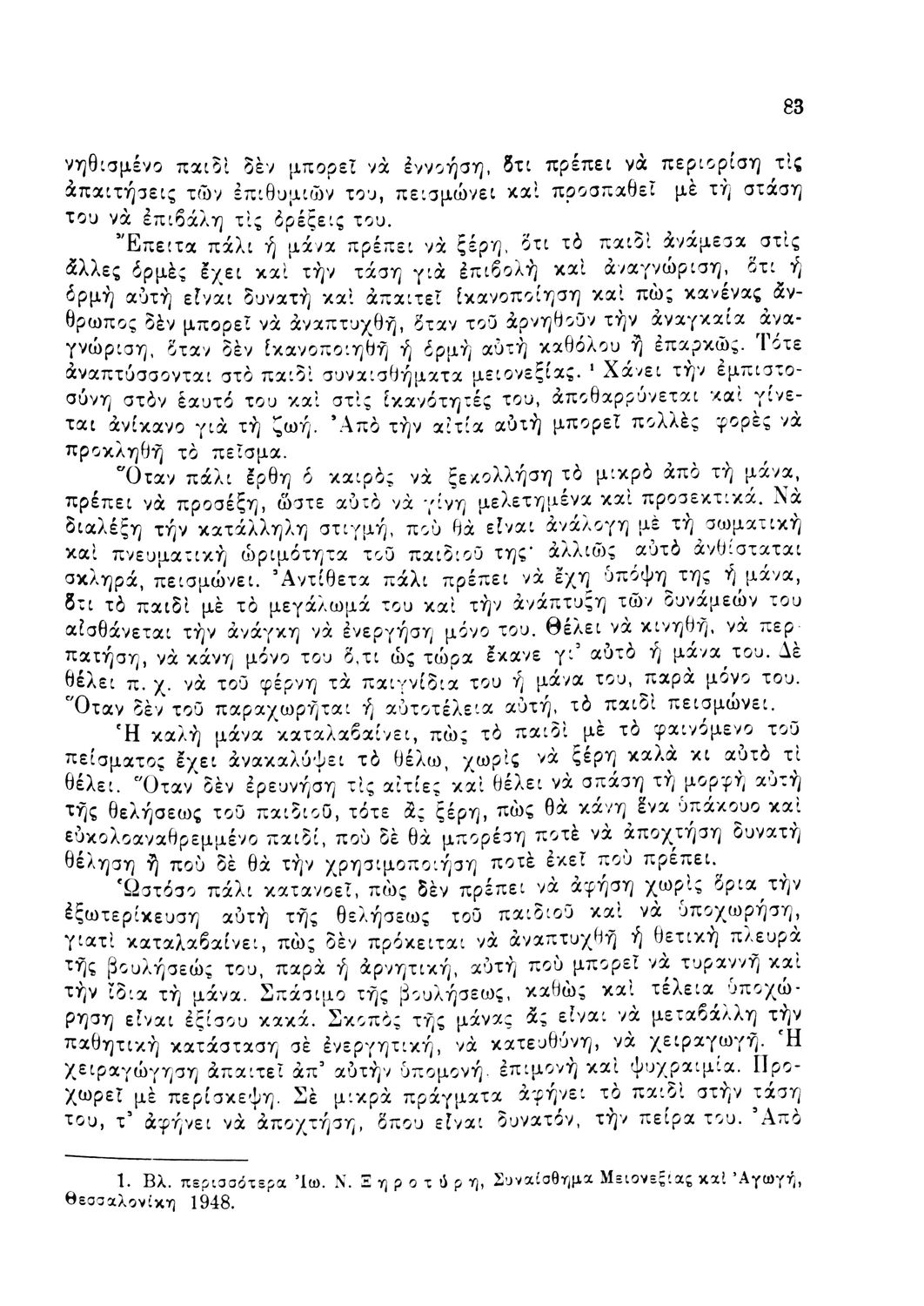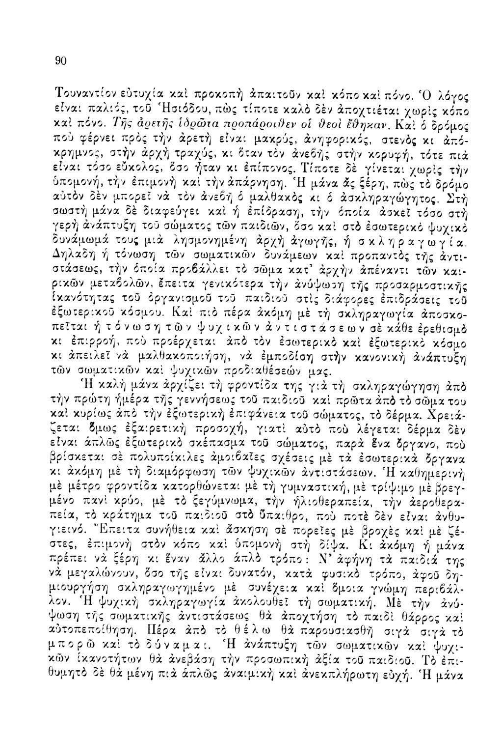 Παιδαγωγικό βοήθημα στο οποίο αναλύεται η σπουδαιότητα του ρόλου της μάνας στην αγωγή και την εκπαίδευση του παιδιού. Ο συγγραφέας υπήρξε Διευθυντής του Πειραματικού Σχολείου Πανεπιστημίου Θεσσαλονίκης.