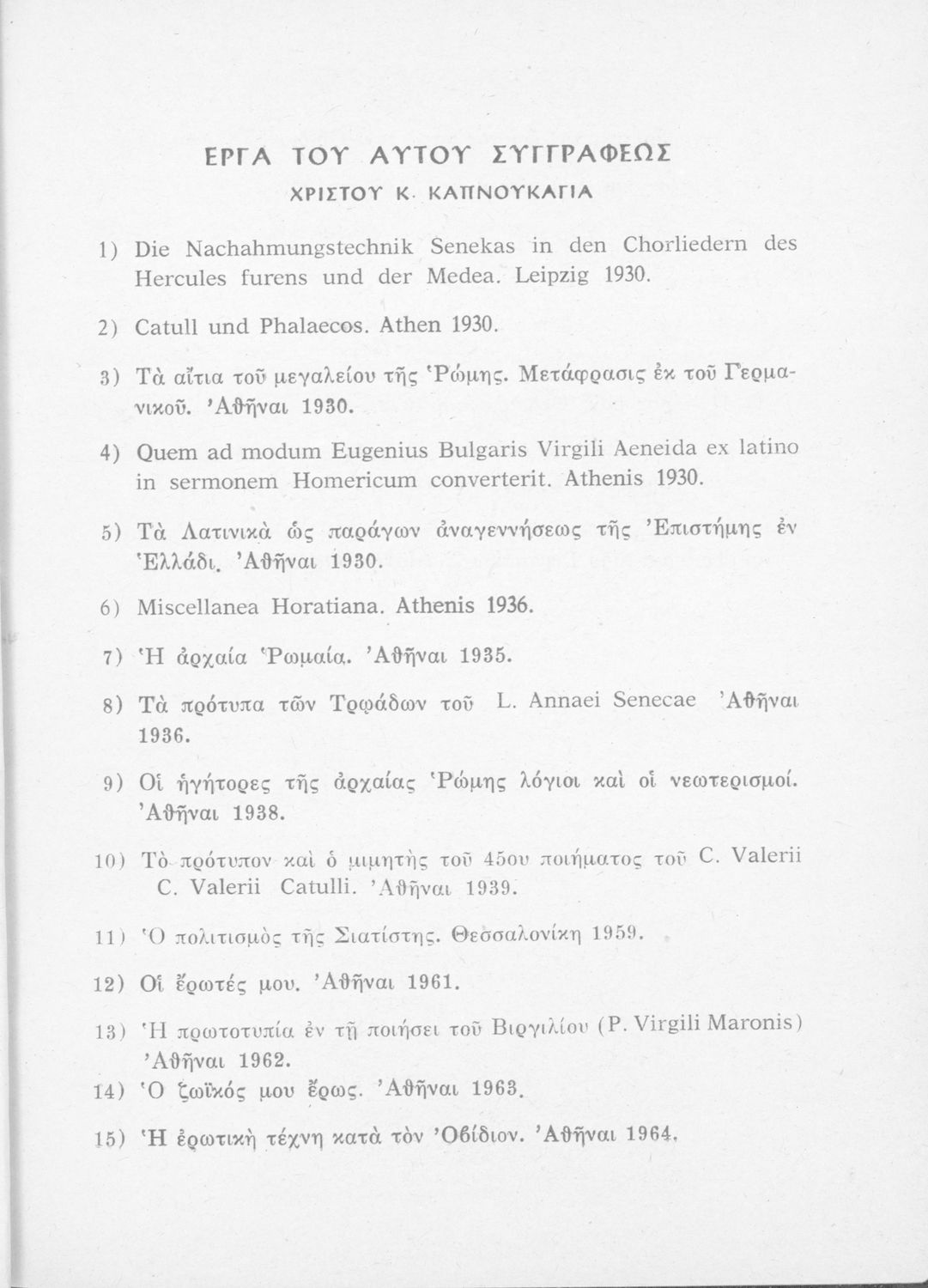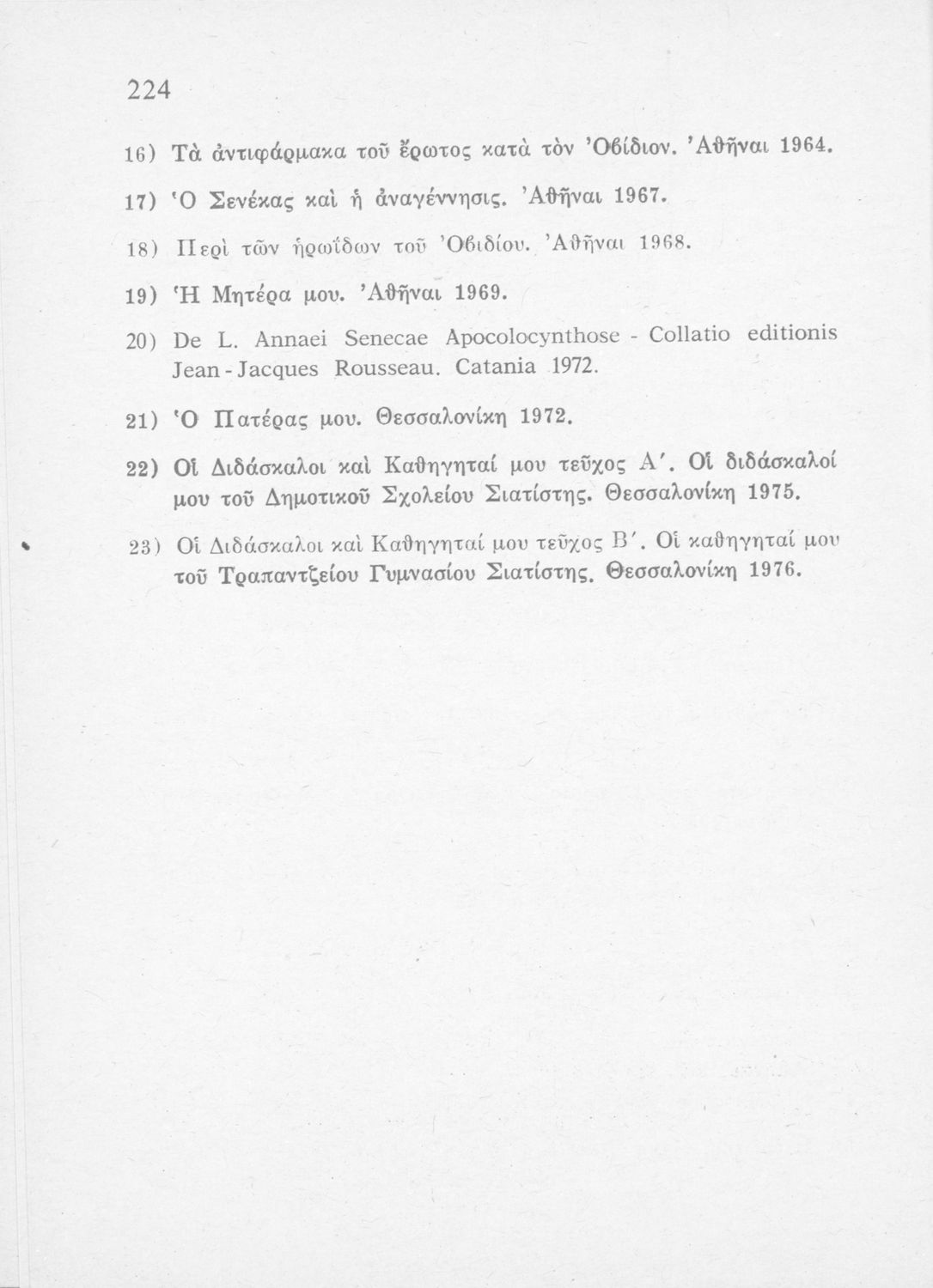 Ιδιωτική έκδοση στην οποία περιγράφονται διάφορες σημαντικές μορφές εκπαιδευτικών που συνάντησε ο συγγραφέας στο σχολικό του βίο. Ο συγγραφέας υπήρξε τακτικός καθηγητής του Πανεπιστημίου Αθηνών. Στο βιβλίο περιέχονται φωτογραφίες των γυμνασιακών καθηγητών του.
