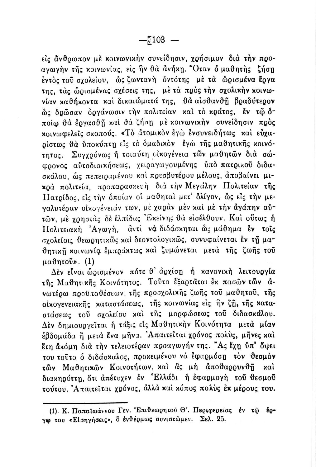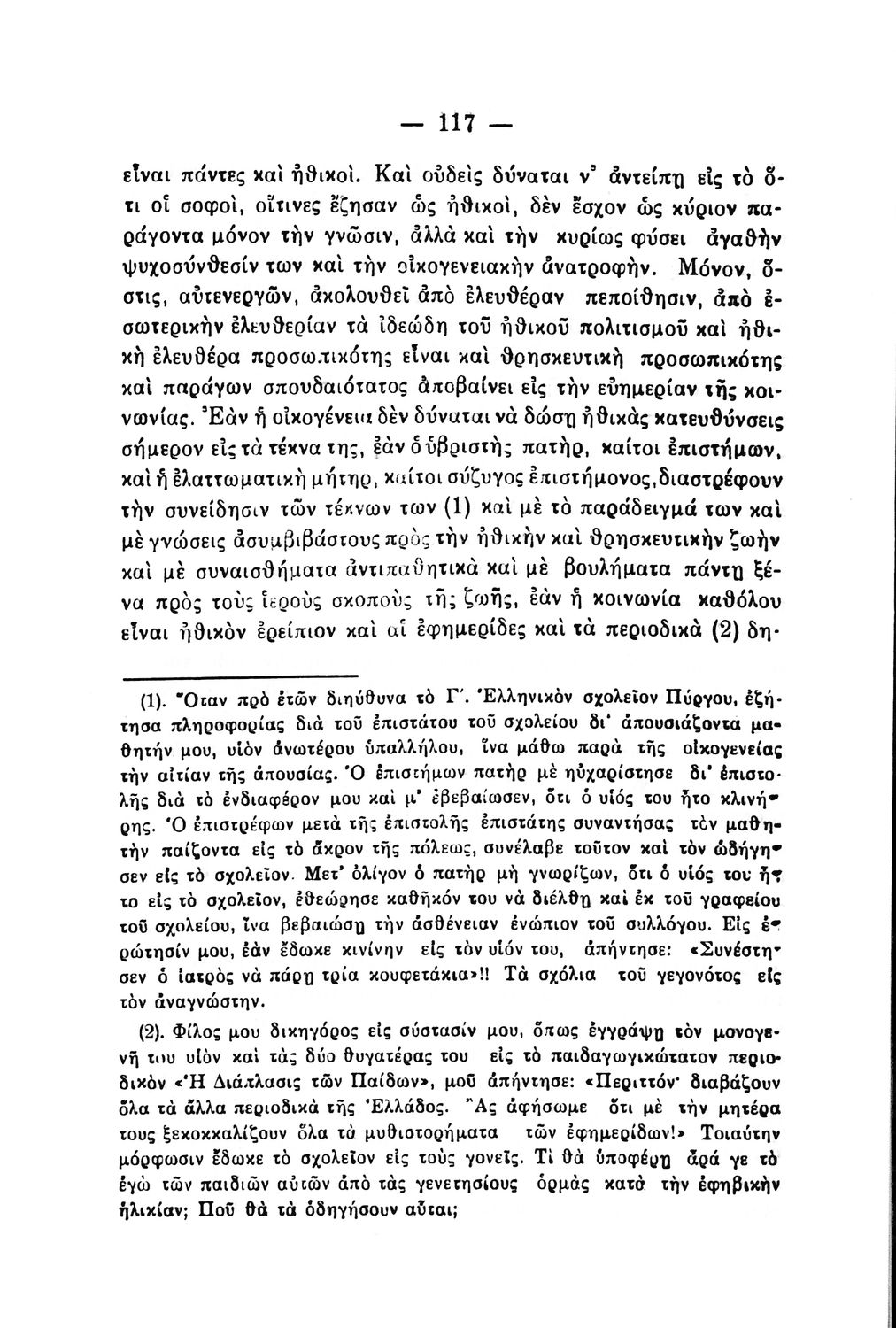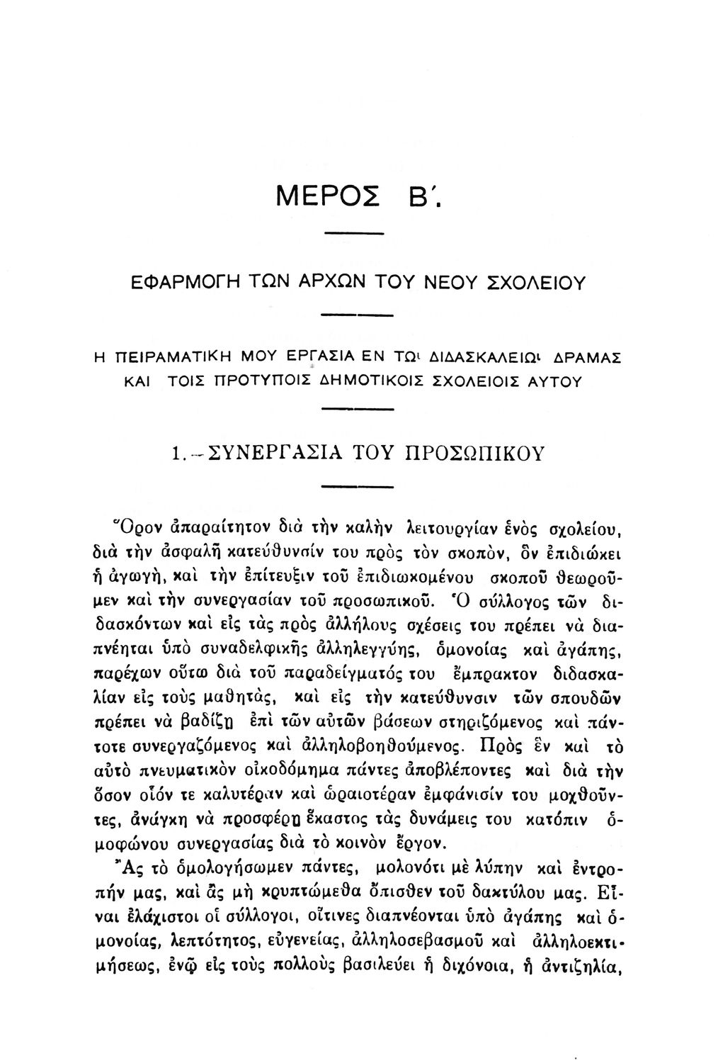 Παρουσίαση περιεχομένου: Παιδαγωγικό βοήθημα που πραγματεύεται παιδαγωγικά θέματα και την εφαρμογή των αρχών του νέου σχολείου. Ο συγγραφέας υπήρξε Υποδιευθυντής στο διδασκαλείο της Τρίπολης.