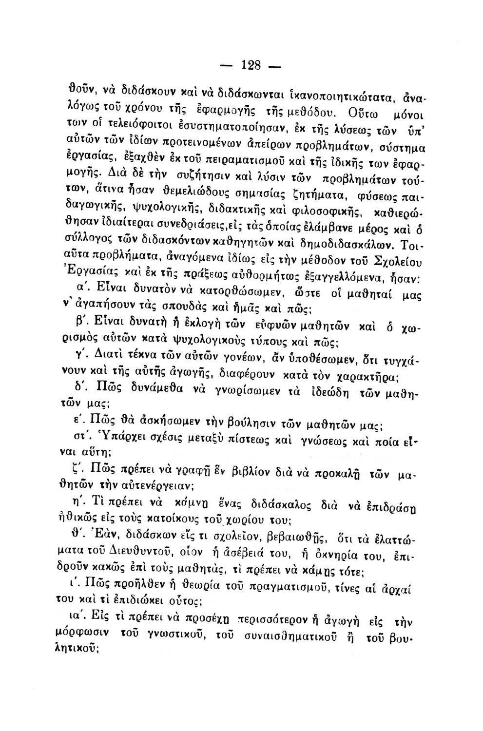 Παρουσίαση περιεχομένου: Παιδαγωγικό βοήθημα που πραγματεύεται παιδαγωγικά θέματα και την εφαρμογή των αρχών του νέου σχολείου. Ο συγγραφέας υπήρξε Υποδιευθυντής στο διδασκαλείο της Τρίπολης.