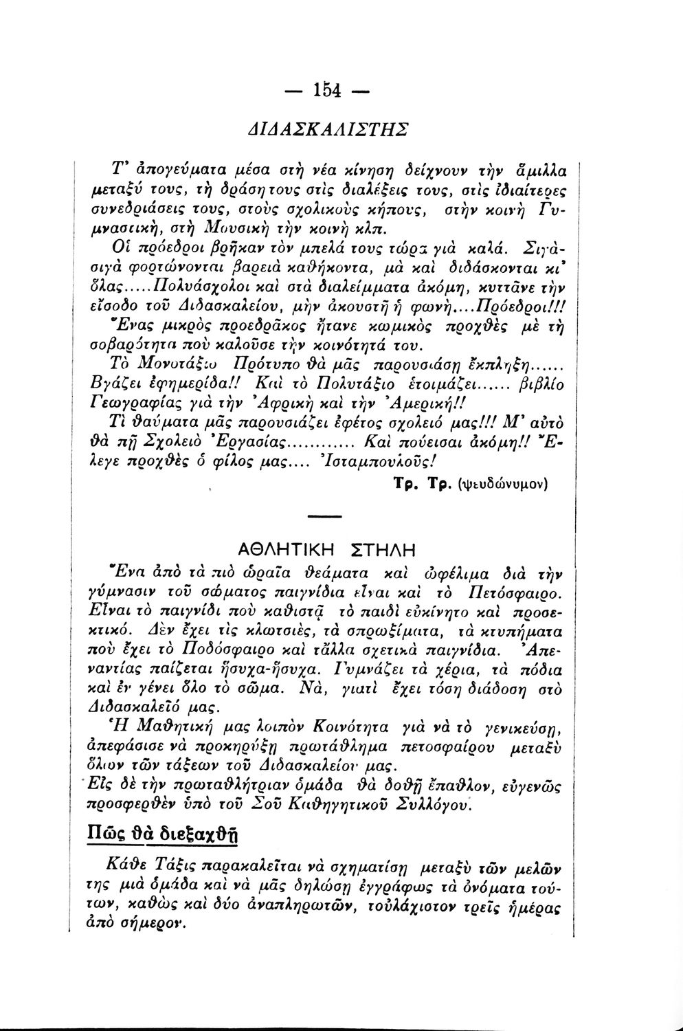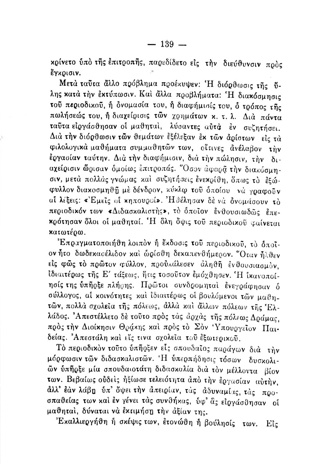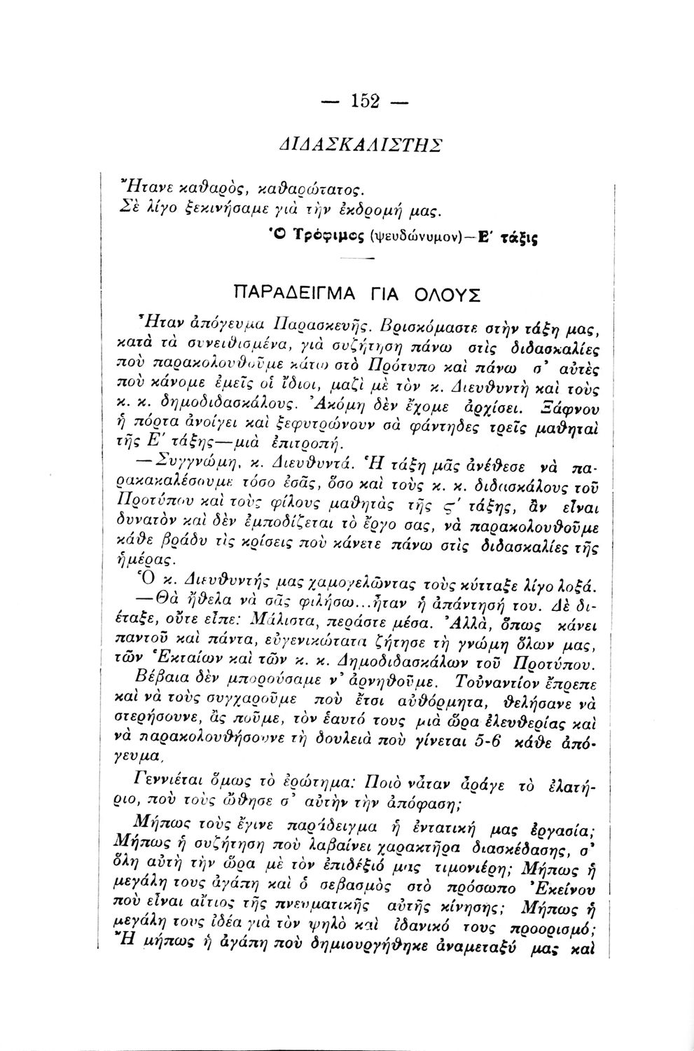 Παρουσίαση περιεχομένου: Παιδαγωγικό βοήθημα που πραγματεύεται παιδαγωγικά θέματα και την εφαρμογή των αρχών του νέου σχολείου. Ο συγγραφέας υπήρξε Υποδιευθυντής στο διδασκαλείο της Τρίπολης.