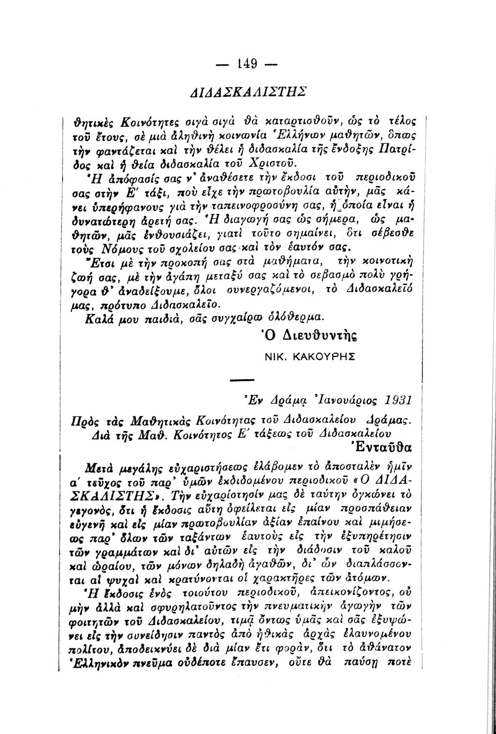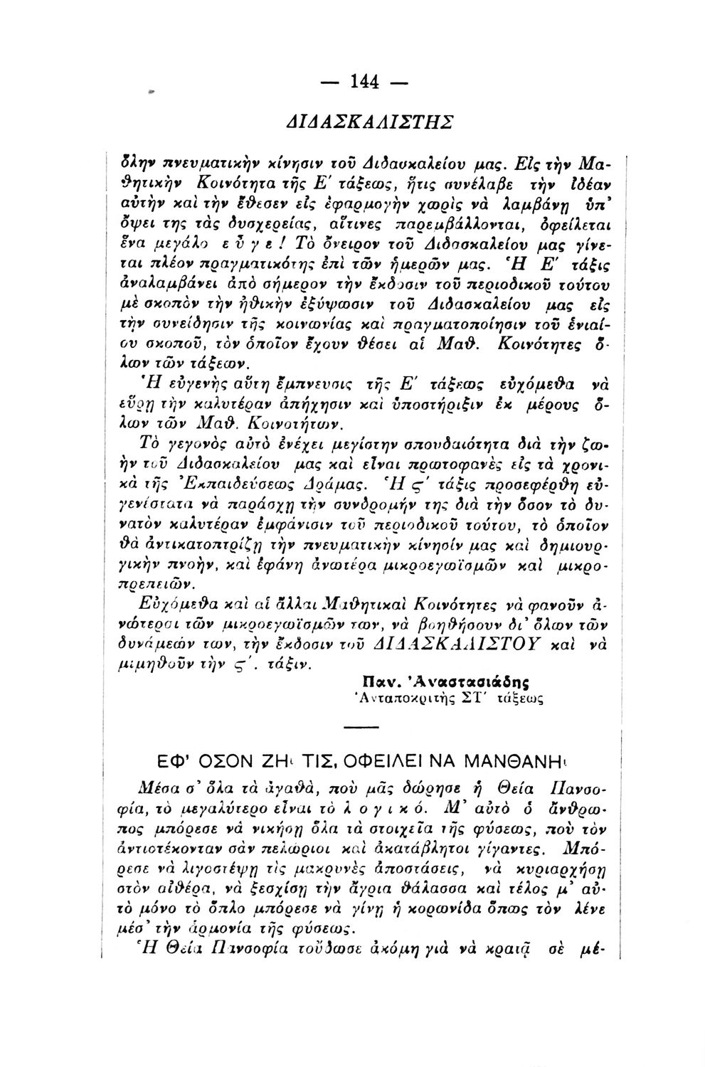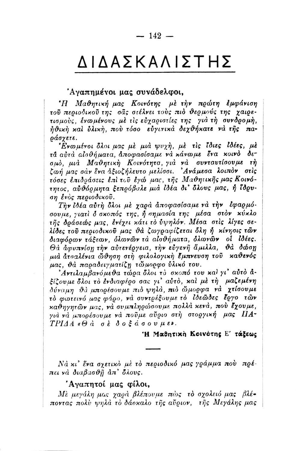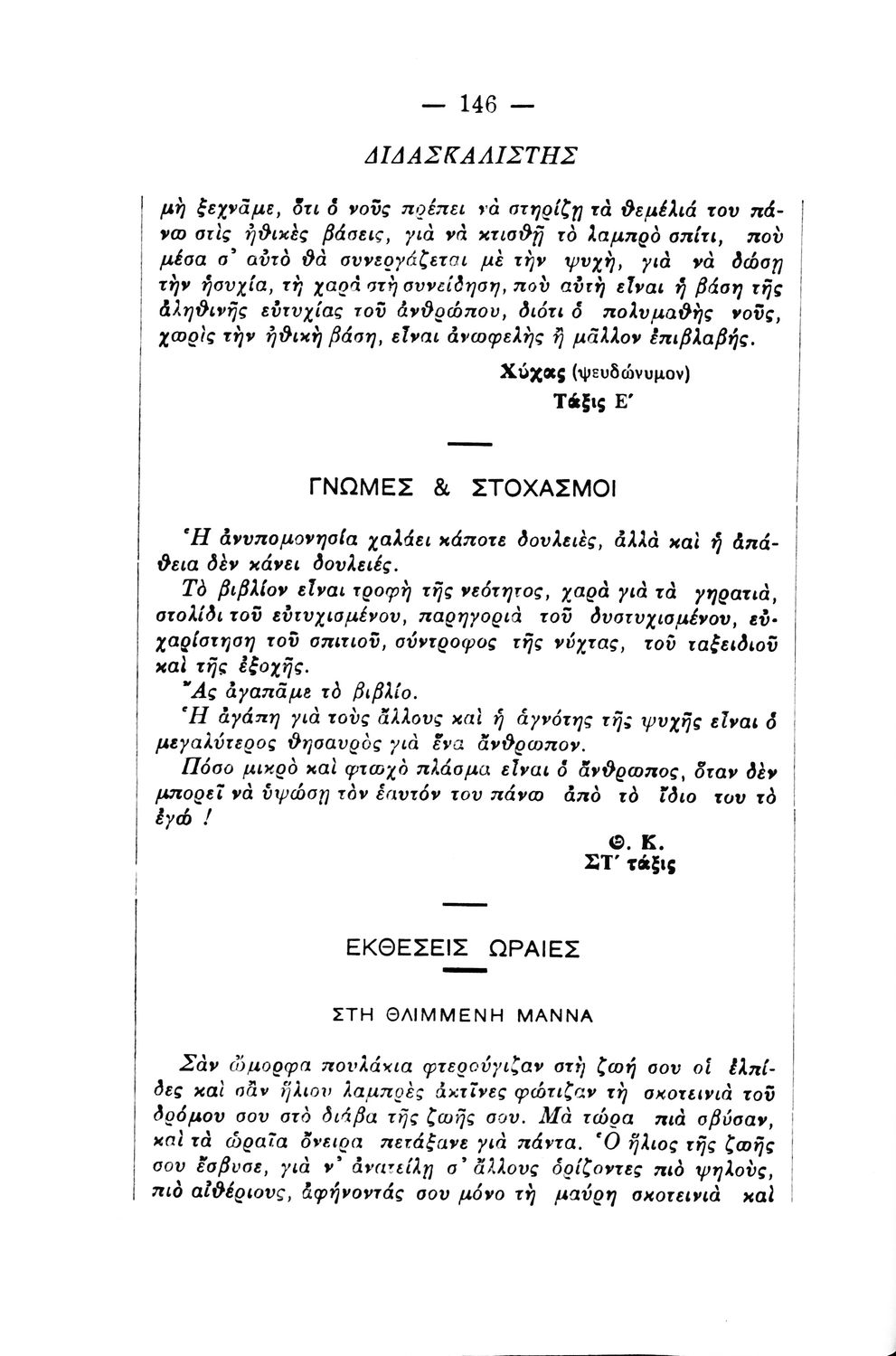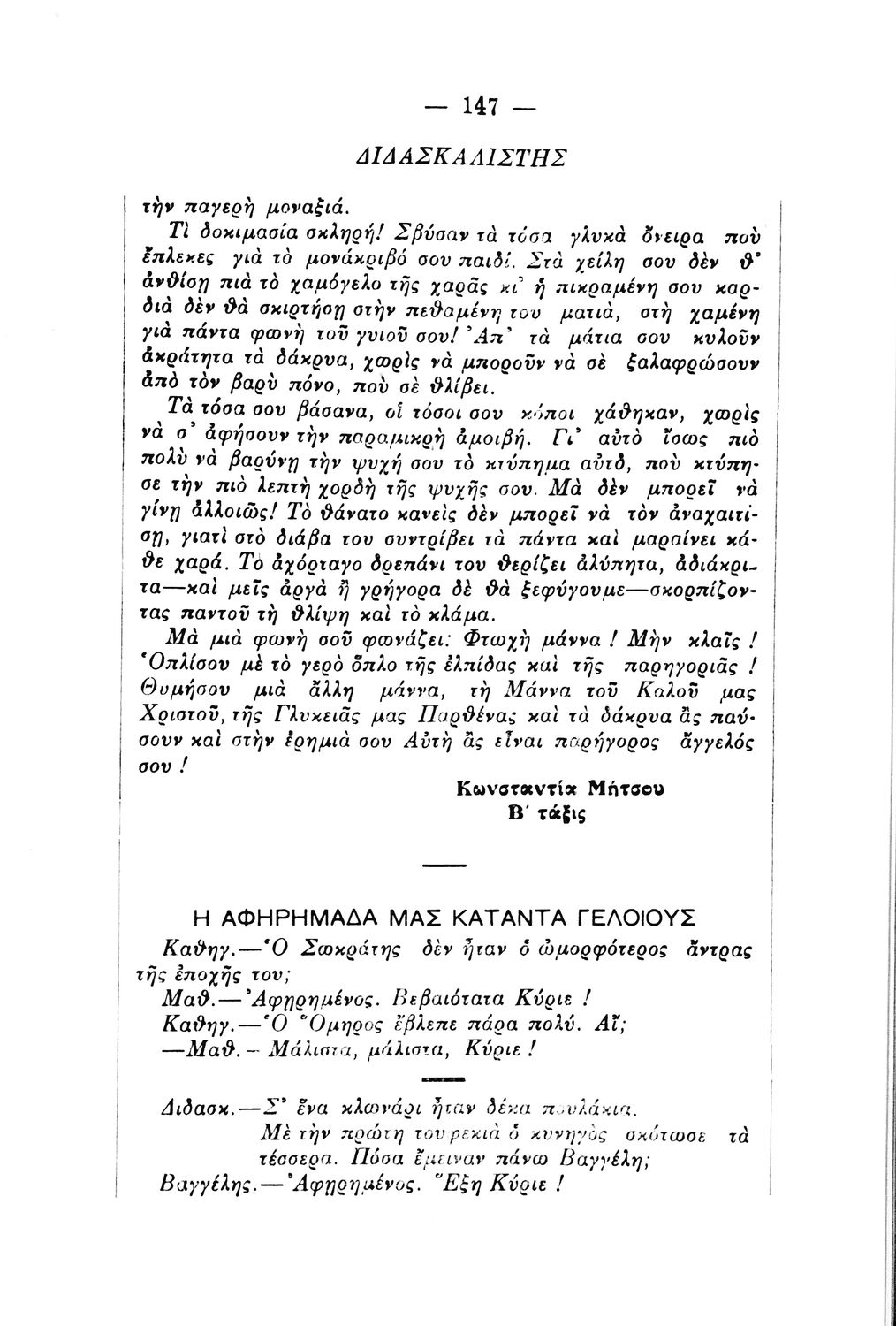 Τάξη:  Γυμνάσιο / Παρθεναγωγείο / Παιδαγωγικές Ακαδημίες