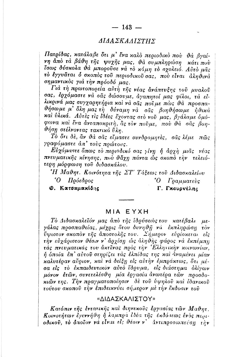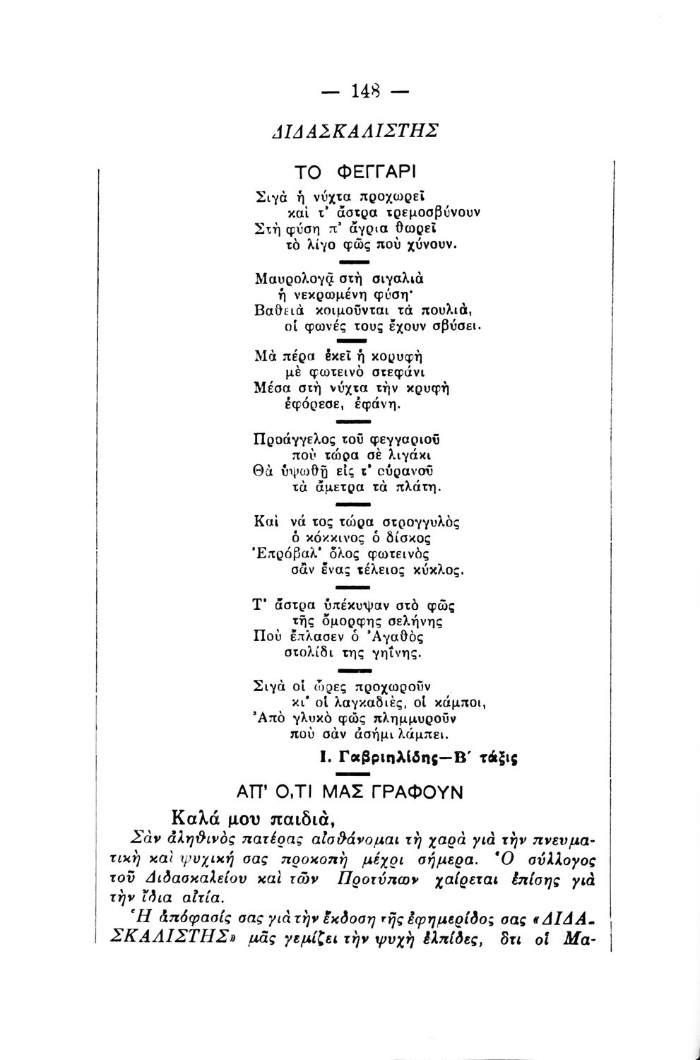 Παιδαγωγικό βοήθημα που πραγματεύεται παιδαγωγικά θέματα και την εφαρμογή των αρχών του νέου σχολείου. Ο συγγραφέας υπήρξε Υποδιευθυντής στο διδασκαλείο της Τρίπολης.