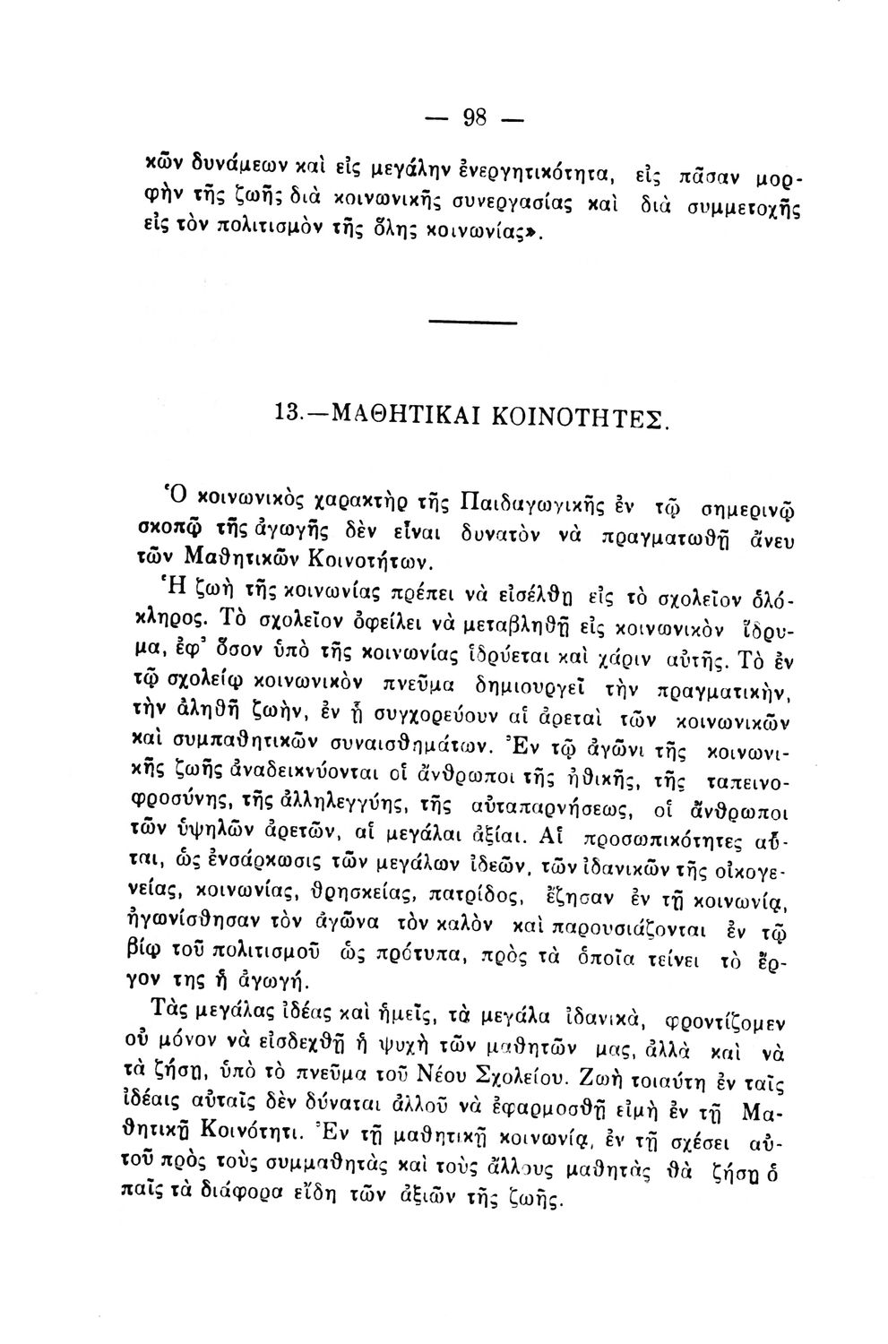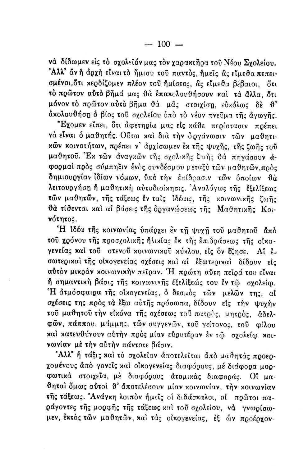 Παιδαγωγικό βοήθημα που πραγματεύεται παιδαγωγικά θέματα και την εφαρμογή των αρχών του νέου σχολείου. Ο συγγραφέας υπήρξε Υποδιευθυντής στο διδασκαλείο της Τρίπολης.