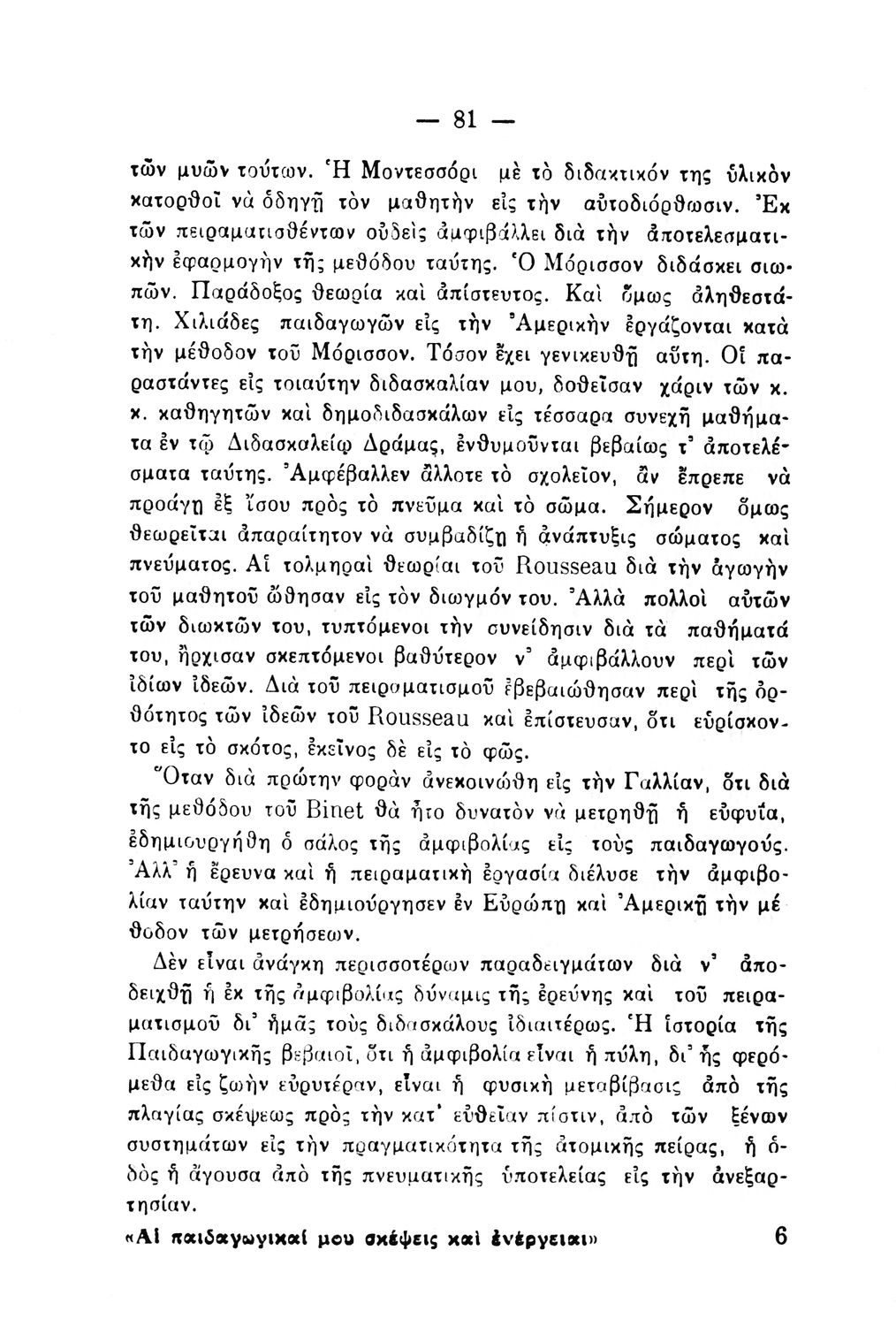 Τίτλος: Αι Παιδαγωγικαί μου σκέψεις και Ενέργειαι