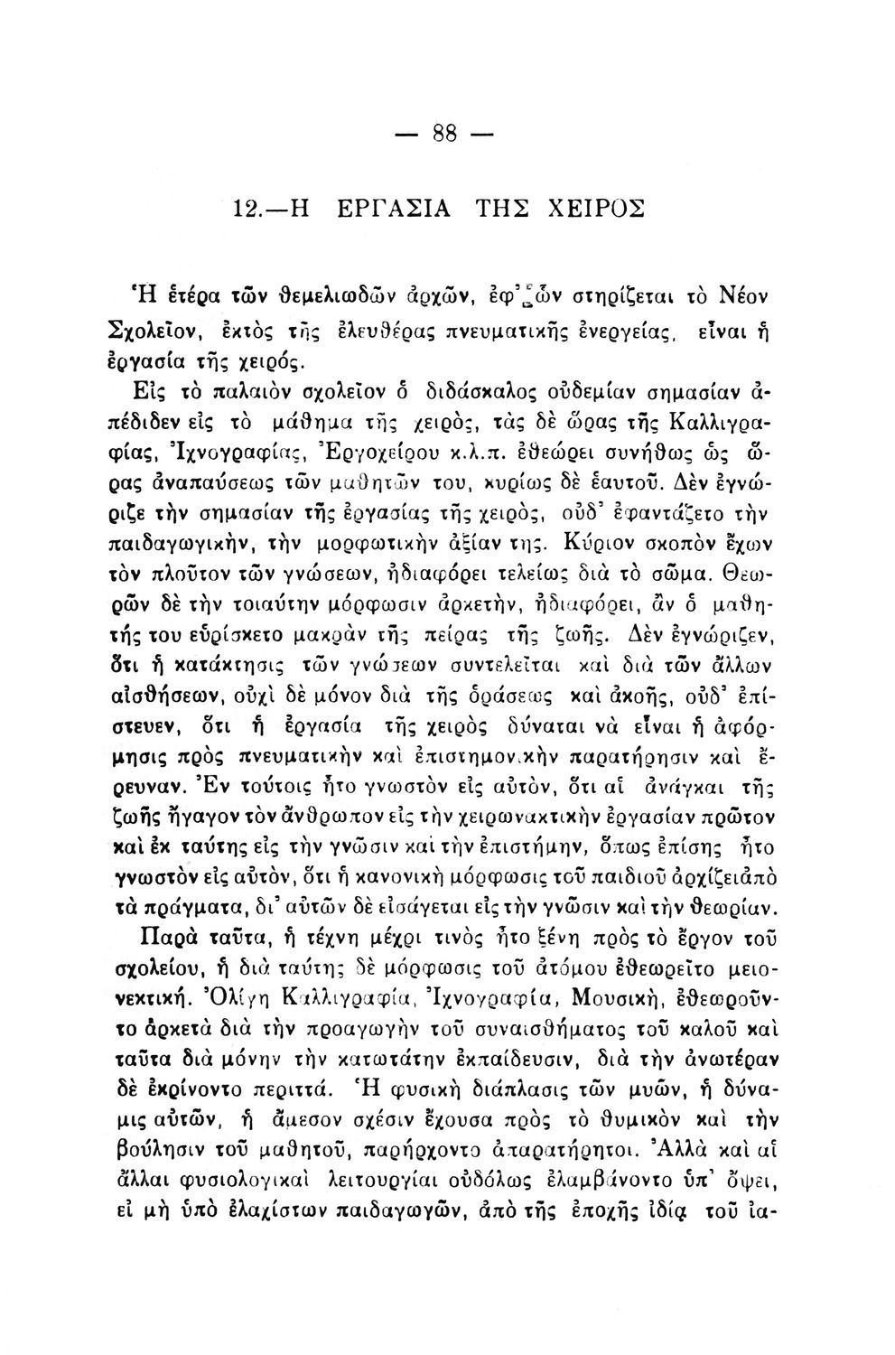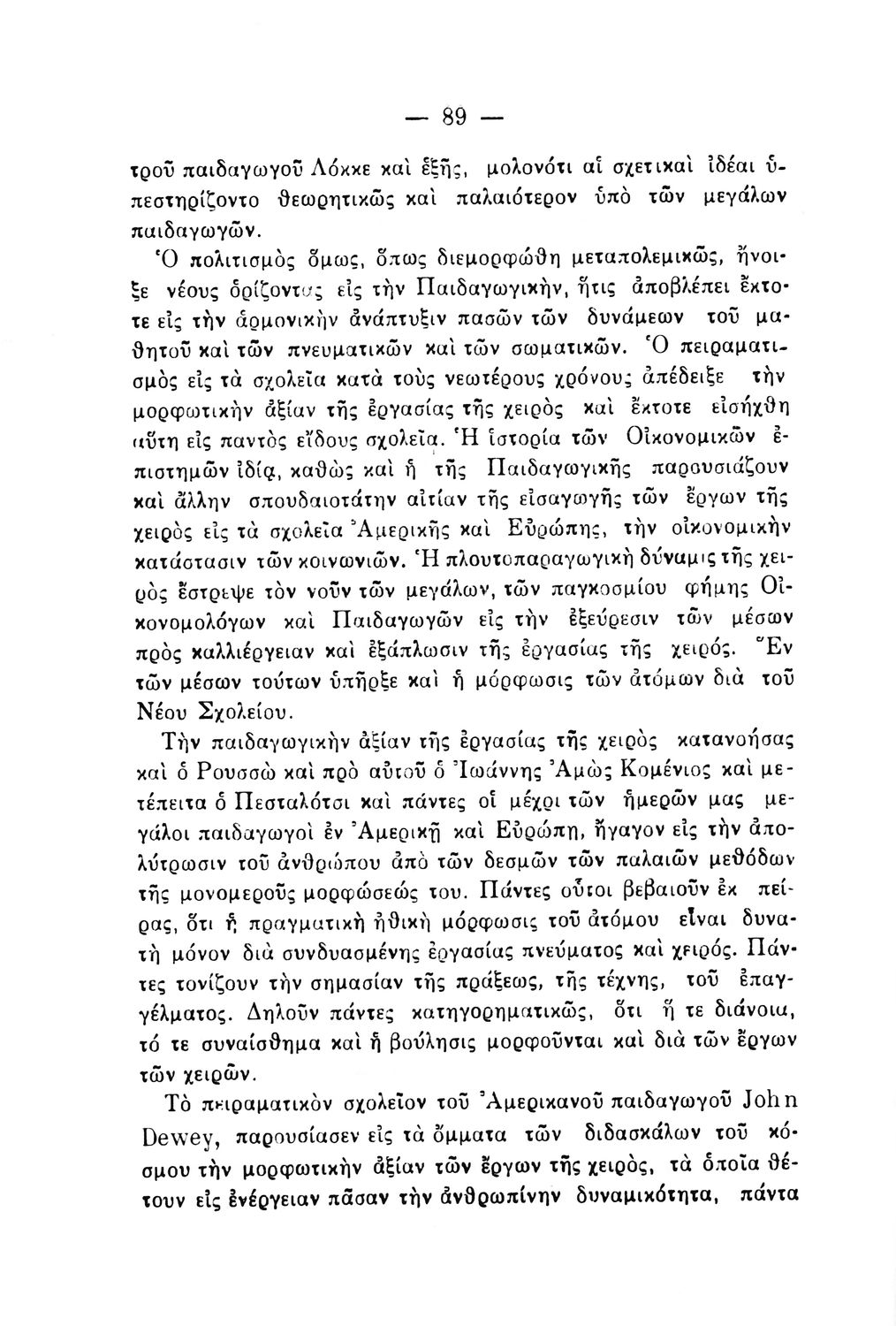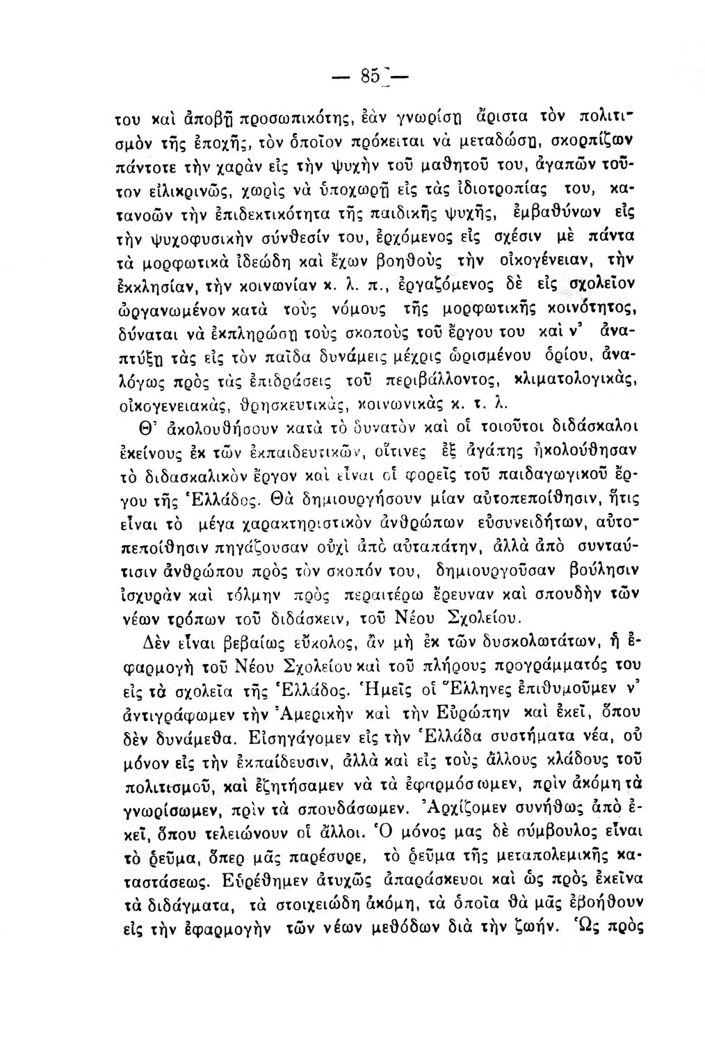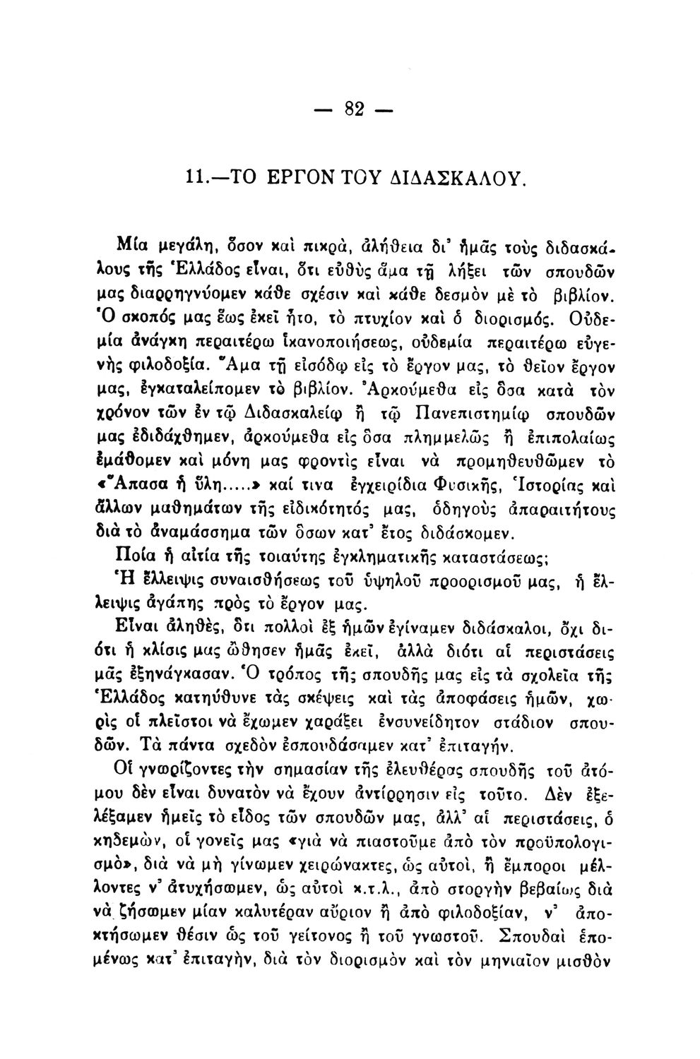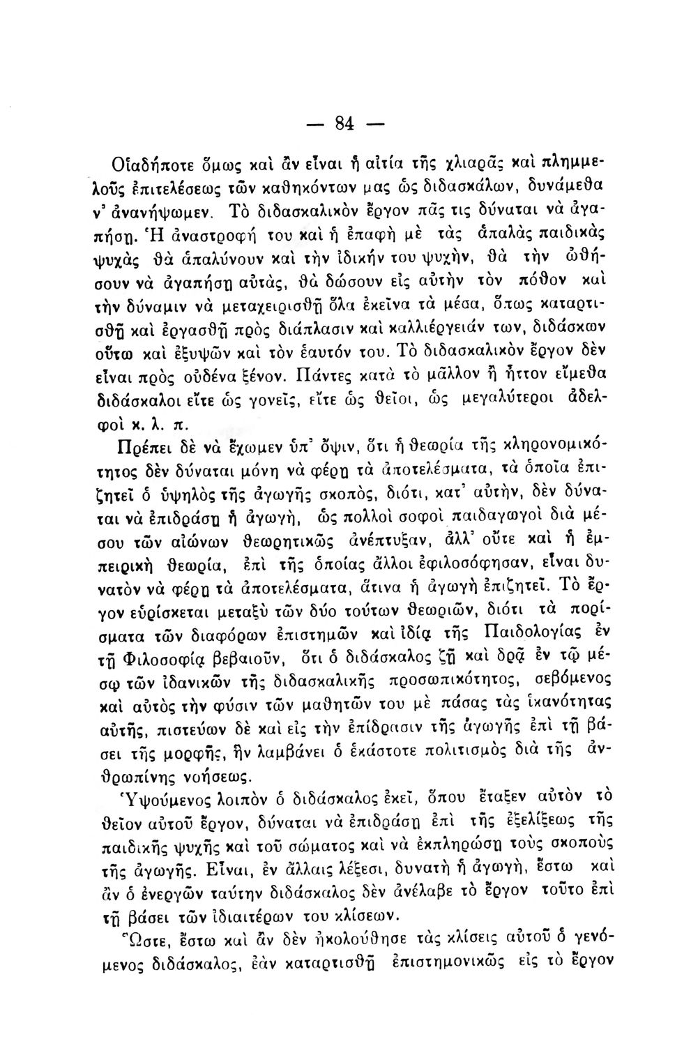 Παρουσίαση περιεχομένου: Παιδαγωγικό βοήθημα που πραγματεύεται παιδαγωγικά θέματα και την εφαρμογή των αρχών του νέου σχολείου. Ο συγγραφέας υπήρξε Υποδιευθυντής στο διδασκαλείο της Τρίπολης.