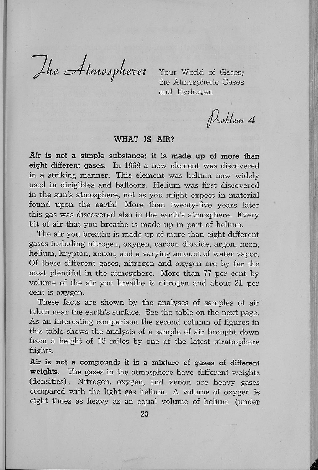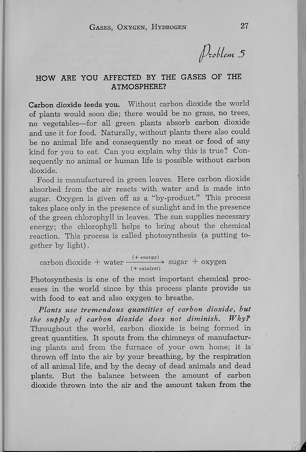 Σχολικό εγχειρίδιο Χημείας Γυμνασίου που εστιάζει στην ατμόσφαιρα, τις οργανικές ενώσεις, στον άνθρακα και το υδρογόνο και την κρισιμότητά τους για τη διαβίωση στη Γη .