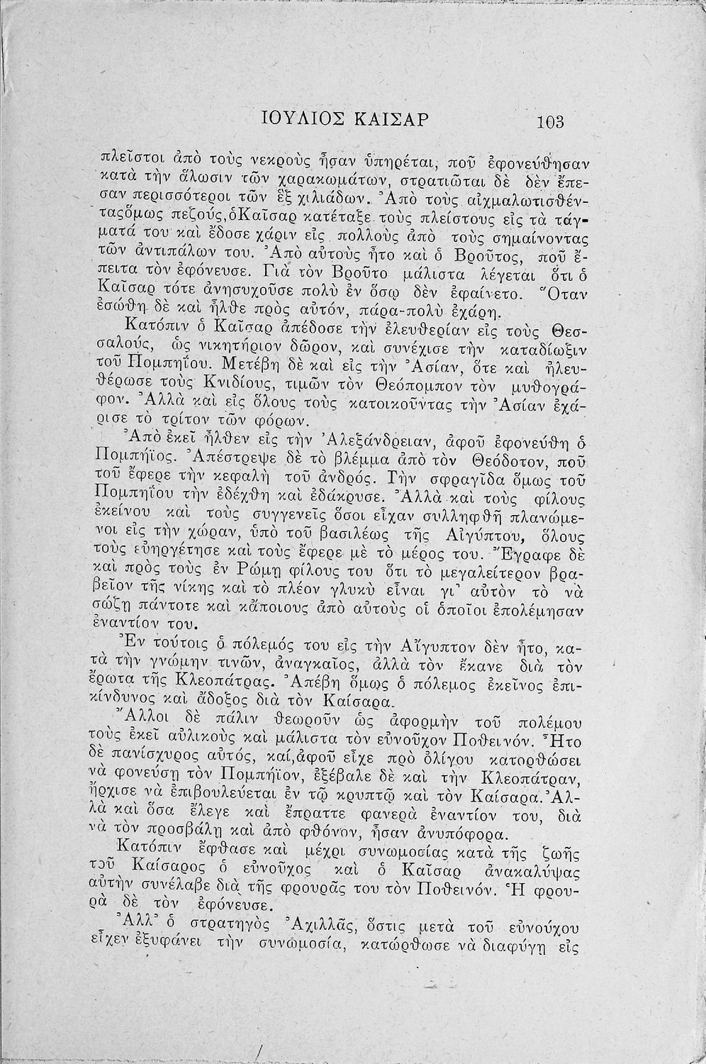 Μαθητικό βοήθημα για το μάθημα των Αρχαίων Ελληνικών. Περιλαμβάνει τις βιογραφίες του Μ. Αλεξάνδρου κι του Ιούλιου Καίσαρα.