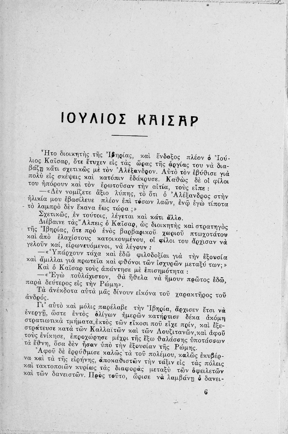 Μαθητικό βοήθημα για το μάθημα των Αρχαίων Ελληνικών. Περιλαμβάνει τις βιογραφίες του Μ. Αλεξάνδρου κι του Ιούλιου Καίσαρα.