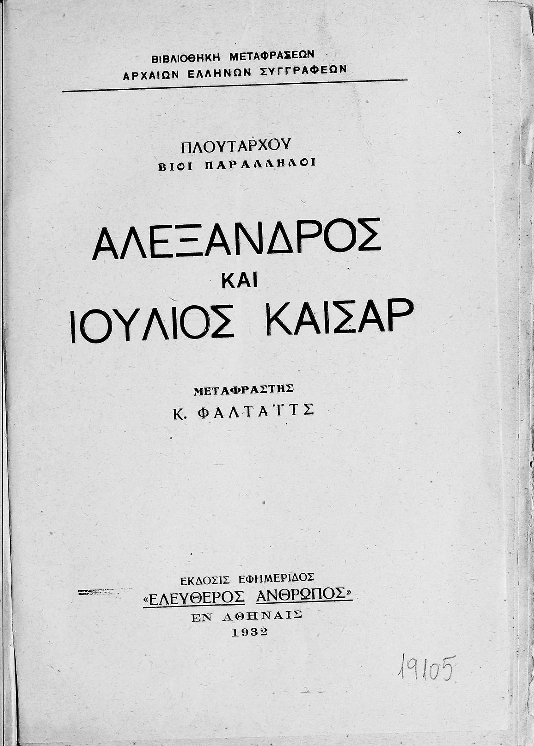 Τίτλος: Πλουτάρχου Βίοι Παράλληλοι. Αλέξανδρος και Ιούλιος Καίσαρα