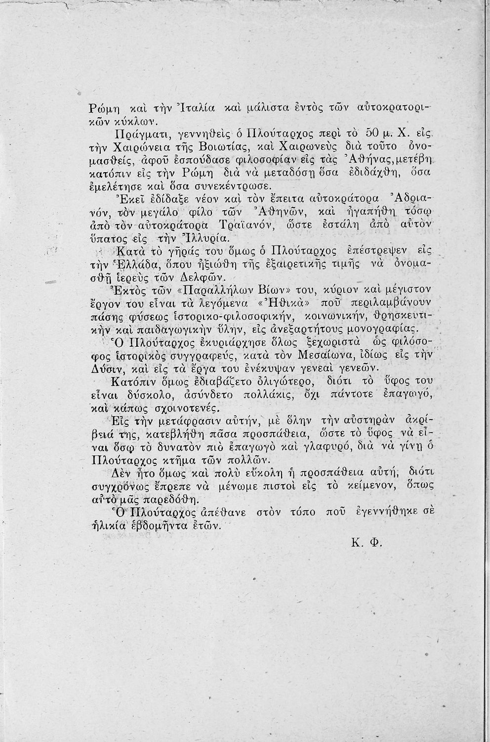 Πλούταρχος, Κ. Φαλταϊτς (μετάφραση)