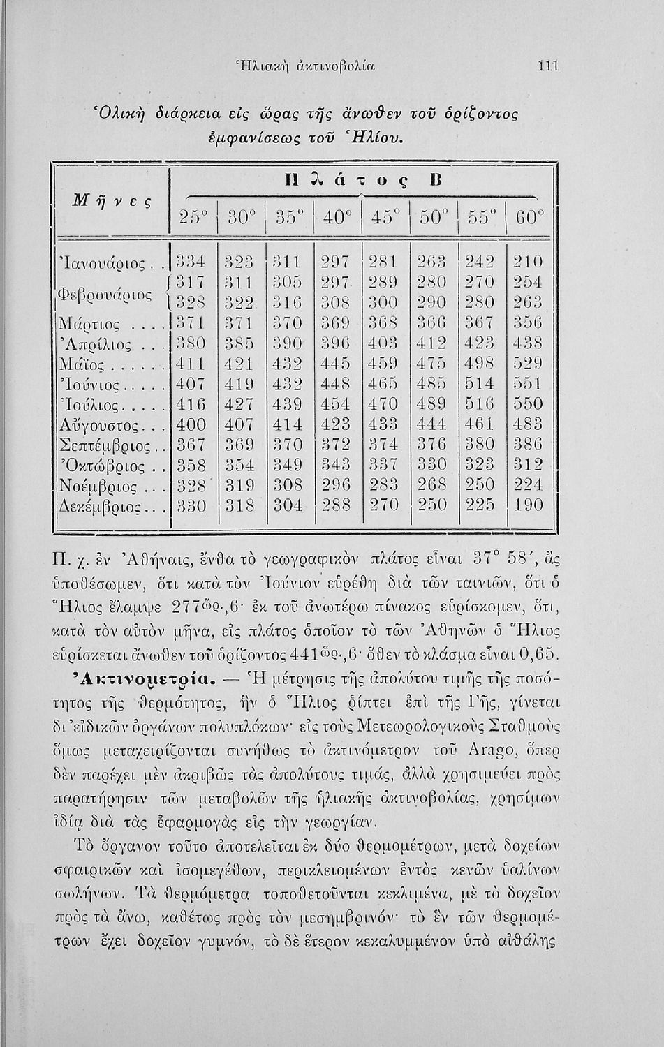 Σύγγραμμα Πρακτικής Μετεωρολογίας που περιλαμβάνει διάφορους μετεωρολογικούς πίνακες. Ο συγγραφέας ήταν διευθυντής του Αστεροσκοπείου και καθηγητής στο Εθνικό Πανεπιστήμιο.