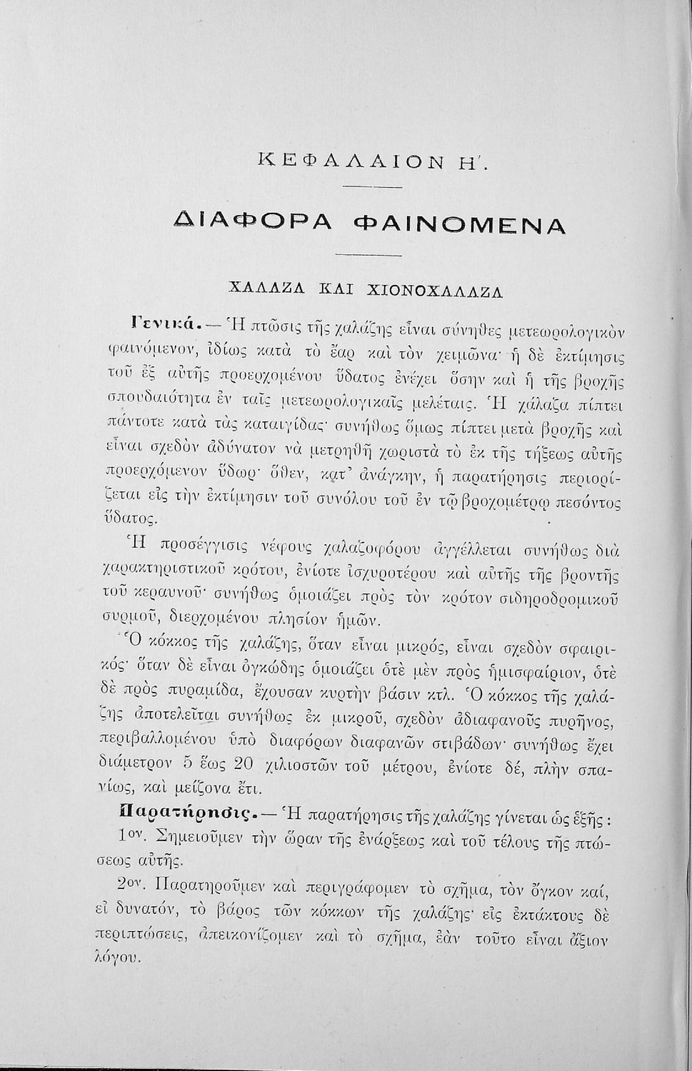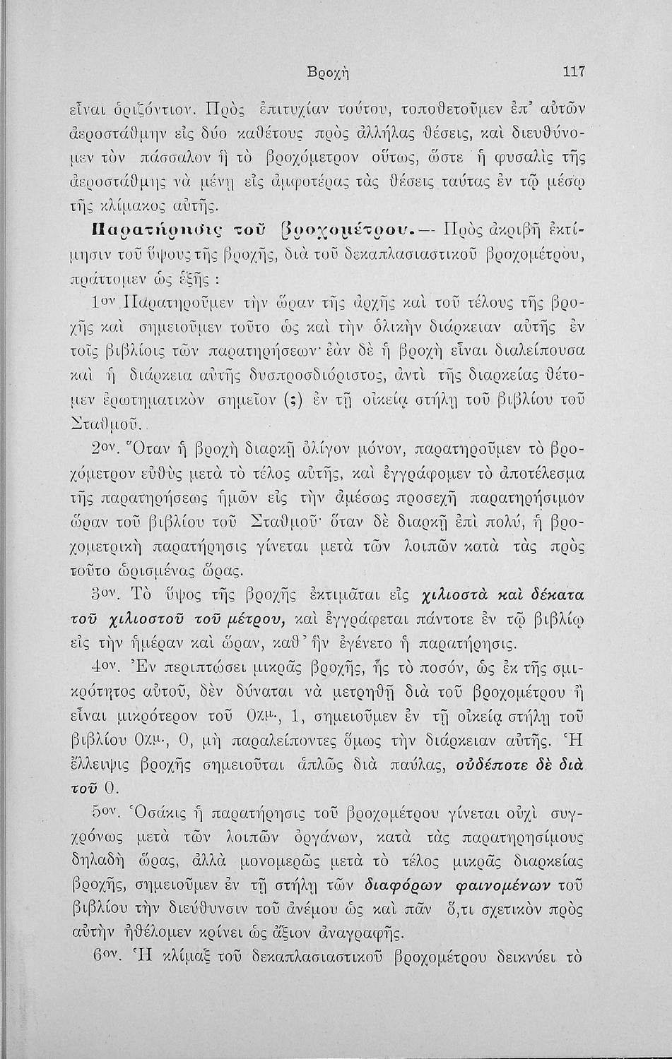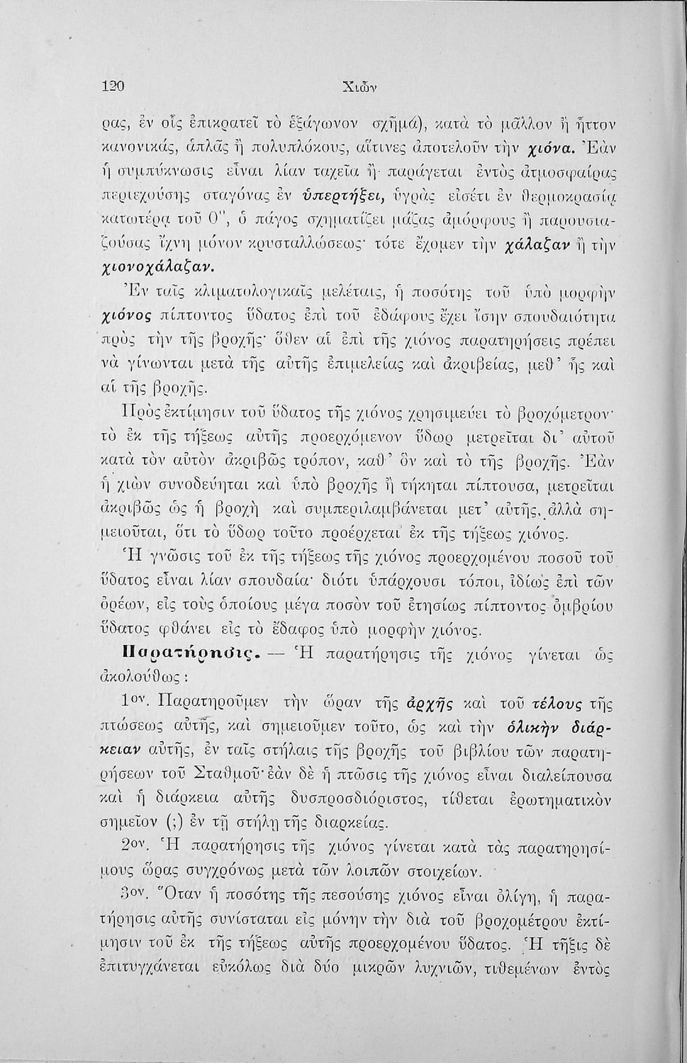 Σύγγραμμα Πρακτικής Μετεωρολογίας που περιλαμβάνει διάφορους μετεωρολογικούς πίνακες. Ο συγγραφέας ήταν διευθυντής του Αστεροσκοπείου και καθηγητής στο Εθνικό Πανεπιστήμιο.