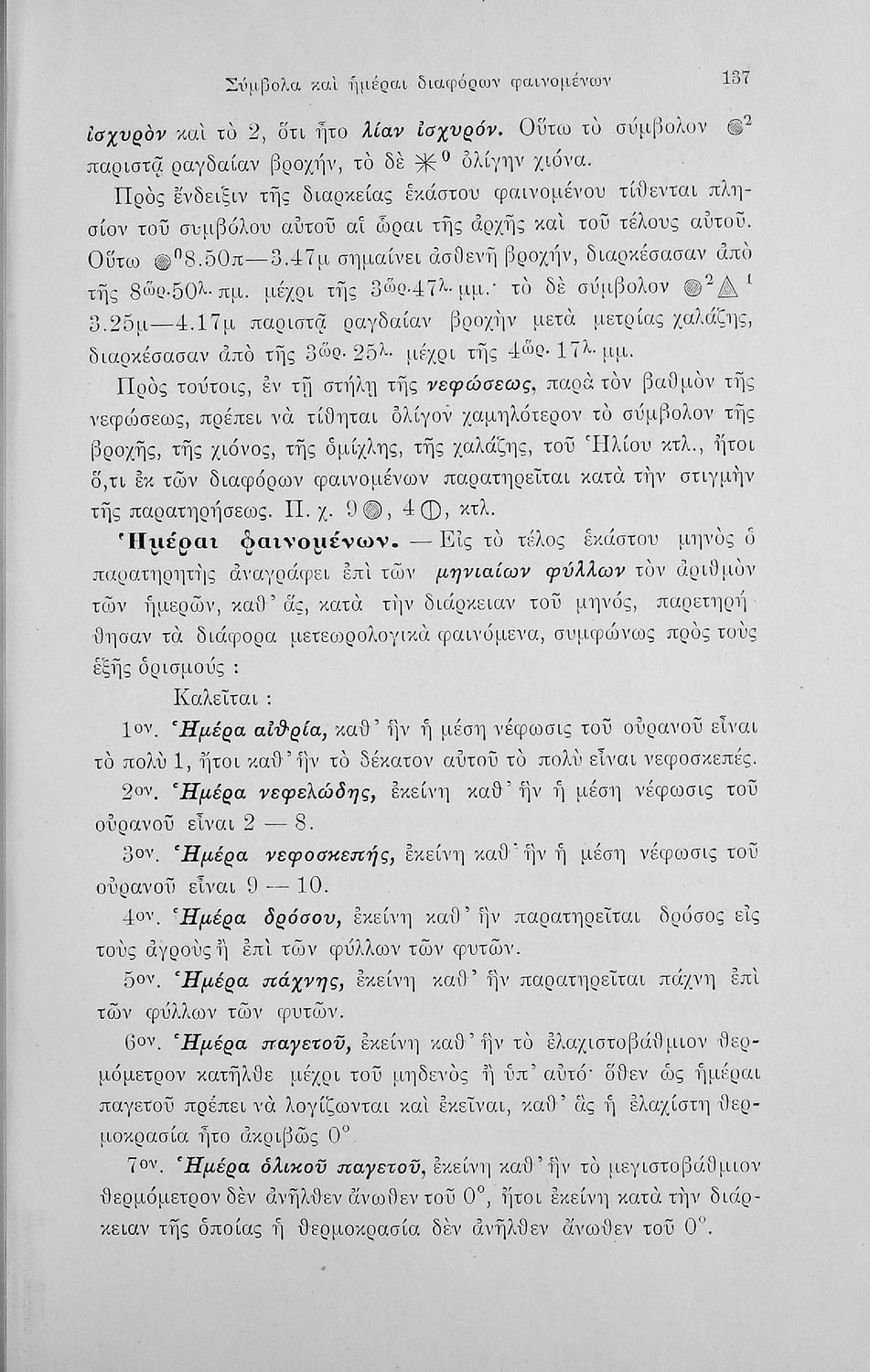 Σύγγραμμα Πρακτικής Μετεωρολογίας που περιλαμβάνει διάφορους μετεωρολογικούς πίνακες. Ο συγγραφέας ήταν διευθυντής του Αστεροσκοπείου και καθηγητής στο Εθνικό Πανεπιστήμιο.