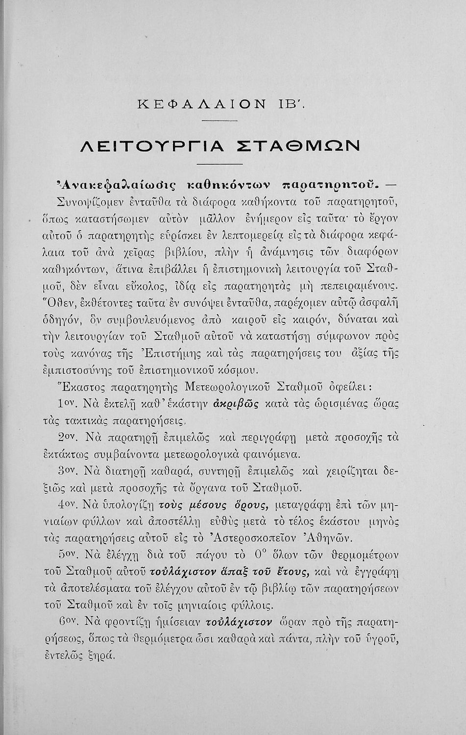 Παρουσίαση περιεχομένου: Σύγγραμμα Πρακτικής Μετεωρολογίας που περιλαμβάνει διάφορους μετεωρολογικούς πίνακες. Ο συγγραφέας ήταν διευθυντής του Αστεροσκοπείου και καθηγητής στο Εθνικό Πανεπιστήμιο.