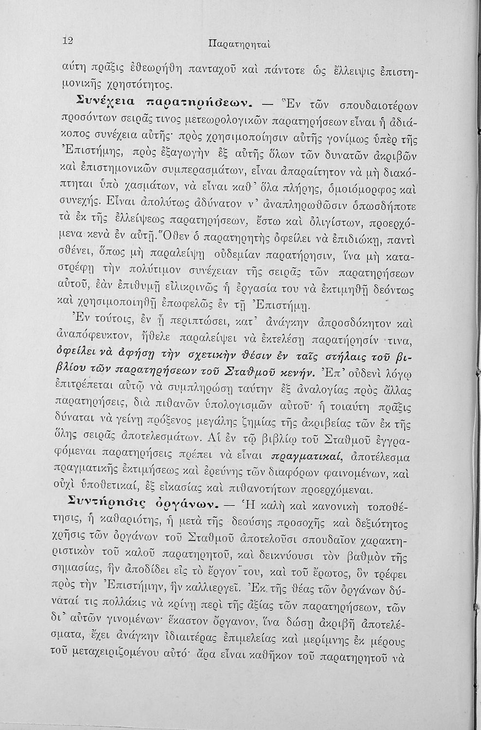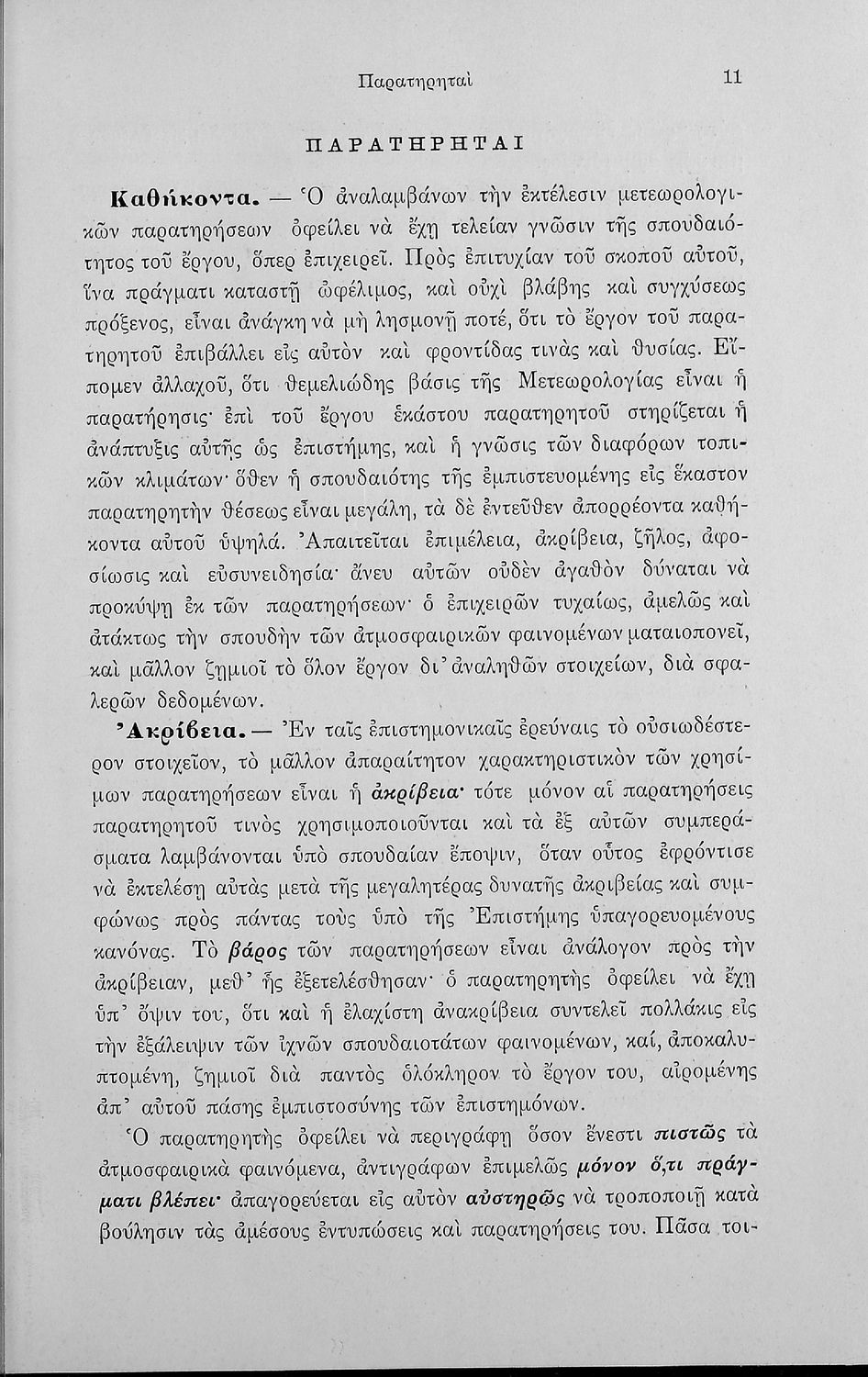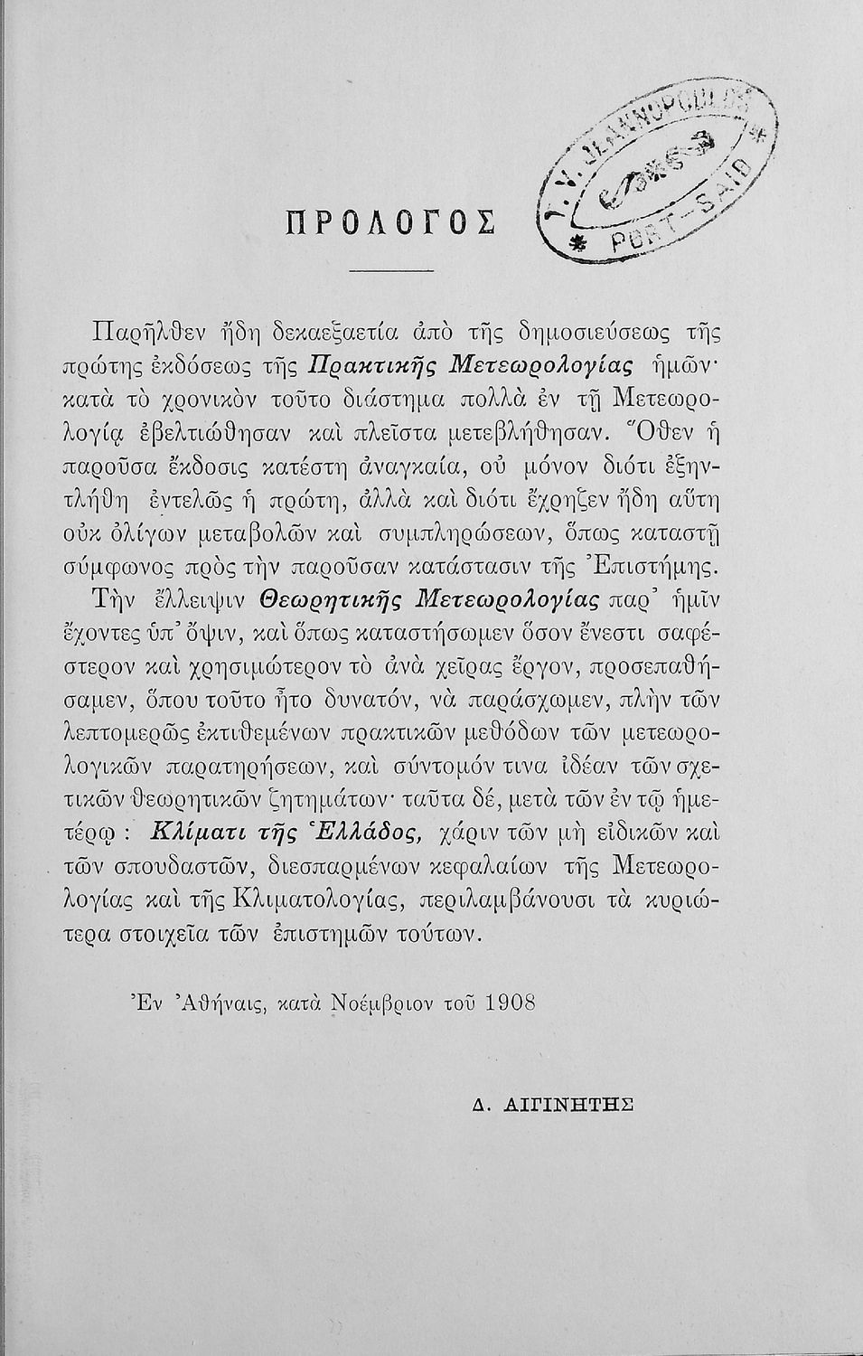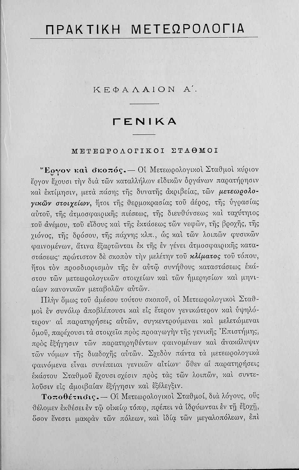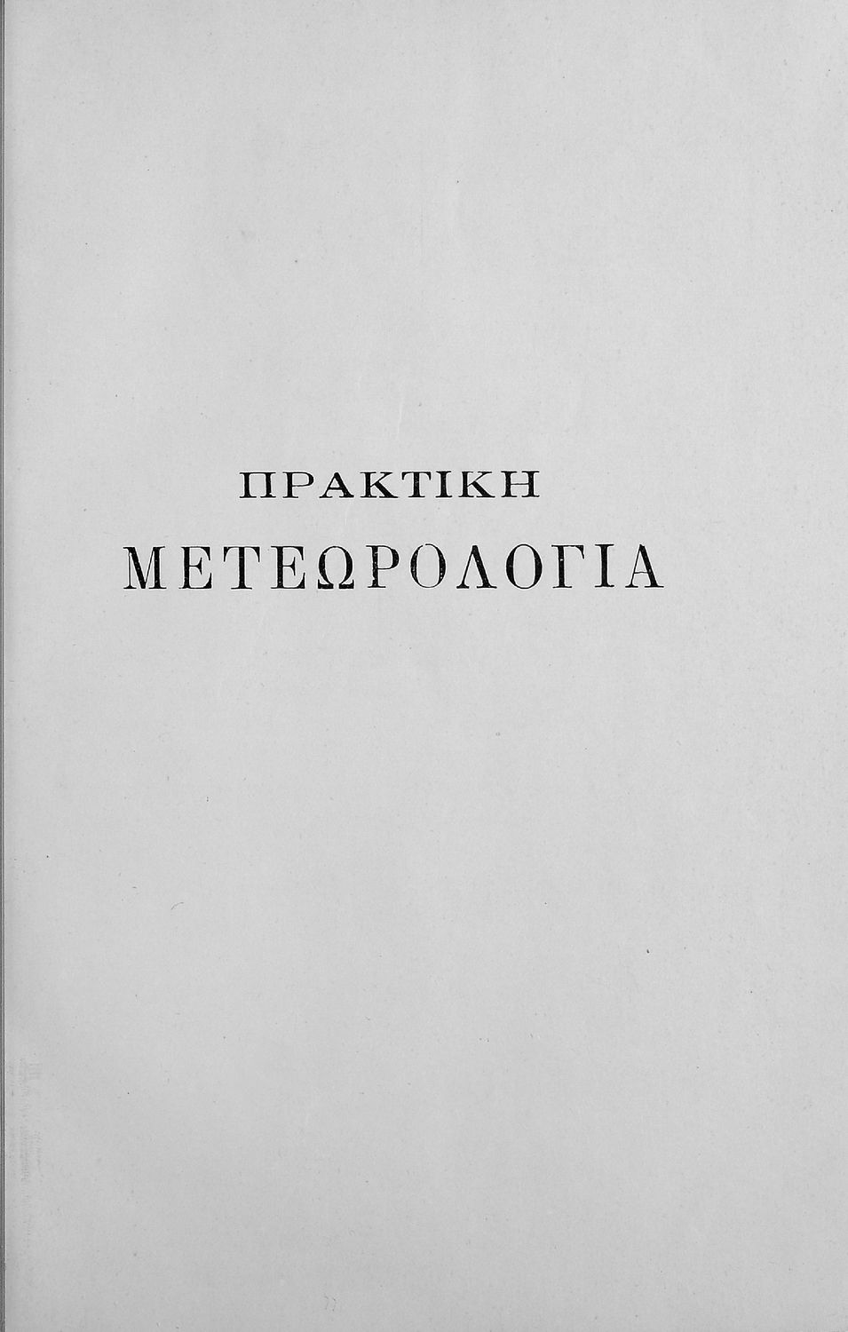 Παρουσίαση περιεχομένου: Σύγγραμμα Πρακτικής Μετεωρολογίας που περιλαμβάνει διάφορους μετεωρολογικούς πίνακες. Ο συγγραφέας ήταν διευθυντής του Αστεροσκοπείου και καθηγητής στο Εθνικό Πανεπιστήμιο.