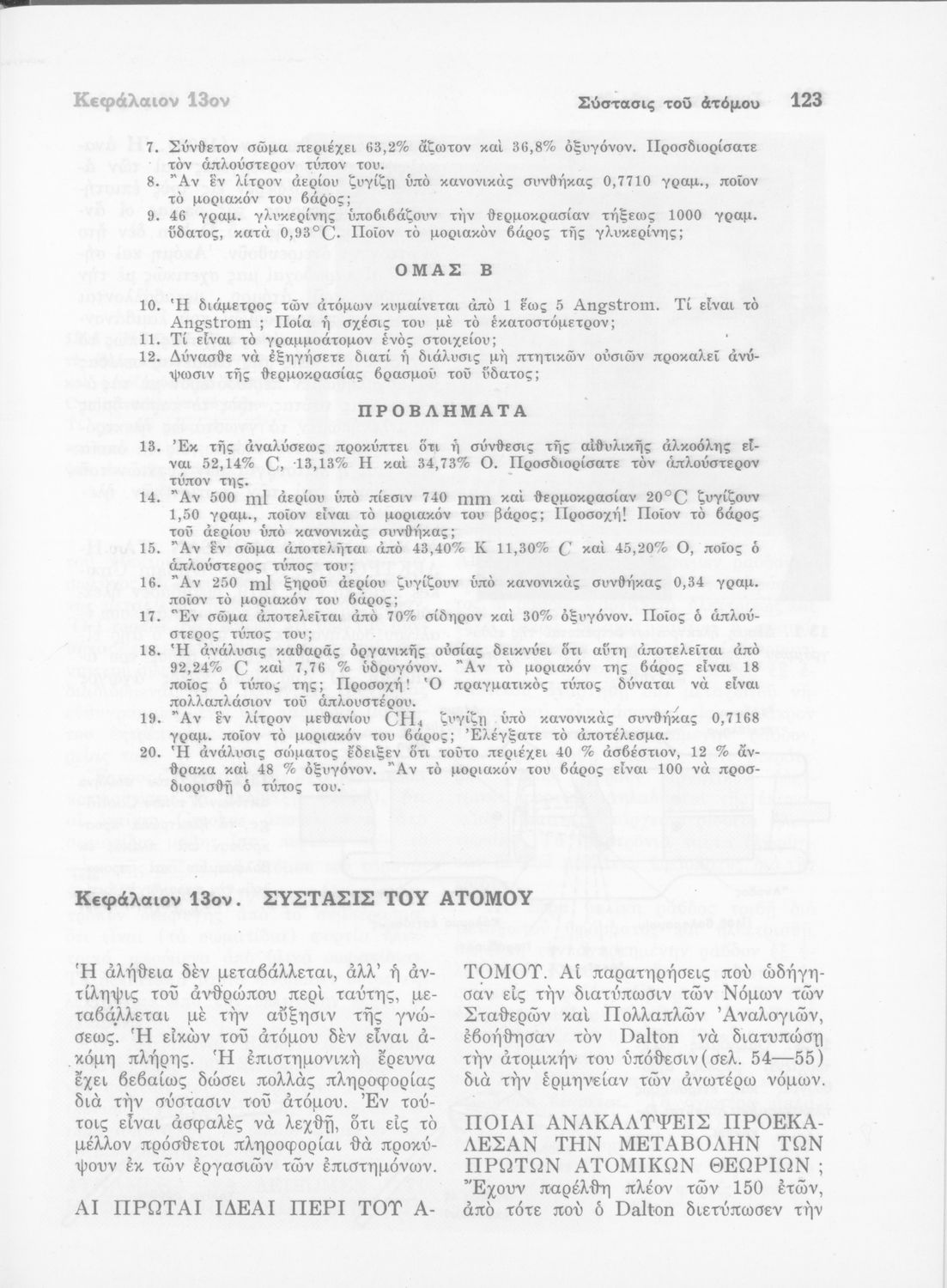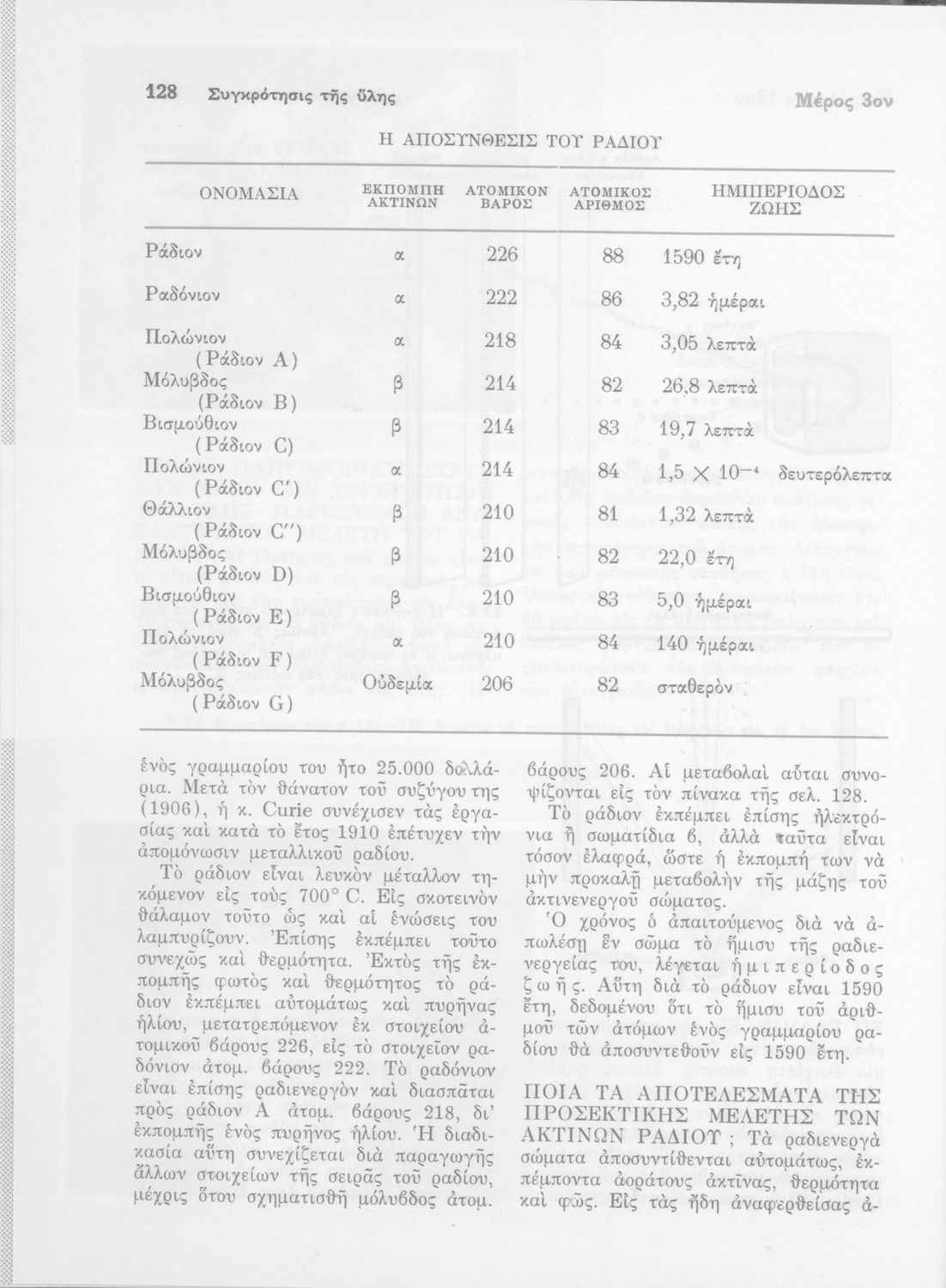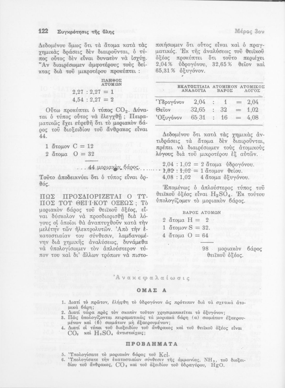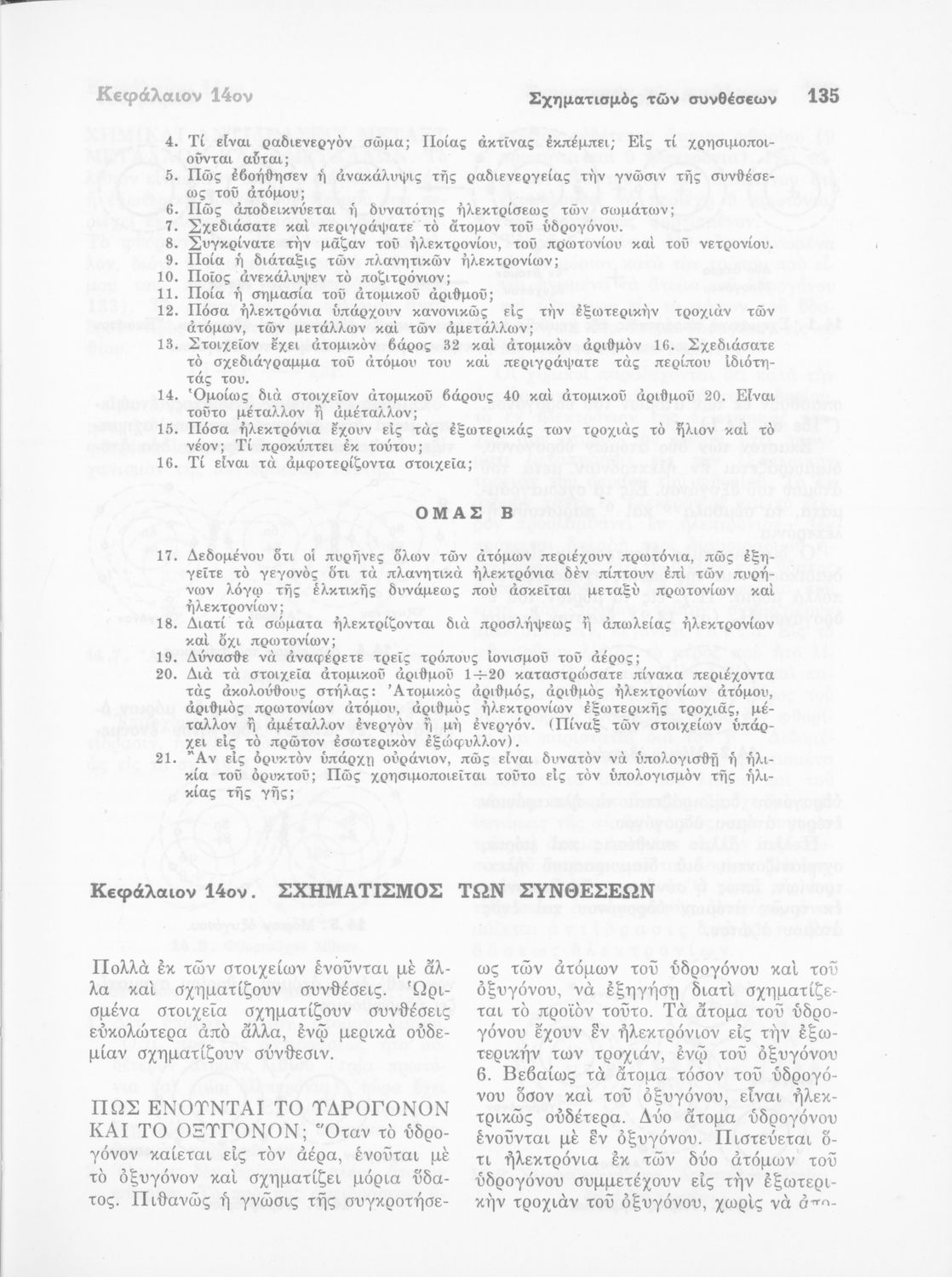 Μαθητικό βοήθημα που απευθύνεται σε μαθητές του Γυμνασίου με σκοπό τη περιγραφή και συγκρότηση της ύλης. Αναφέρεται στη θεωρία των διαλυμάτων, στις ενώσεις του αζώτου, στη θεωρία που διέπει τα οξέα, τις βάσεις, τα άλατα. Το βοήθημα ολοκληρώνεται με τη περιγραφή διάφορων μετάλλων.