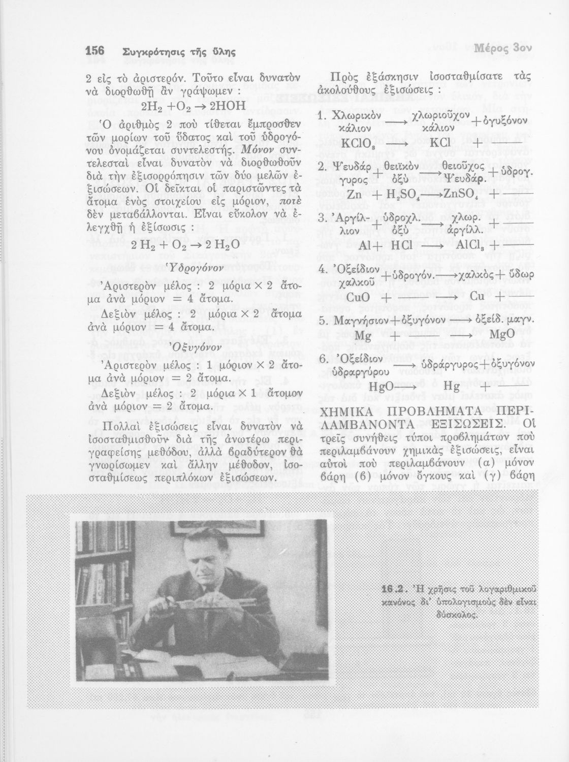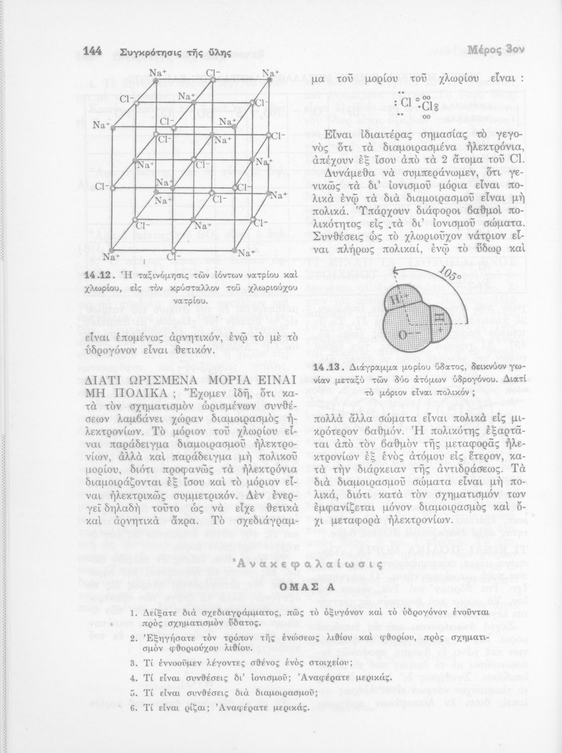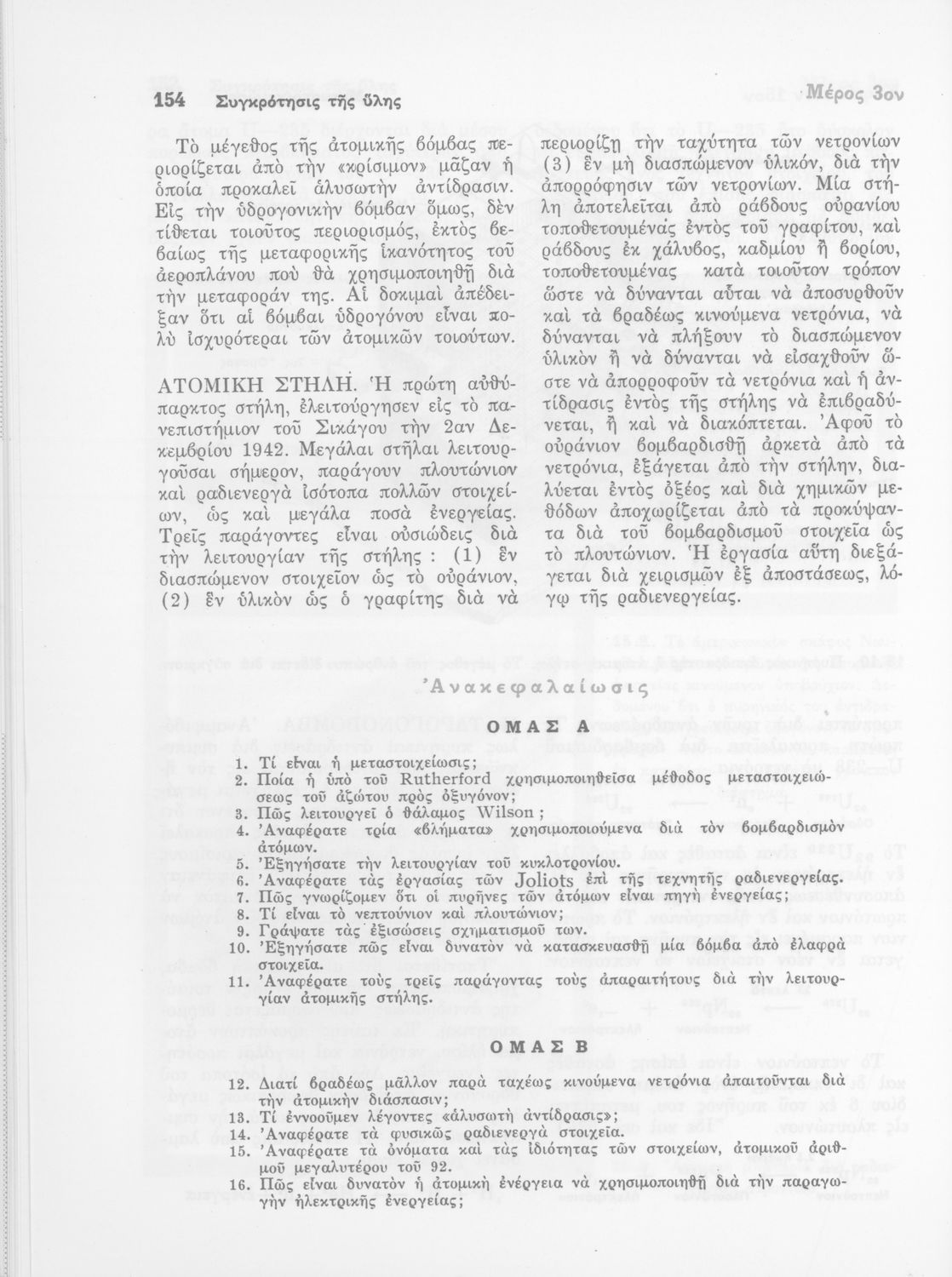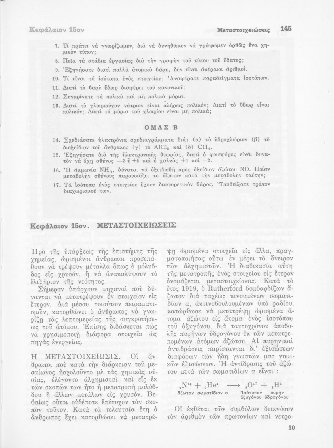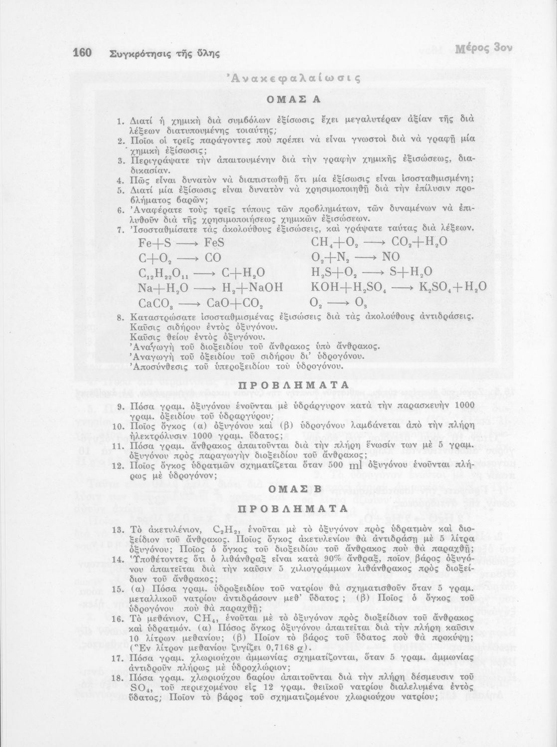 Μαθητικό βοήθημα που απευθύνεται σε μαθητές του Γυμνασίου με σκοπό τη περιγραφή και συγκρότηση της ύλης. Αναφέρεται στη θεωρία των διαλυμάτων, στις ενώσεις του αζώτου, στη θεωρία που διέπει τα οξέα, τις βάσεις, τα άλατα. Το βοήθημα ολοκληρώνεται με τη περιγραφή διάφορων μετάλλων.