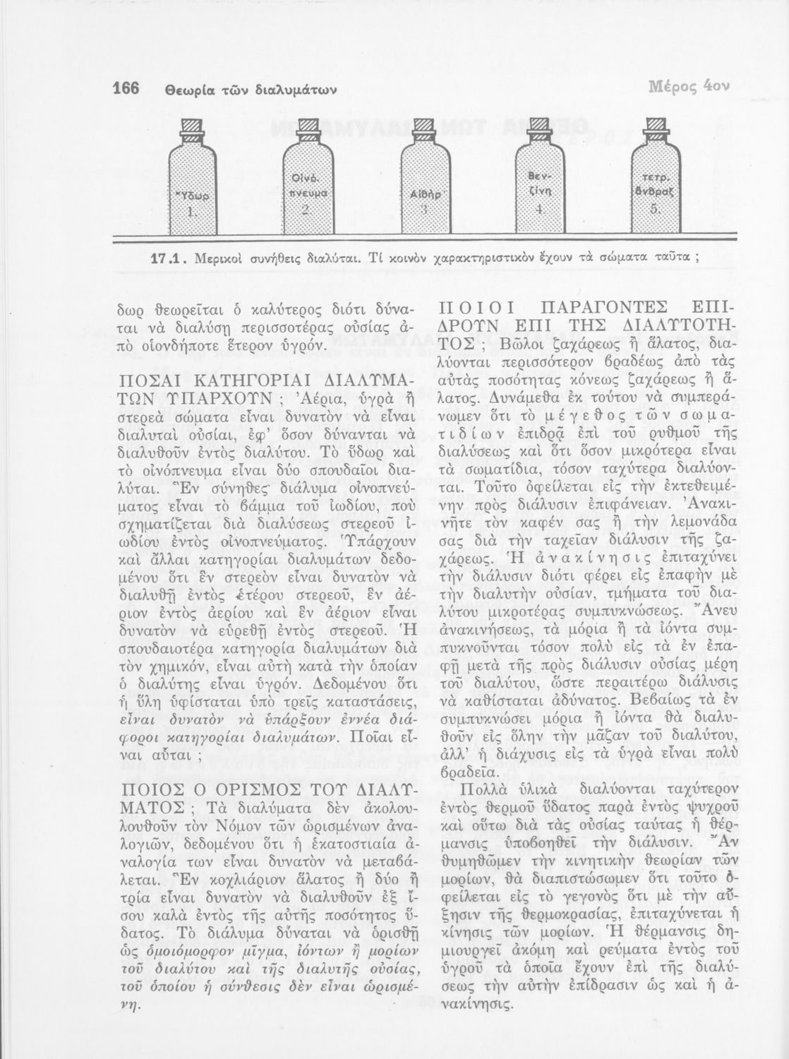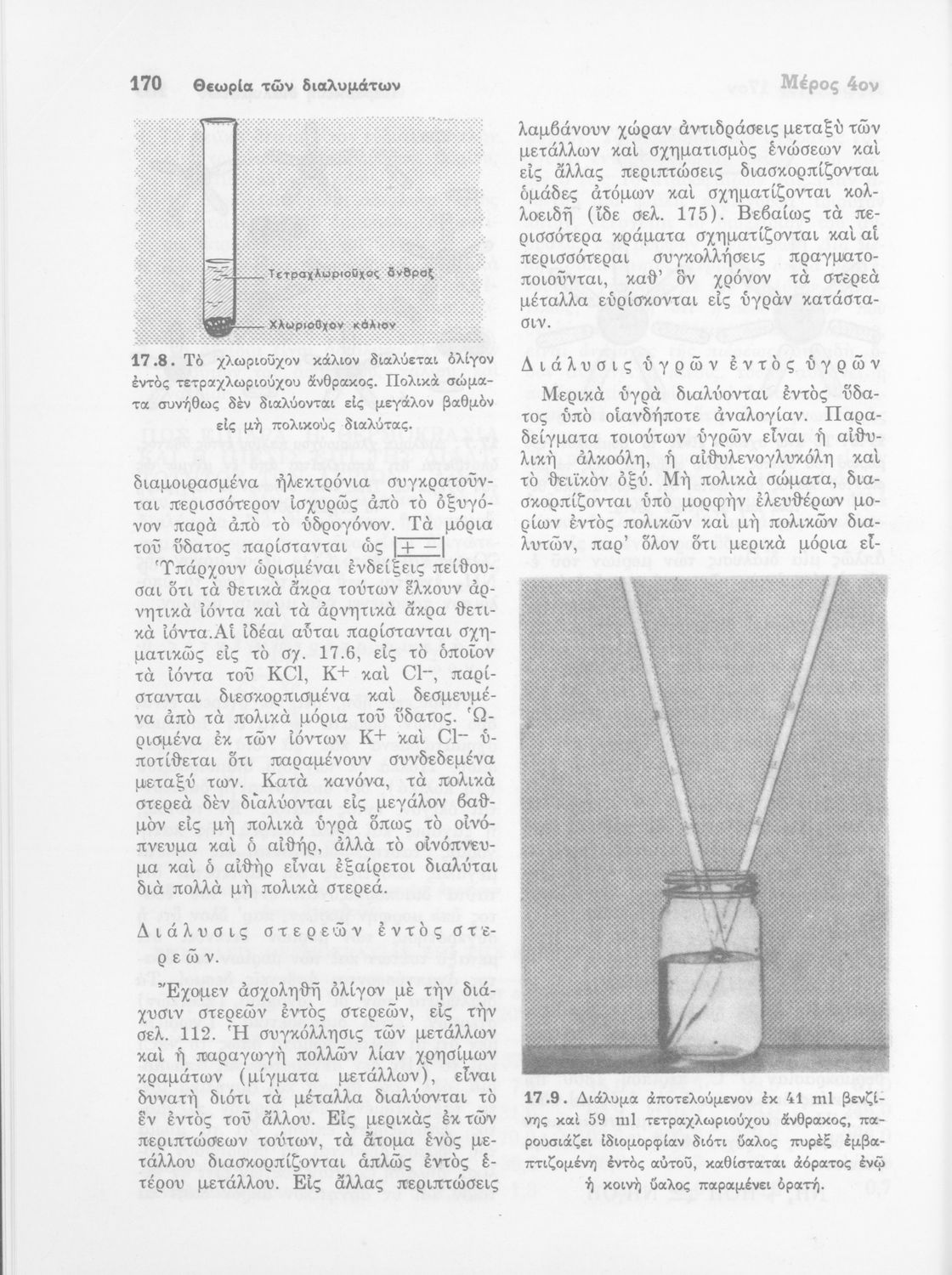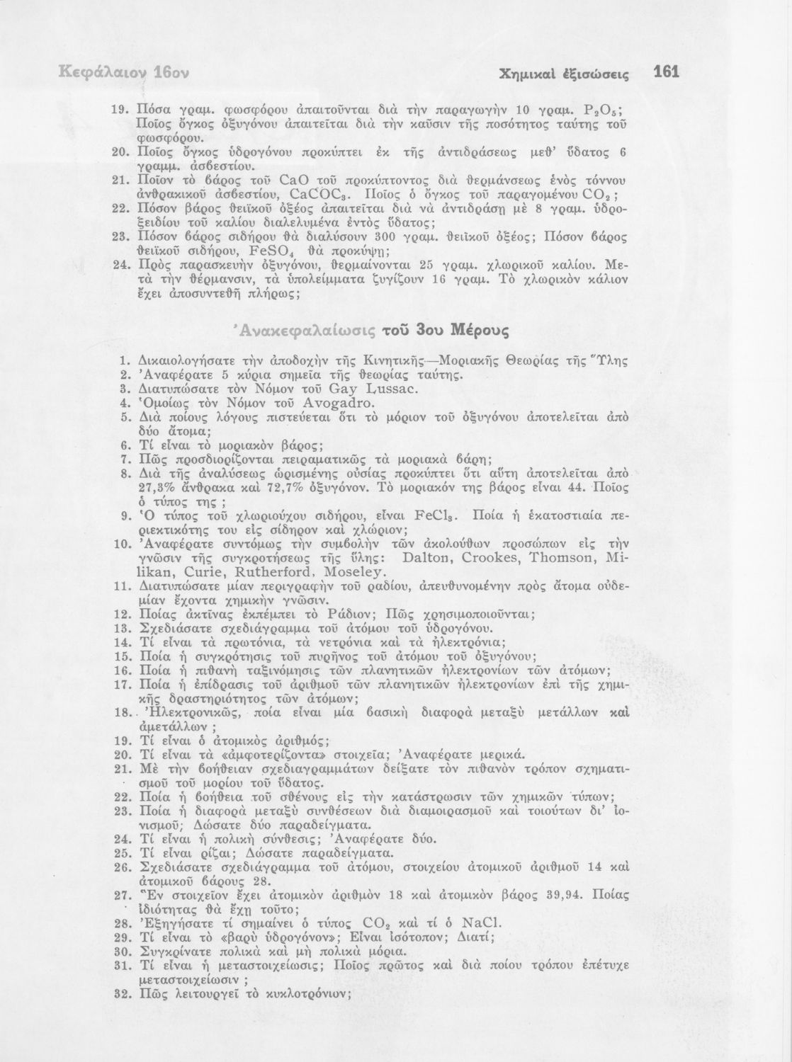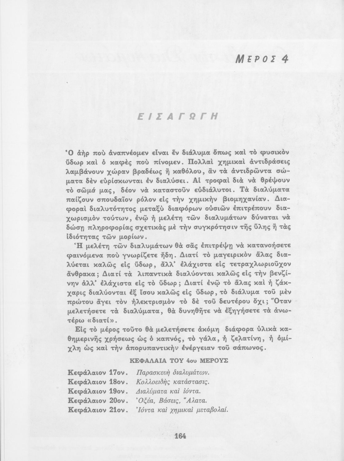 Μαθητικό βοήθημα που απευθύνεται σε μαθητές του Γυμνασίου με σκοπό τη περιγραφή και συγκρότηση της ύλης. Αναφέρεται στη θεωρία των διαλυμάτων, στις ενώσεις του αζώτου, στη θεωρία που διέπει τα οξέα, τις βάσεις, τα άλατα. Το βοήθημα ολοκληρώνεται με τη περιγραφή διάφορων μετάλλων.