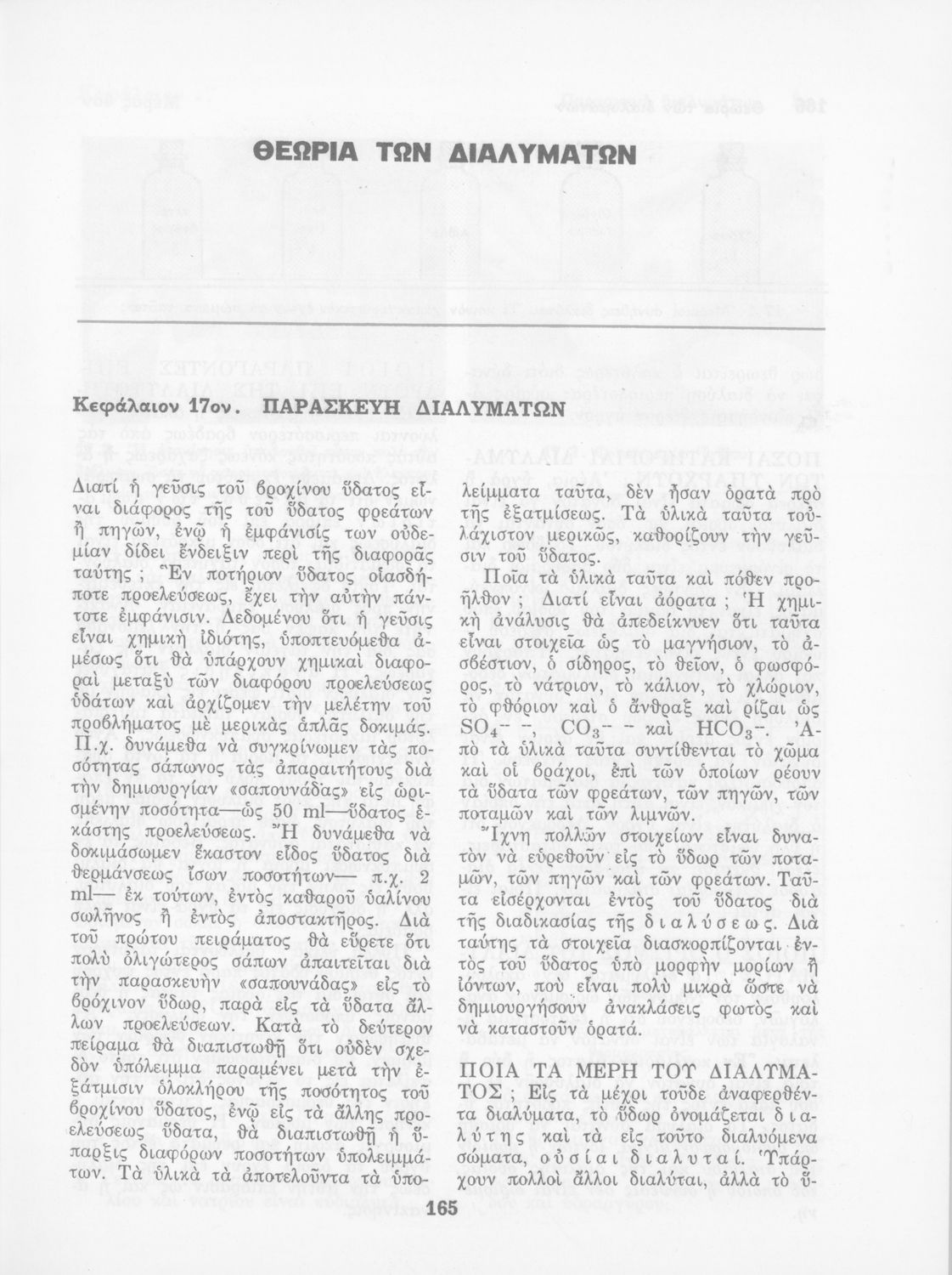 Παρουσίαση περιεχομένου: Μαθητικό βοήθημα που απευθύνεται σε μαθητές του Γυμνασίου με σκοπό τη περιγραφή και συγκρότηση της ύλης. Αναφέρεται στη θεωρία των διαλυμάτων, στις ενώσεις του αζώτου, στη θεωρία που διέπει τα οξέα, τις βάσεις, τα άλατα. Το βοήθημα ολοκληρώνεται με τη περιγραφή διάφορων μετάλλων.