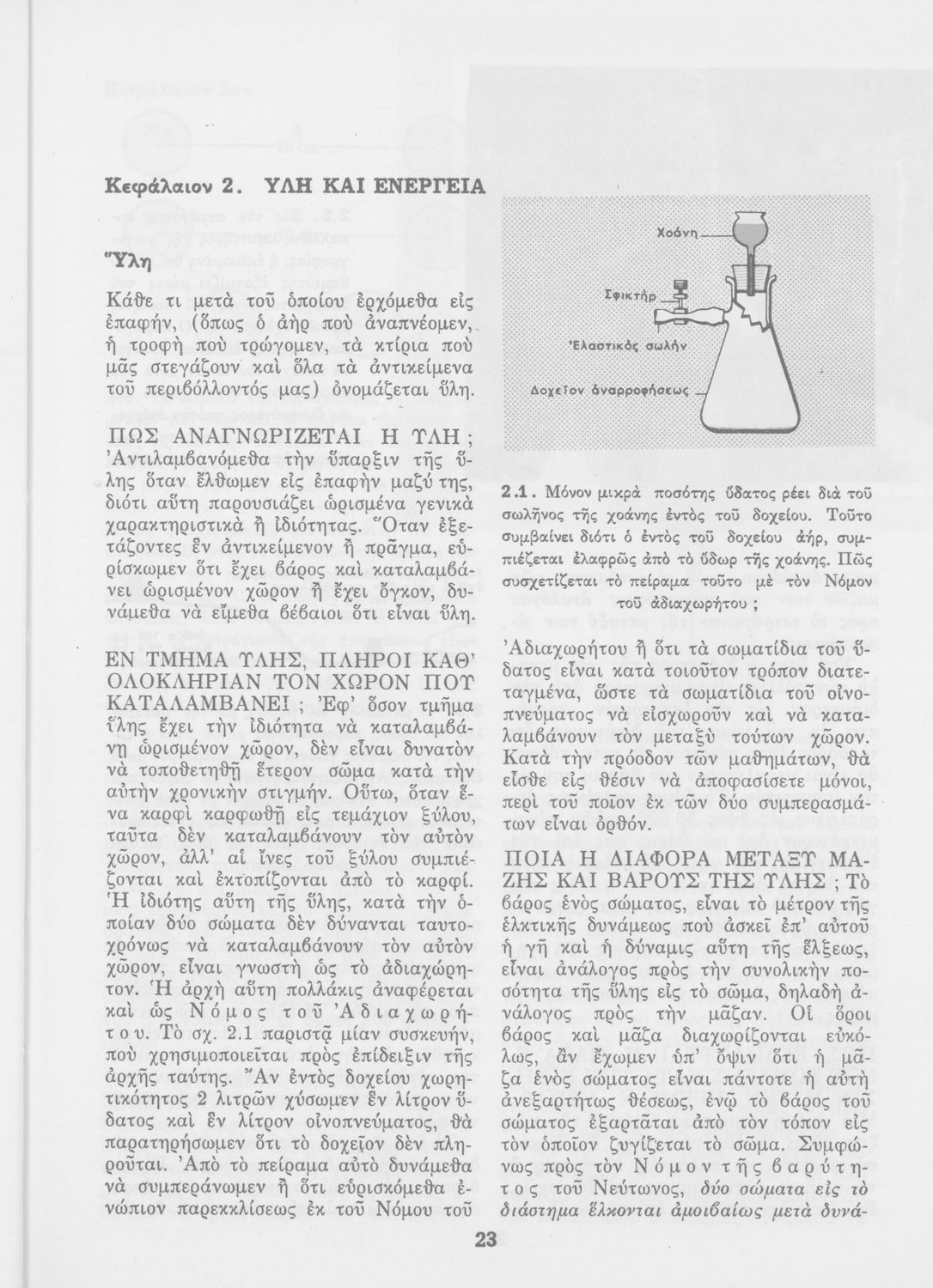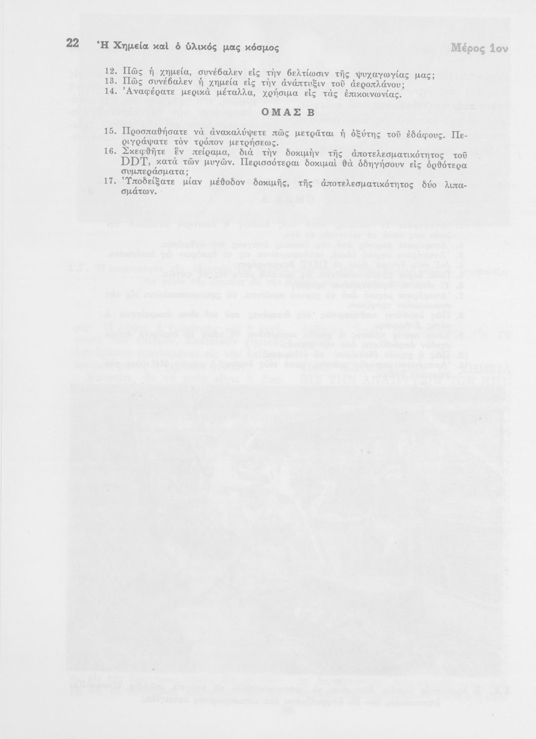 Μαθητικό βοήθημα που απευθύνεται σε μαθητές του Γυμνασίου με σκοπό τη περιγραφή και συγκρότηση της ύλης. Αναφέρεται στη θεωρία των διαλυμάτων, στις ενώσεις του αζώτου, στη θεωρία που διέπει τα οξέα, τις βάσεις, τα άλατα. Το βοήθημα ολοκληρώνεται με τη περιγραφή διάφορων μετάλλων.