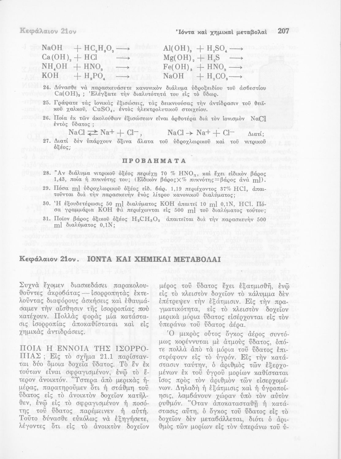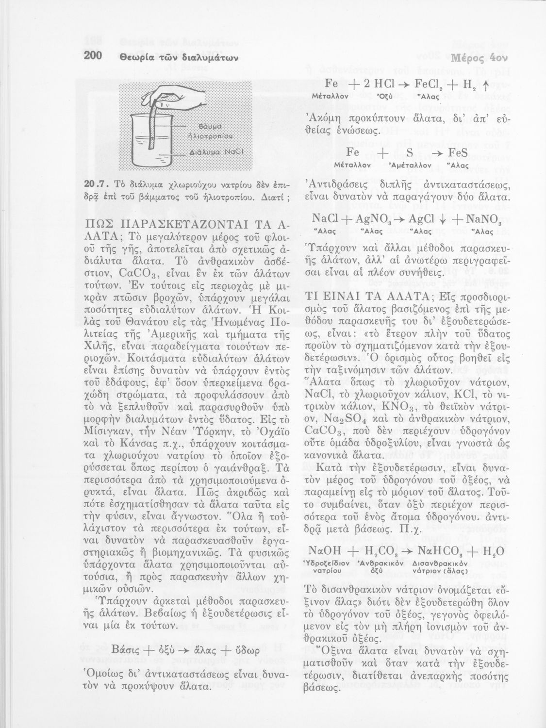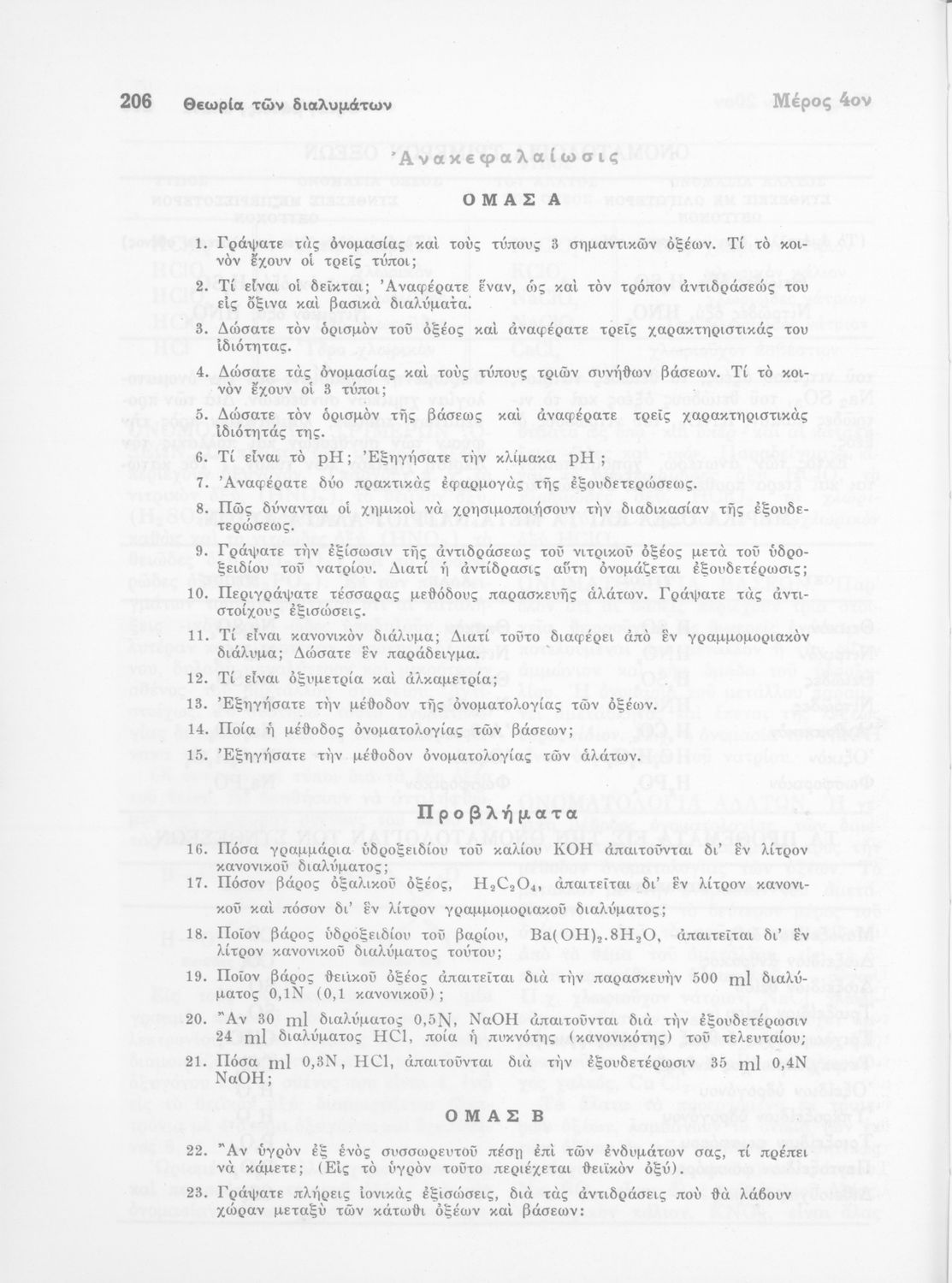 Μαθητικό βοήθημα που απευθύνεται σε μαθητές του Γυμνασίου με σκοπό τη περιγραφή και συγκρότηση της ύλης. Αναφέρεται στη θεωρία των διαλυμάτων, στις ενώσεις του αζώτου, στη θεωρία που διέπει τα οξέα, τις βάσεις, τα άλατα. Το βοήθημα ολοκληρώνεται με τη περιγραφή διάφορων μετάλλων.