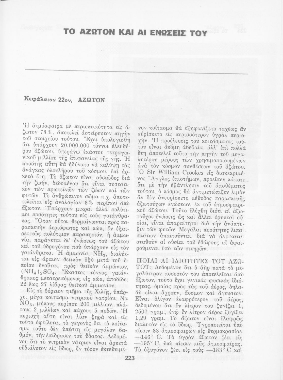 Μαθητικό βοήθημα που απευθύνεται σε μαθητές του Γυμνασίου με σκοπό τη περιγραφή και συγκρότηση της ύλης. Αναφέρεται στη θεωρία των διαλυμάτων, στις ενώσεις του αζώτου, στη θεωρία που διέπει τα οξέα, τις βάσεις, τα άλατα. Το βοήθημα ολοκληρώνεται με τη περιγραφή διάφορων μετάλλων.