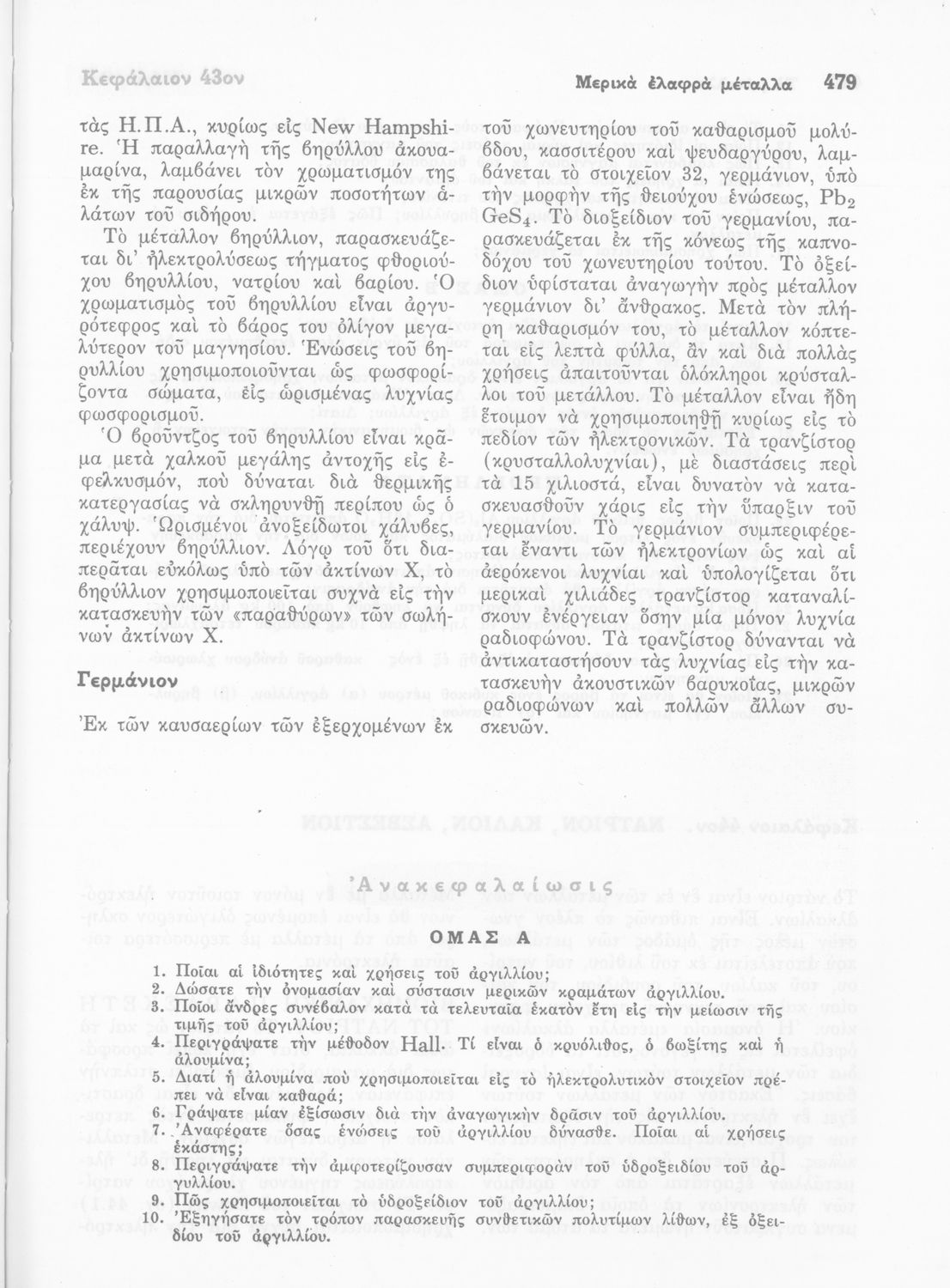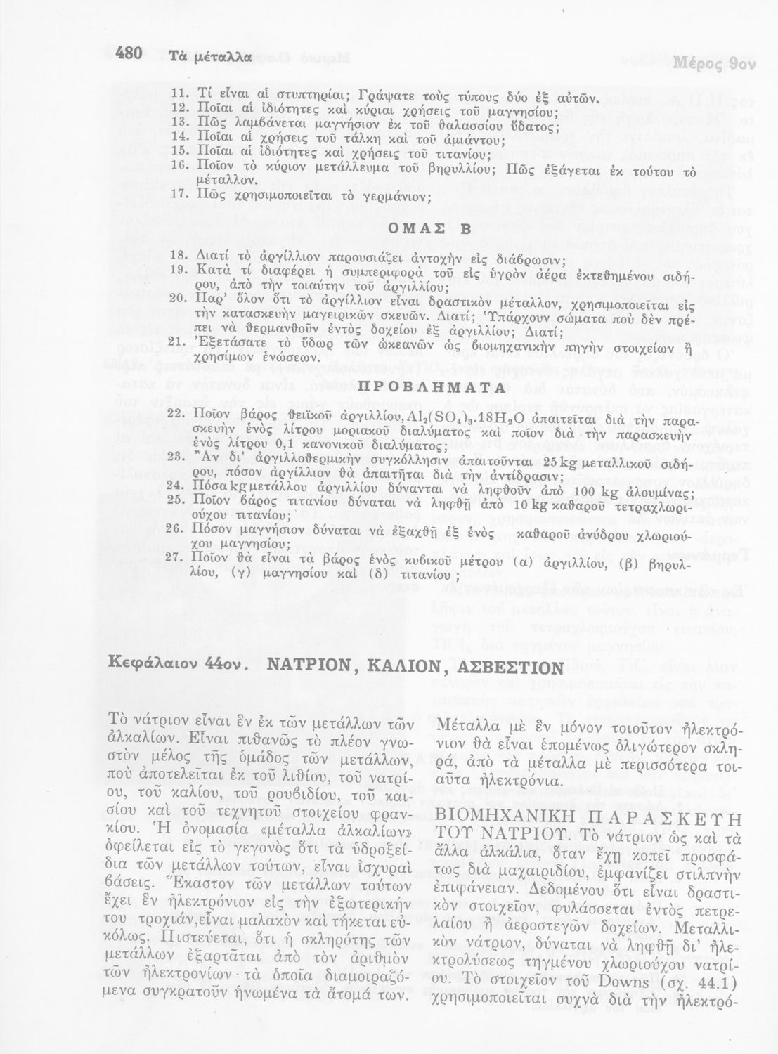 Μαθητικό βοήθημα που απευθύνεται σε μαθητές του Γυμνασίου με σκοπό τη περιγραφή και συγκρότηση της ύλης. Αναφέρεται στη θεωρία των διαλυμάτων, στις ενώσεις του αζώτου, στη θεωρία που διέπει τα οξέα, τις βάσεις, τα άλατα. Το βοήθημα ολοκληρώνεται με τη περιγραφή διάφορων μετάλλων.