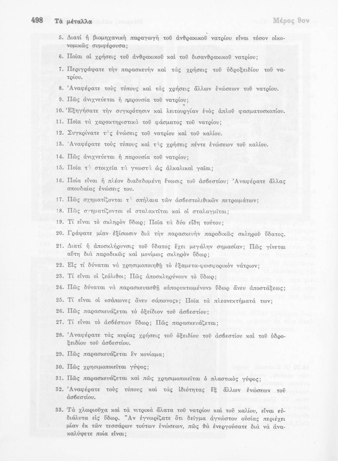 Μαθητικό βοήθημα που απευθύνεται σε μαθητές του Γυμνασίου με σκοπό τη περιγραφή και συγκρότηση της ύλης. Αναφέρεται στη θεωρία των διαλυμάτων, στις ενώσεις του αζώτου, στη θεωρία που διέπει τα οξέα, τις βάσεις, τα άλατα. Το βοήθημα ολοκληρώνεται με τη περιγραφή διάφορων μετάλλων.