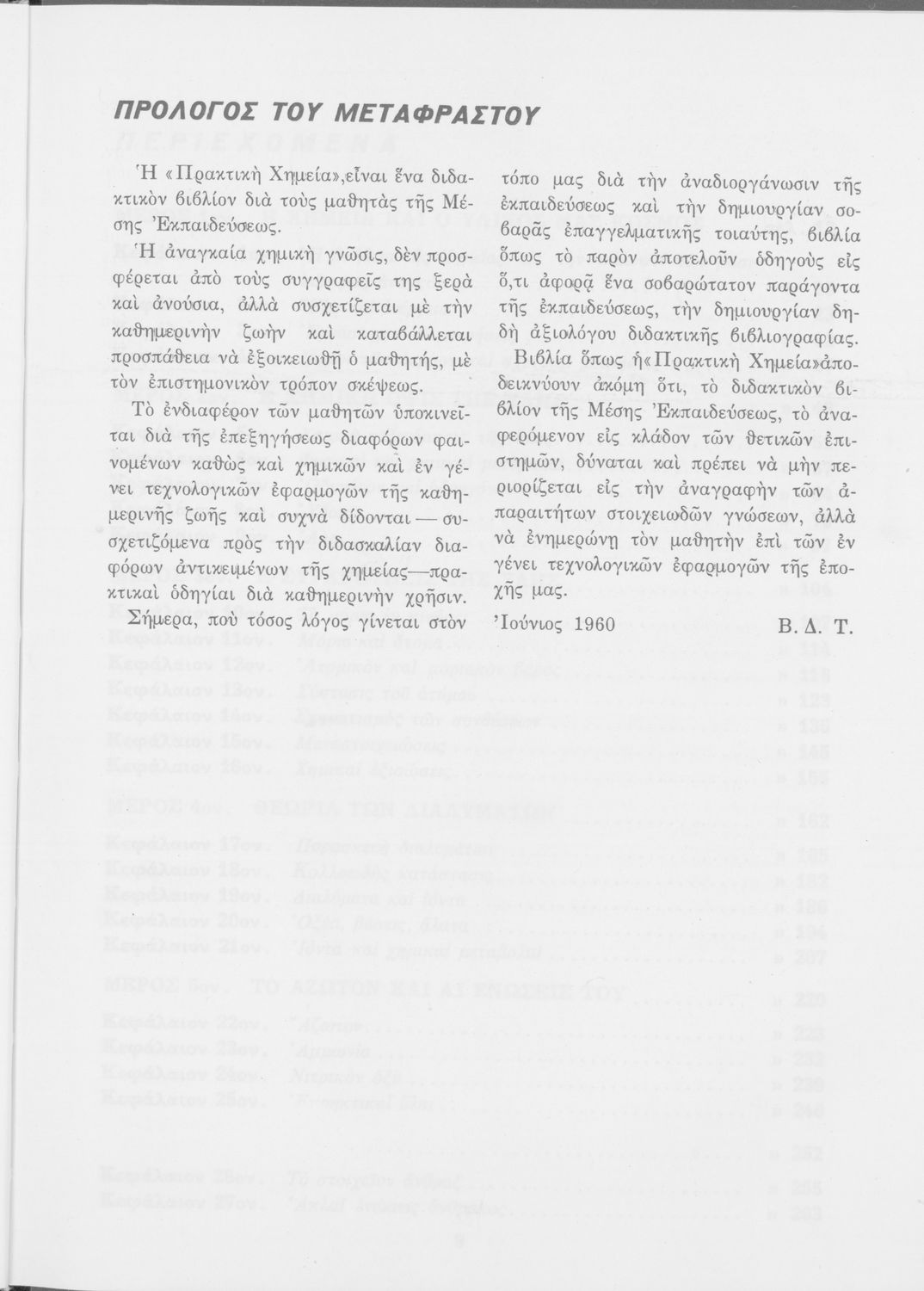 Παρουσίαση περιεχομένου: Μαθητικό βοήθημα που απευθύνεται σε μαθητές του Γυμνασίου με σκοπό τη περιγραφή και συγκρότηση της ύλης. Αναφέρεται στη θεωρία των διαλυμάτων, στις ενώσεις του αζώτου, στη θεωρία που διέπει τα οξέα, τις βάσεις, τα άλατα. Το βοήθημα ολοκληρώνεται με τη περιγραφή διάφορων μετάλλων.