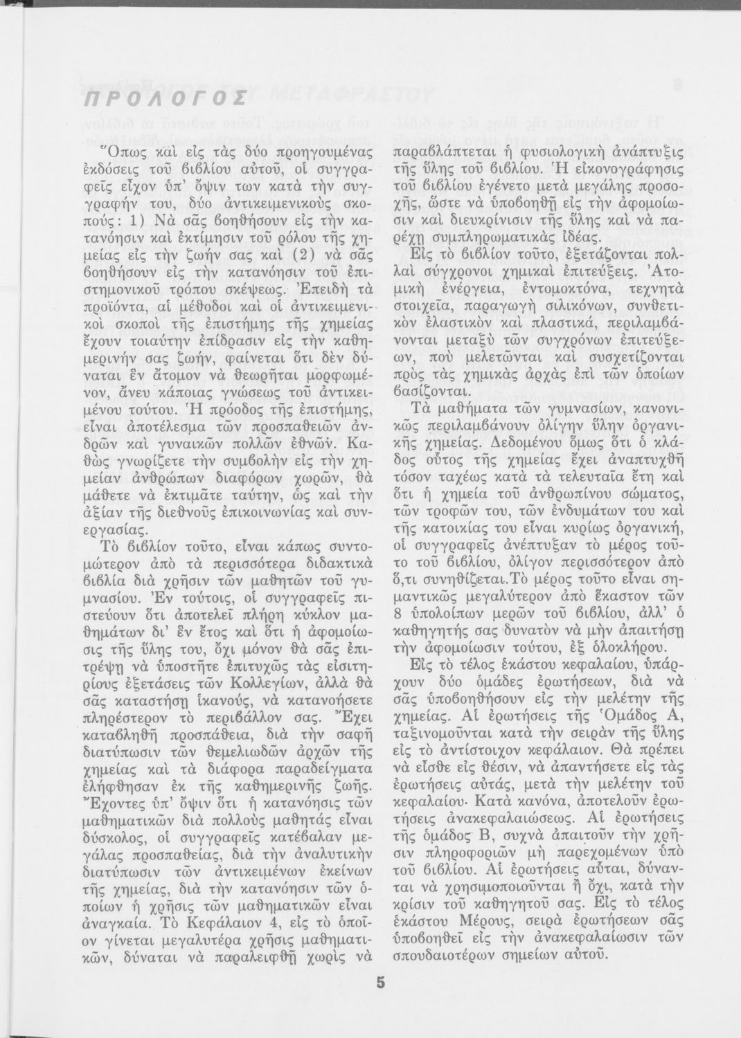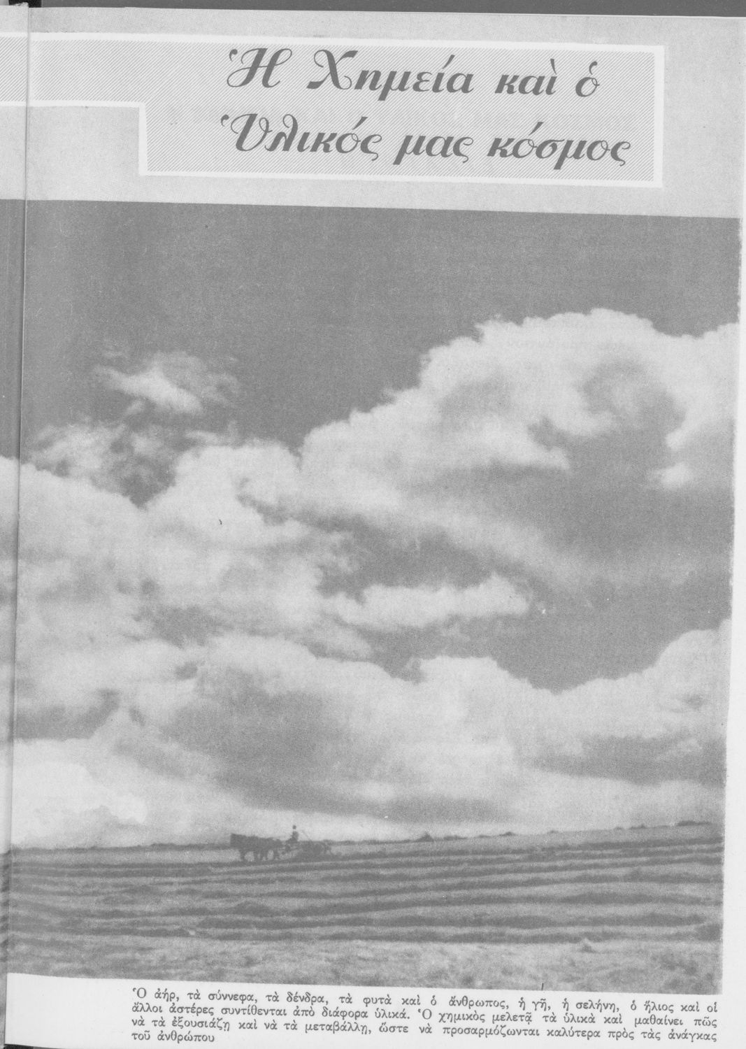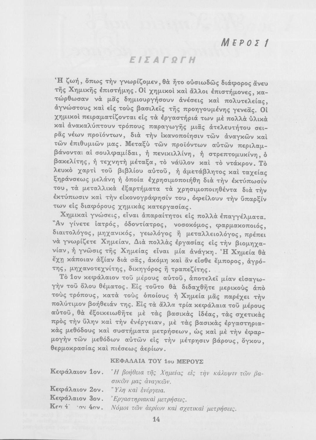 Μαθητικό βοήθημα που απευθύνεται σε μαθητές του Γυμνασίου με σκοπό τη περιγραφή και συγκρότηση της ύλης. Αναφέρεται στη θεωρία των διαλυμάτων, στις ενώσεις του αζώτου, στη θεωρία που διέπει τα οξέα, τις βάσεις, τα άλατα. Το βοήθημα ολοκληρώνεται με τη περιγραφή διάφορων μετάλλων.
