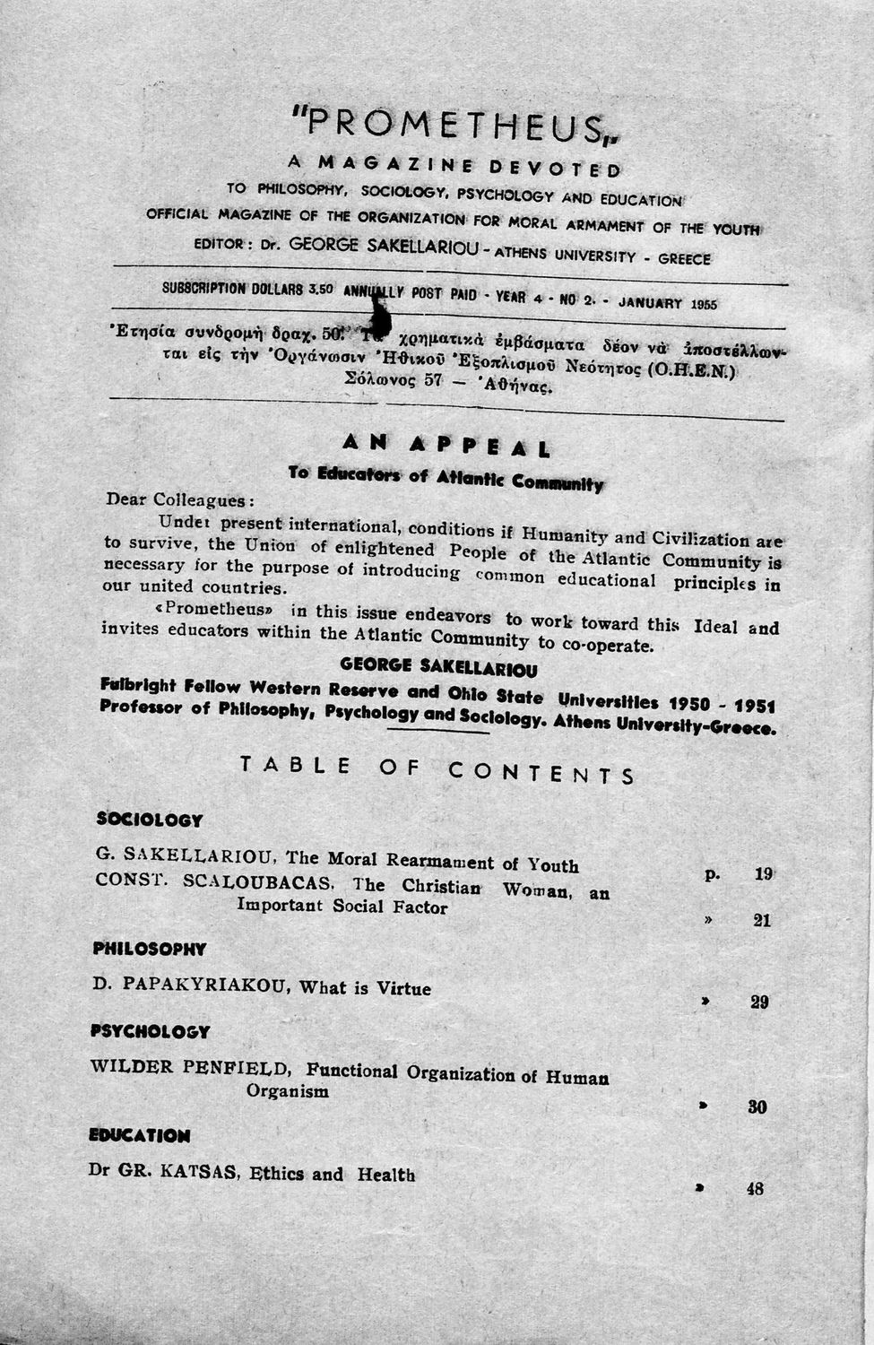 Φιλολογικό περιοδικό. Περιέχει δοκίμια σχετικά με την φιλοσοφία, την παιδαγωγική, την ψυχολογία και την κοινωνιολογία.