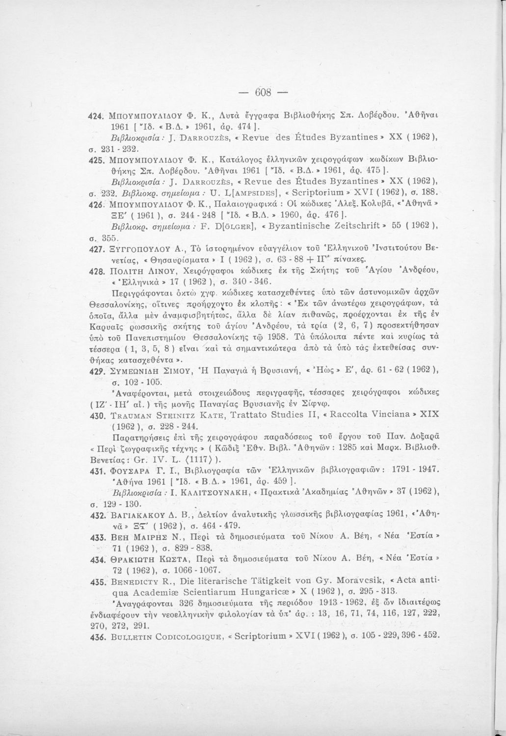 Κωδικός αναγνώρισης: 01-19112 Τίτλος: Παρνασσός Περιοδικόν σύγγραμμα κατά τριμηνίαν εκδιδόμενον τόμος Ε΄ Αρ. 4 (Οκτώβριος-Δεκέμβριος 1963) Συγγραφέας: Θρασ. Βλησίδης, Γερ. Κονιδάρης, Γ. Θ. Ζώρας, Φ. Κ. Μπουμπουλίδης Μέγεθος και υπόστρωμα: Περιοδικό, μαλακό εξώφυλλο, 638 σελίδες. |
