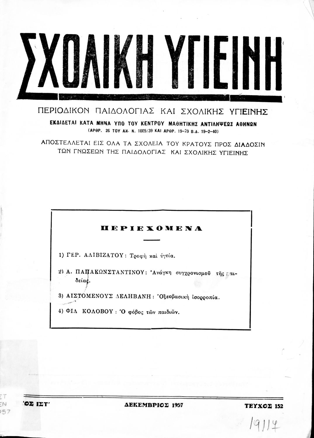 Σχολική Υγιεινή, τεύχος 152