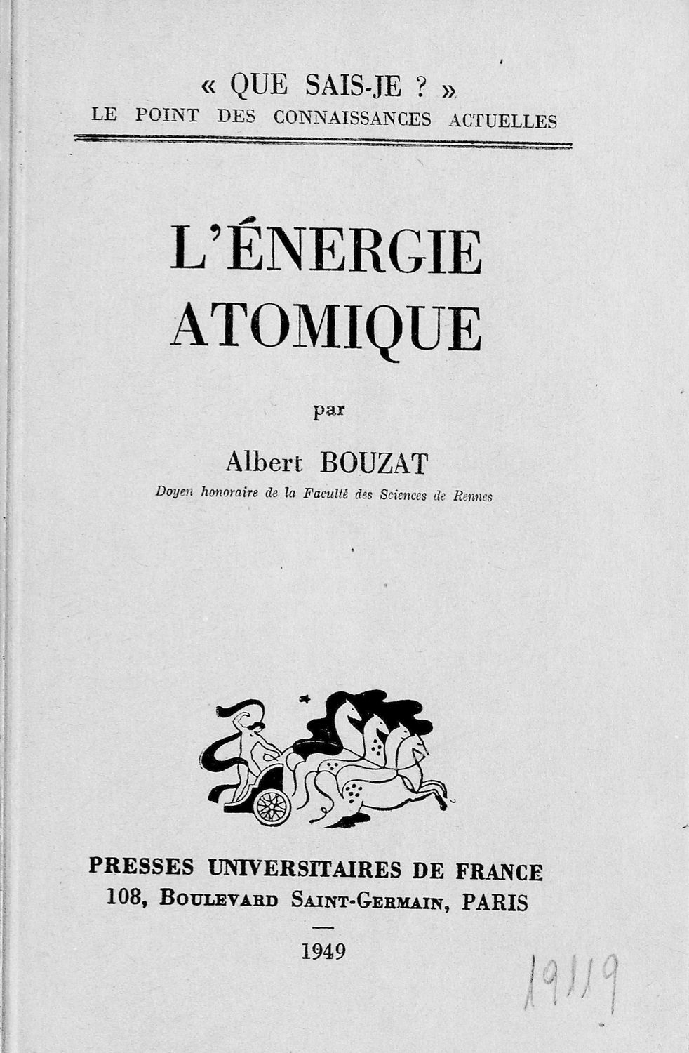 Μάθημα: Φυσική Γλώσσα: Γαλλικά Παρουσίαση περιεχομένου: Επιστημονικό σύγγραμμα που πραγματεύεται το ζήτημα της ατομικής ενέργειας. |