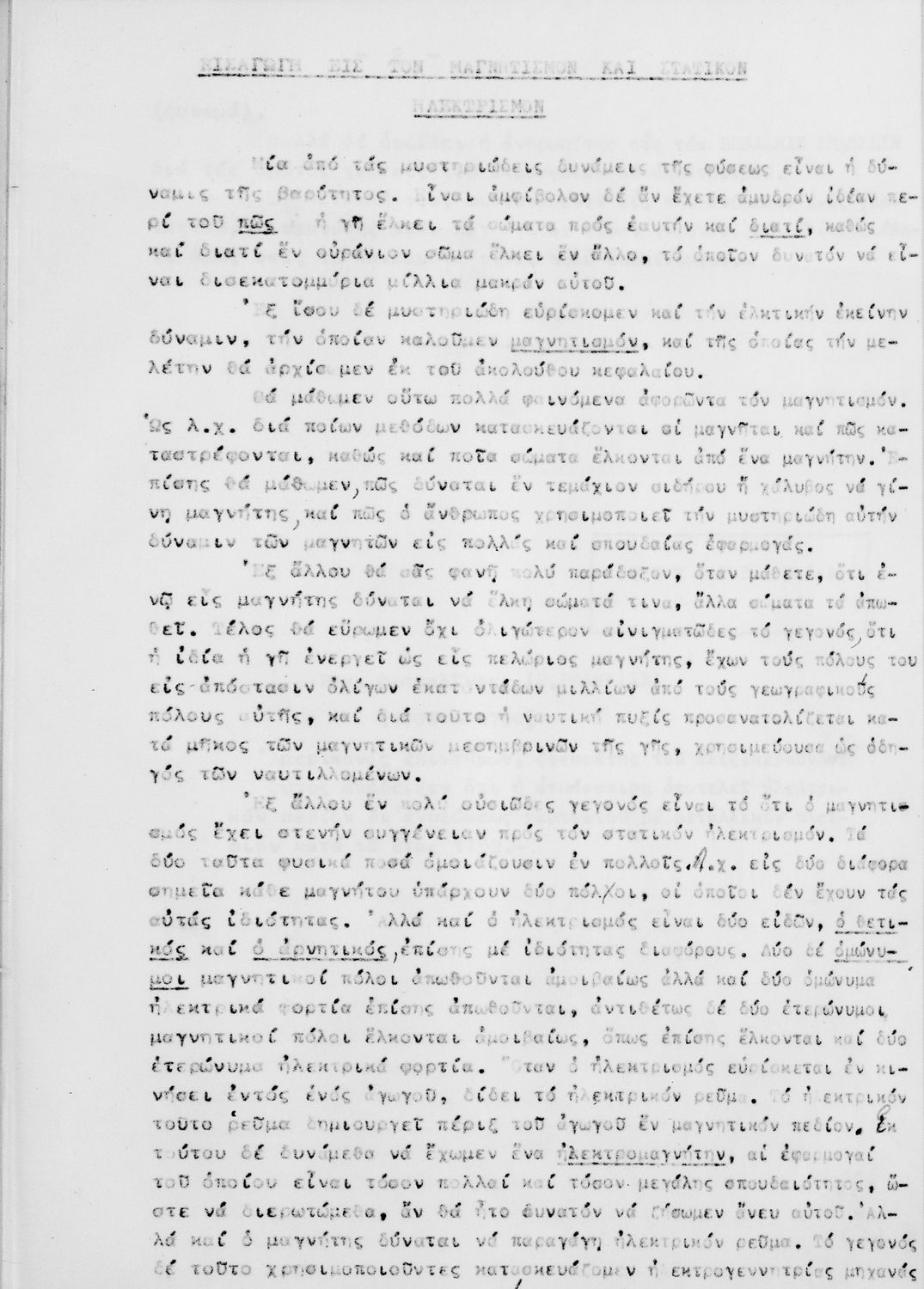 Παρουσίαση περιεχομένου: Μαθητικό βοήθημα για την Η' Γυμνασίου για το μάθημα της Φυσικής. Το σύγγραμμα ήταν πόνημα του συγγραφέα, το οποίο θα μπορούσε να χρησιμοποιηθεί από τους μαθητές του Γυμνασίου για το μάθημα της Φυσικής. Περιέχει βασικές γνώσεις φυσικής, όπως τις ιδιότητες του φωτός κ.α.