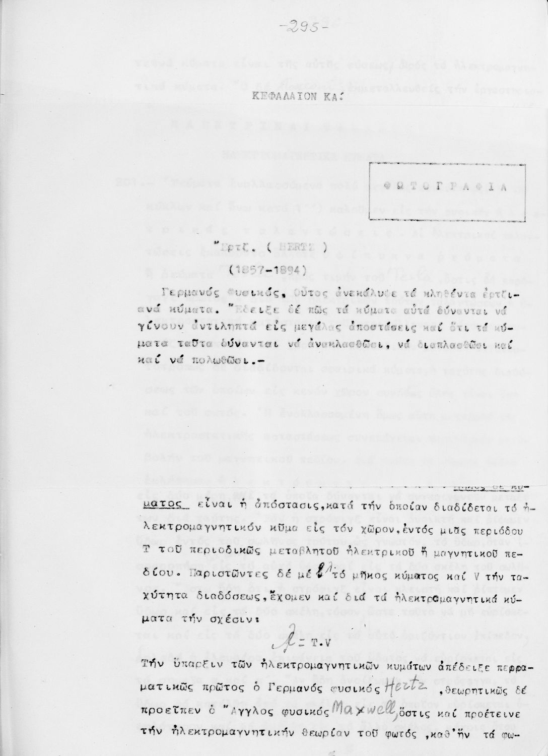 Μαθητικό βοήθημα για την Η' Γυμνασίου για το μάθημα της Φυσικής. Το σύγγραμμα ήταν πόνημα του συγγραφέα, το οποίο θα μπορούσε να χρησιμοποιηθεί από τους μαθητές του Γυμνασίου για το μάθημα της Φυσικής. Περιέχει βασικές γνώσεις φυσικής, όπως τις ιδιότητες του φωτός κ.α.