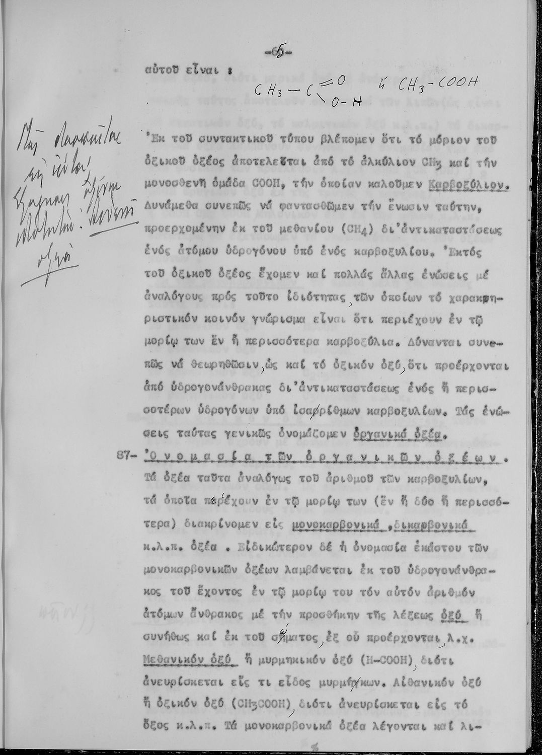 Μαθητικό βοήθημα Χημείας που περιγράφει τα συστατικά του ανθρώπινου σώματος (οστά, αίμα κλπ.), αναφέρεται σε ουσίες ορμονών, βιταμινών, πρωτεϊνών. Γίνεται αναλυτική περιγραφή του μορίου του άνθρακα και του υδρογόνου καθώς και των διάφορων οργανικών ενώσεων αυτών. Στο τέλος κάθε κεφαλαίου περιλαμβάνει ερωτήσεις και ασκήσεις των μαθητών καθώς και χειρόγραφα σχέδια και πίνακες.
