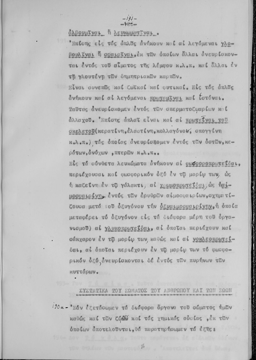 Μαθητικό βοήθημα Χημείας που περιγράφει τα συστατικά του ανθρώπινου σώματος (οστά, αίμα κλπ.), αναφέρεται σε ουσίες ορμονών, βιταμινών, πρωτεϊνών. Γίνεται αναλυτική περιγραφή του μορίου του άνθρακα και του υδρογόνου καθώς και των διάφορων οργανικών ενώσεων αυτών. Στο τέλος κάθε κεφαλαίου περιλαμβάνει ερωτήσεις και ασκήσεις των μαθητών καθώς και χειρόγραφα σχέδια και πίνακες.