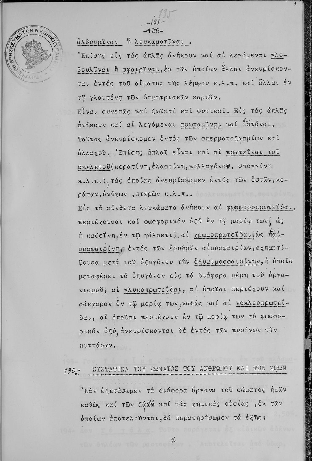 Μαθητικό βοήθημα Χημείας που περιγράφει τα συστατικά του ανθρώπινου σώματος (οστά, αίμα κλπ.), αναφέρεται σε ουσίες ορμονών, βιταμινών, πρωτεϊνών. Γίνεται αναλυτική περιγραφή του μορίου του άνθρακα και του ...