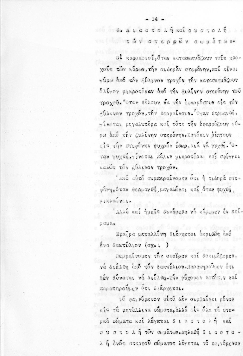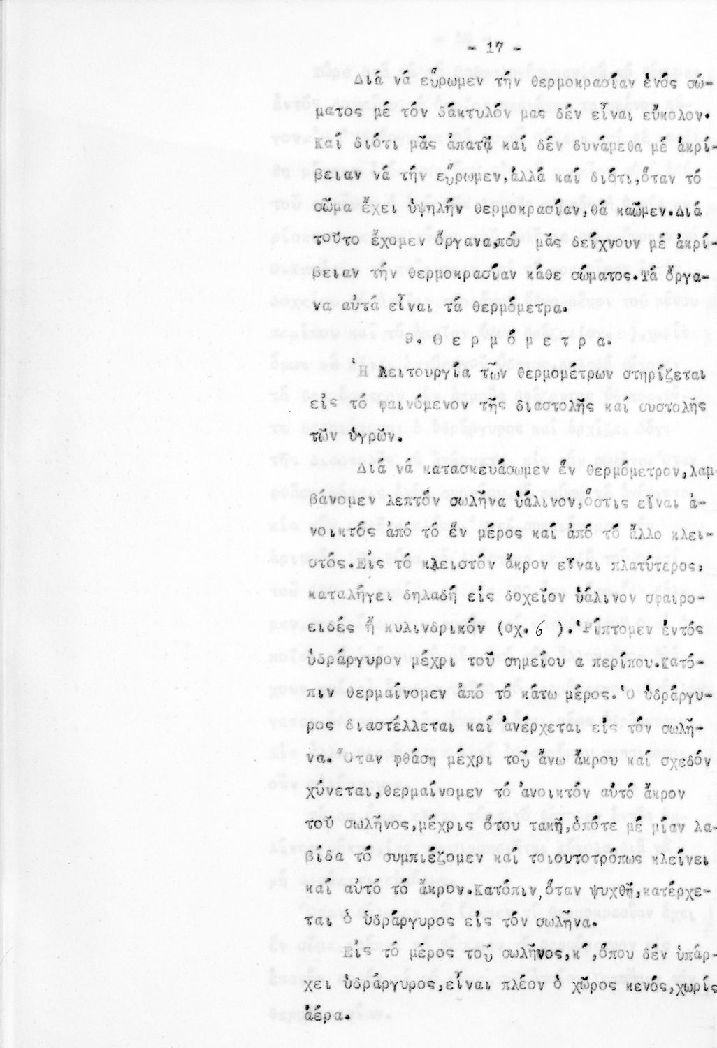 Μαθητικό βοήθημα για την Α΄ Τάξη των Οκταταξίων Γυμνασίων και Πενταταξίων Προγυμνασίων για το μάθημα της Φυσικής. Το σύγγραμμα ήταν πόνημα του συγγραφέα, το οποίο θα μπορούσε να χρησιμοποιηθεί από τους μαθητές του Γυμνασίου για το μάθημα της Φυσικής. Περιέχει βασικές γνώσεις φυσικής, όπως τις ιδιότητες των σωμάτων κ.α.