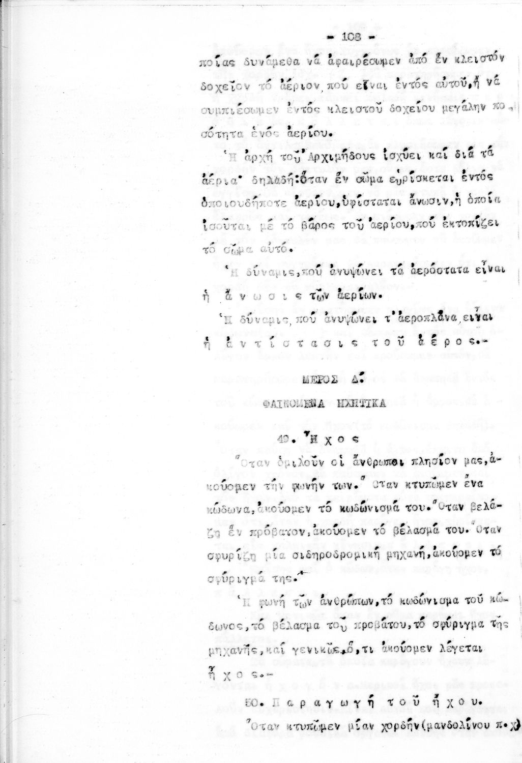 Βαθμίδα εκπαίδευσης: Δευτεροβάθμια Τάξη: Α΄ Οκταταξίου Γυμνασίου / Α΄ Πενταταξίου Προγυμνασίου Μάθημα: Φυσική Γλώσσα: Απλή καθαρεύουσα Παρουσίαση περιεχομένου: Μαθητικό βοήθημα για την Α΄ Τάξη των Οκταταξίων Γυμνασίων και Πενταταξίων Προγυμνασίων για το μάθημα της Φυσικής. Το σύγγραμμα ήταν πόνημα του συγγραφέα, το οποίο θα μπορούσε να χρησιμοποιηθεί από τους μαθητές του Γυμνασίου για το μάθημα της Φυσικής. Περιέχει βασικές γνώσεις φυσικής, όπως τις ιδιότητες των σωμάτων κ.α. |