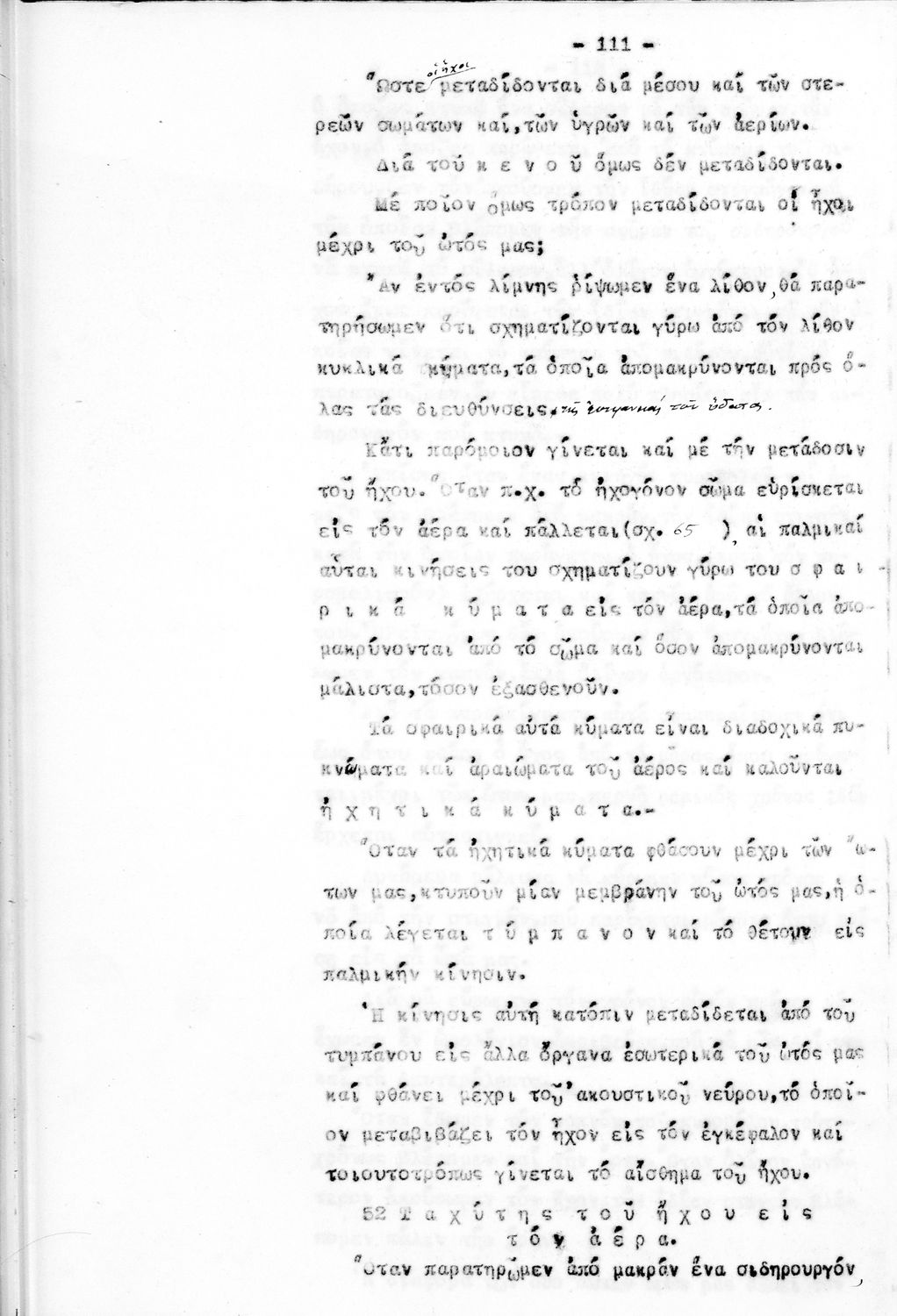 Μαθητικό βοήθημα για την Α΄ Τάξη των Οκταταξίων Γυμνασίων και Πενταταξίων Προγυμνασίων για το μάθημα της Φυσικής. Το σύγγραμμα ήταν πόνημα του συγγραφέα, το οποίο θα μπορούσε να χρησιμοποιηθεί από τους μαθητές του Γυμνασίου για το μάθημα της Φυσικής. Περιέχει βασικές γνώσεις φυσικής, όπως τις ιδιότητες των σωμάτων κ.α.