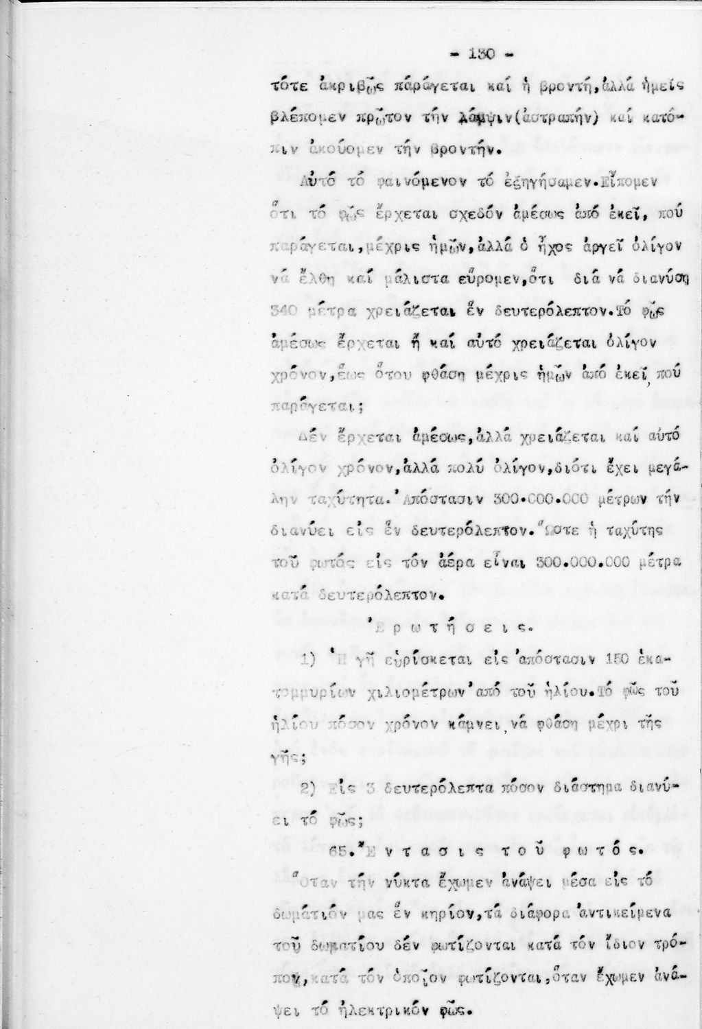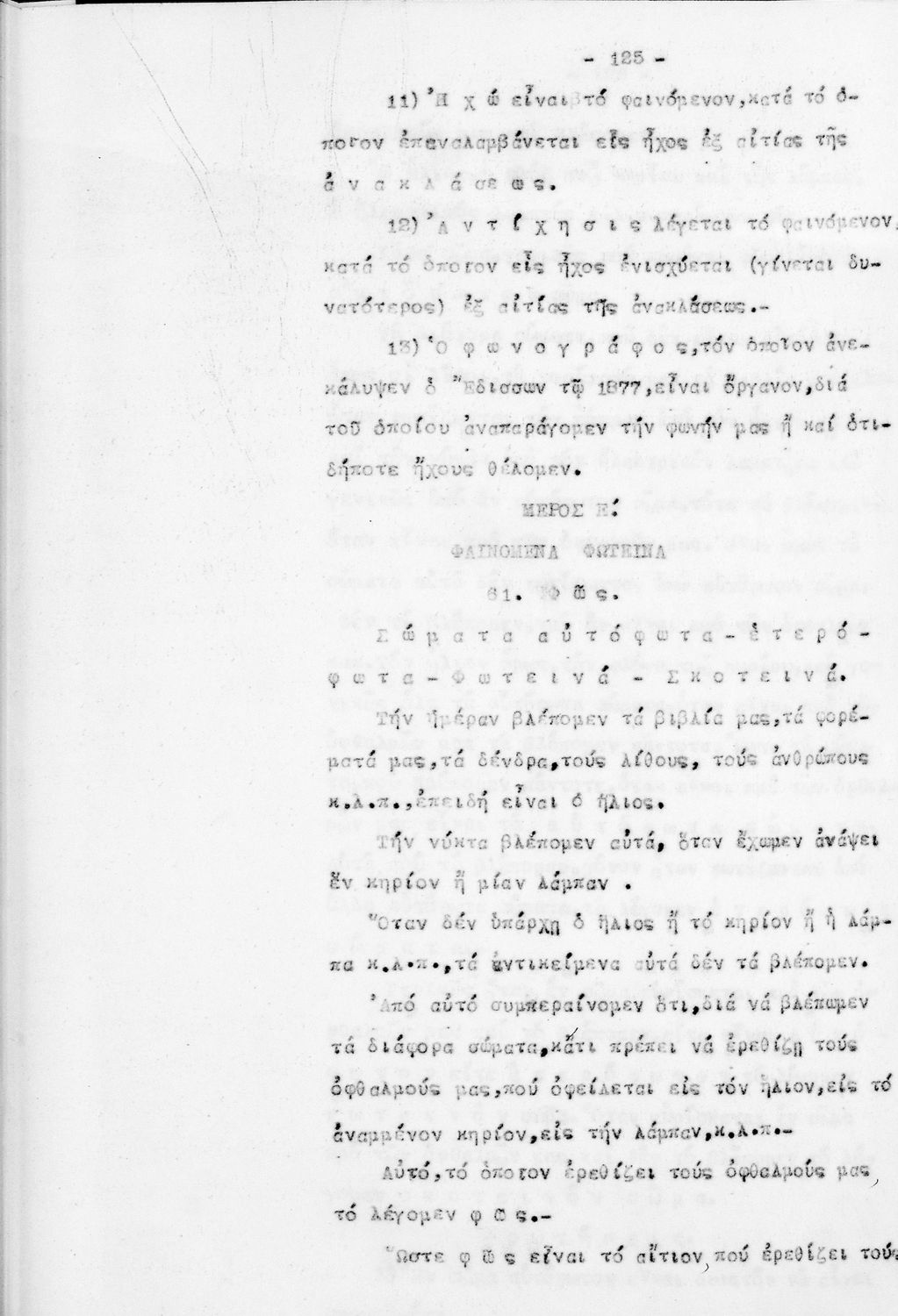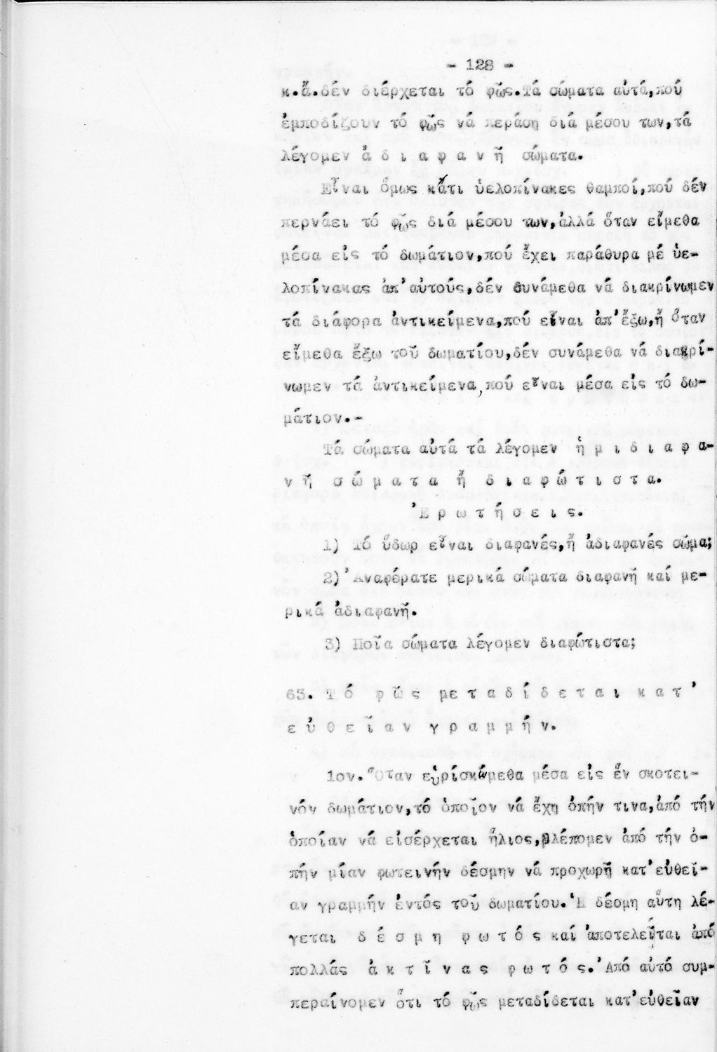 Μαθητικό βοήθημα για την Α΄ Τάξη των Οκταταξίων Γυμνασίων και Πενταταξίων Προγυμνασίων για το μάθημα της Φυσικής. Το σύγγραμμα ήταν πόνημα του συγγραφέα, το οποίο θα μπορούσε να χρησιμοποιηθεί από τους μαθητές του Γυμνασίου για το μάθημα της Φυσικής. Περιέχει βασικές γνώσεις φυσικής, όπως τις ιδιότητες των σωμάτων κ.α.